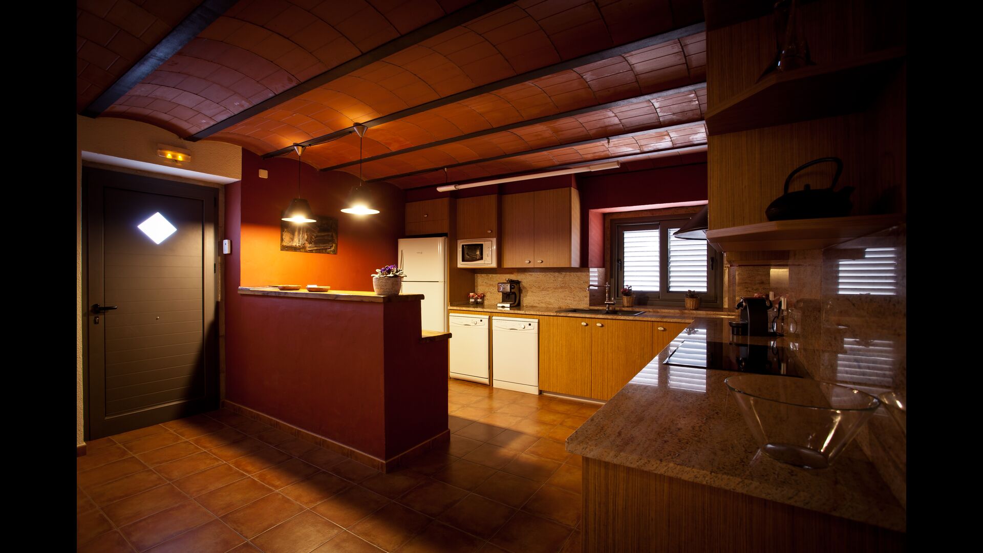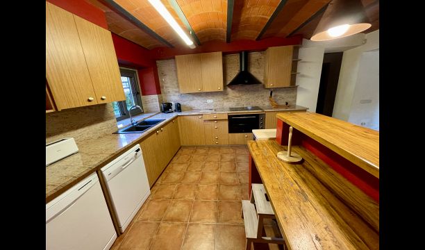 There are 3 floors in Casa Cugulado. The lower floor has a large kitchen which is equipped and fitted to the large family. It has for example two dishwasher machines, an extra-large oven and there are two refrigerators, and another at the terrace where you can choose to store beverages or meat to grill. At the ground floor is also an open common room with lounge and dining area and there are also toilet so you do not have to go up in the rooms. The living room has also a patio door to the back of the house where there is a fabulous view over the beautiful landscape.