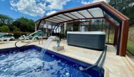 • Lovely heated pool area with Jacuzzi which can be all uncovered in the Summertime