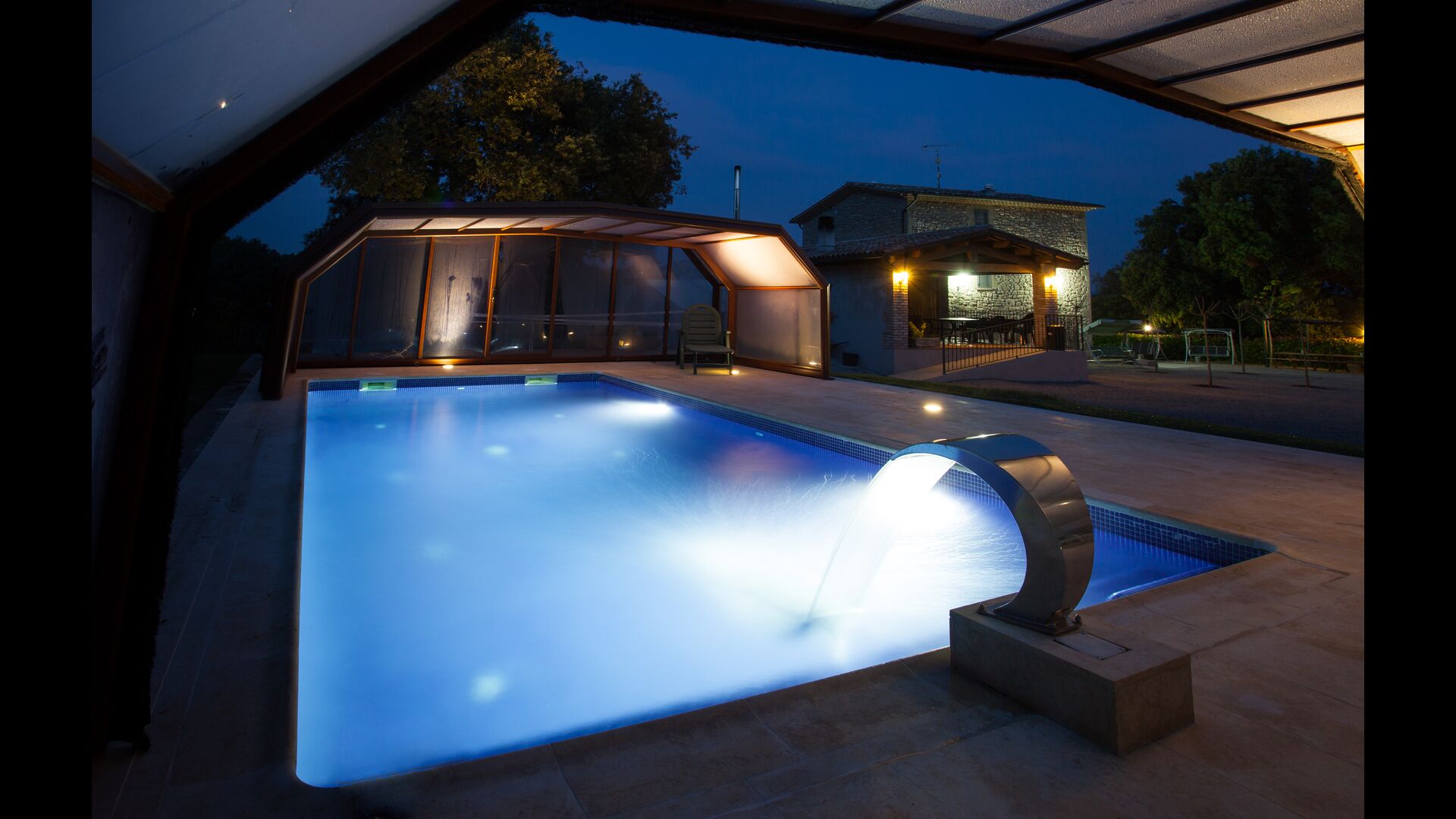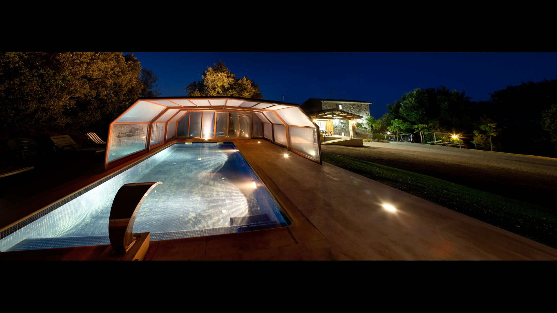 The holiday home is 350m2 spacious house with 7 nicely decorated and large bedrooms, all with en suite bathroom. It has a large garden, a lovely covered terrace and a heated swimming pool that can be open in the summer and covered if you want - here is also a Jacuzzi.