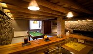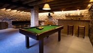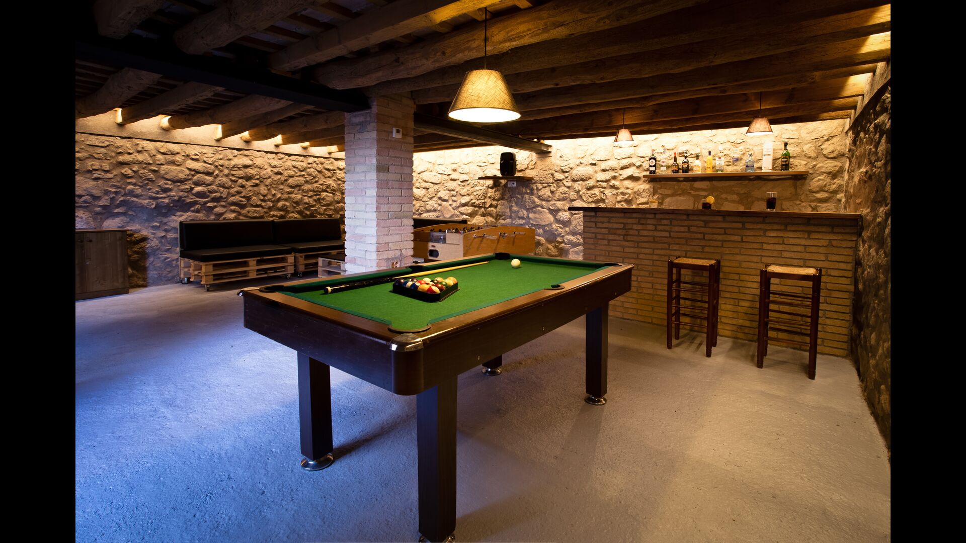 The outdoor area is large and in continuation of the covered terrace with BBQ and a wonderful outdoor kitchen is also a small hall with a long dining table as well as Billiards, table football and a large flat TV.
