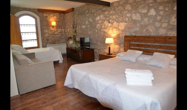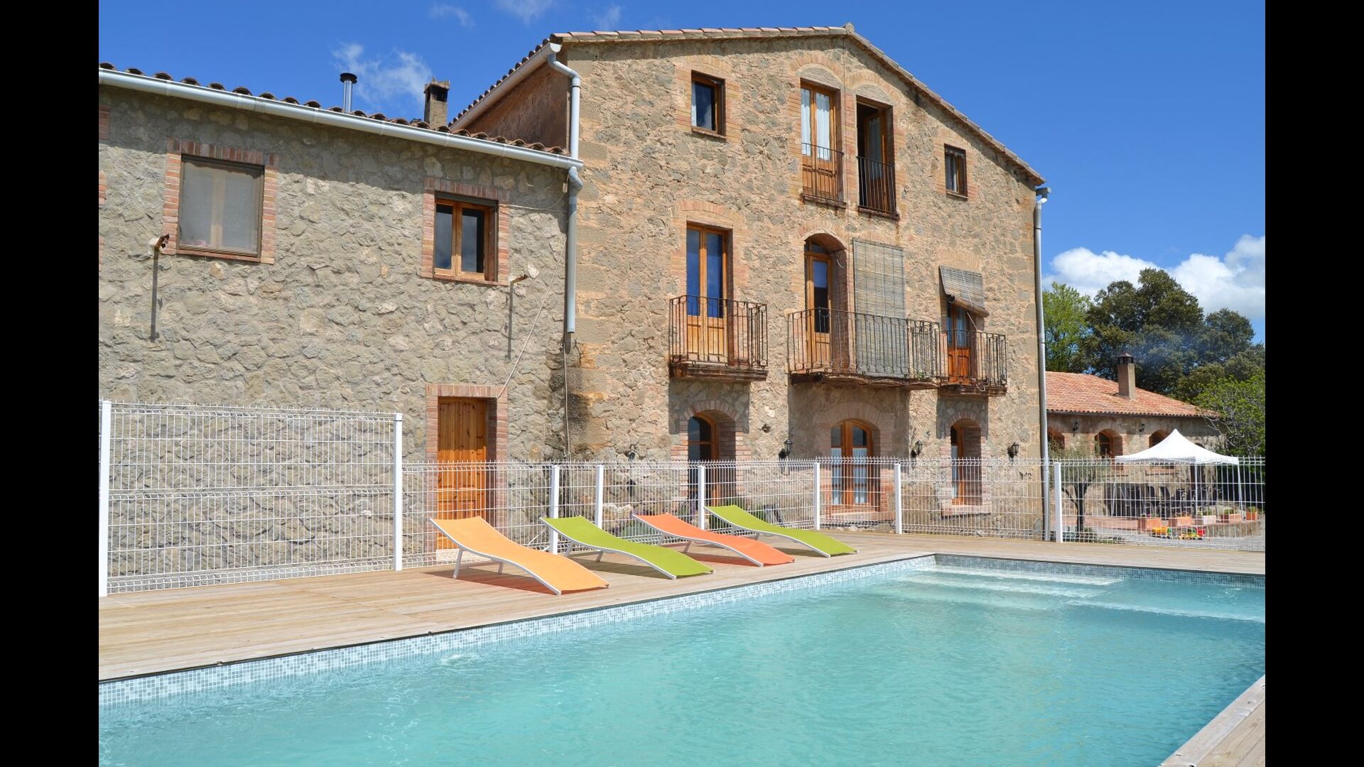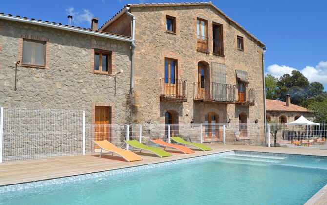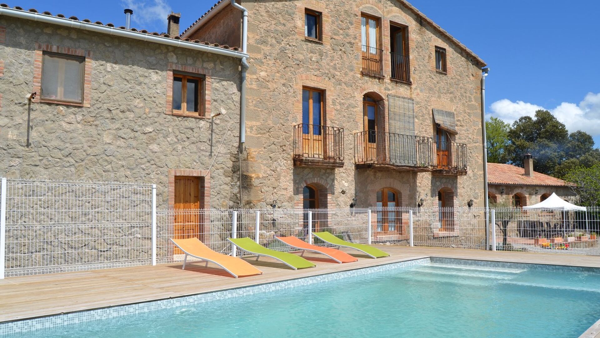 Casa Fabregás is a big Catalan limestone house, situated with a splendid view of the valley from the terrace, the pool area and from many of the rooms.