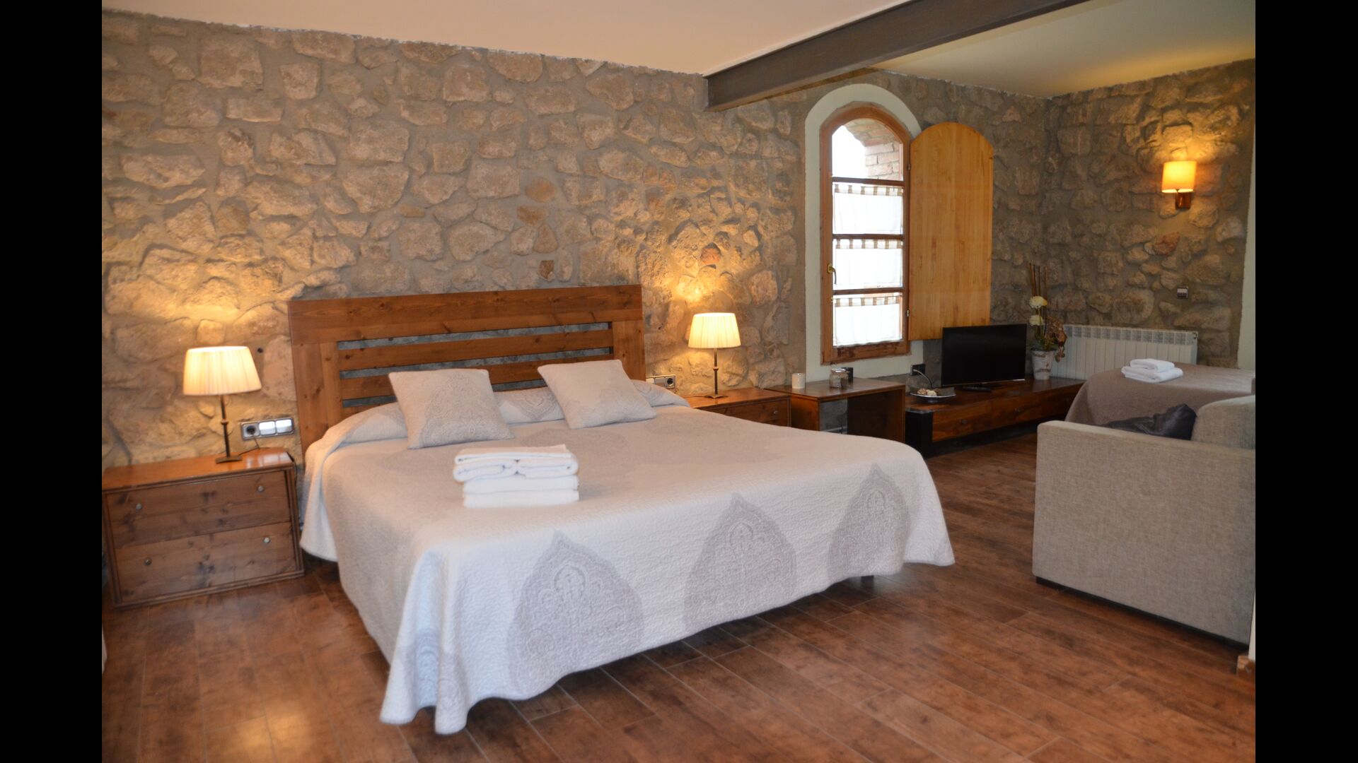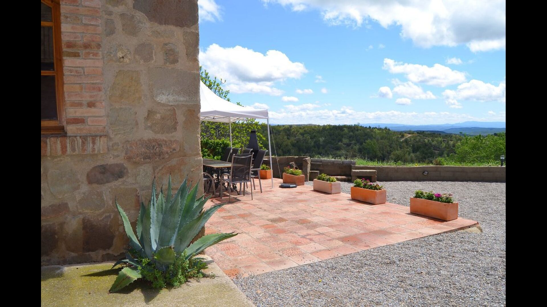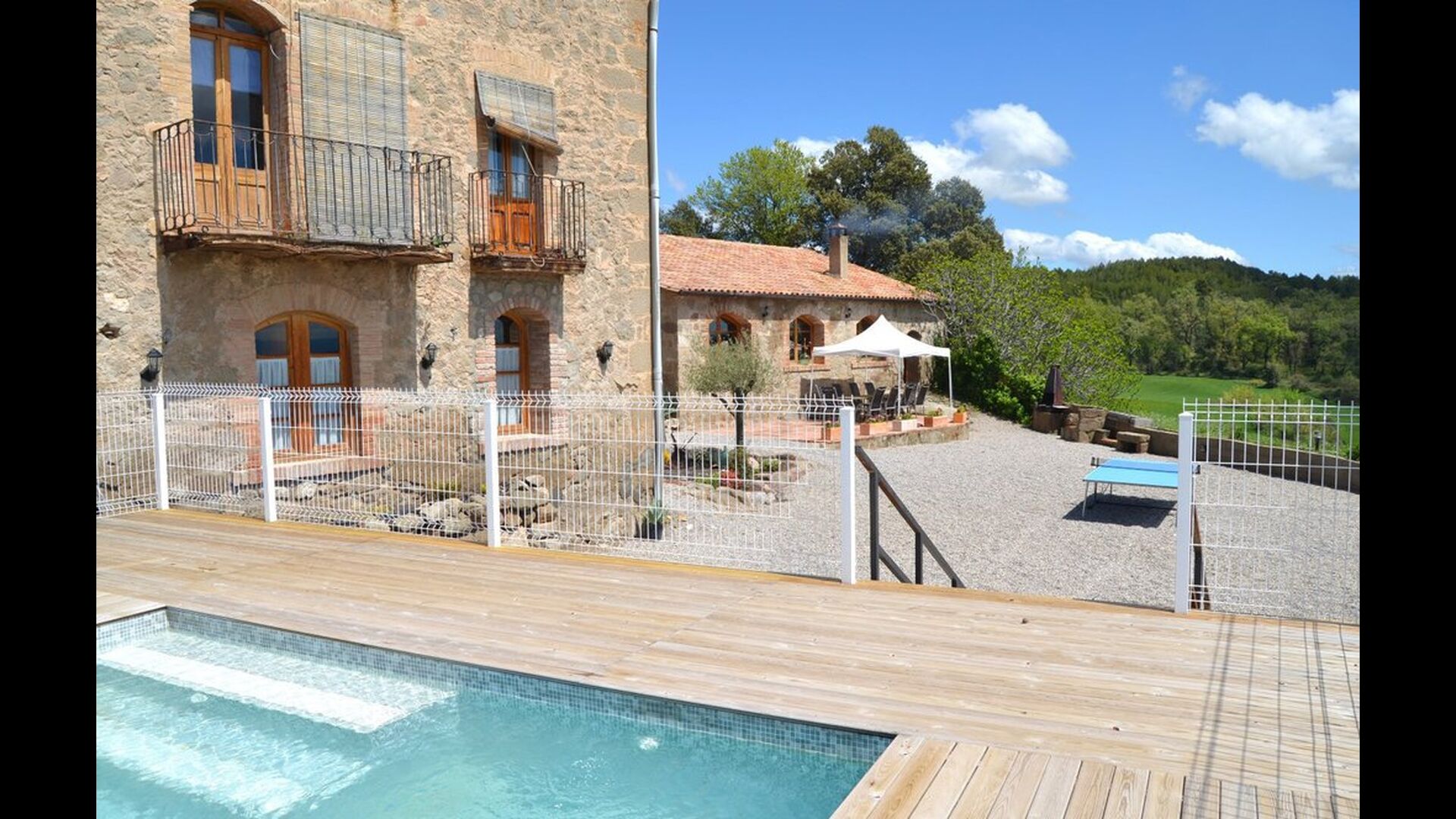 Casa Fabregás is a big Catalan limestone house, situated with a splendid view of the valley from the terrace, the pool area and from many of the rooms.