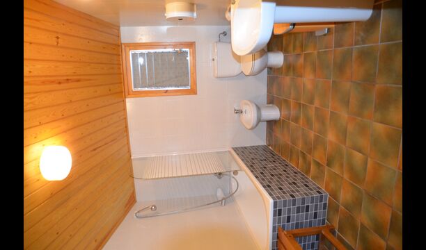 In level with the hall and terrace, in the lowest level of the house, there is small but functional and well-situated kitchen, which you will probably use in the summer time. It is well-equipped with stove, microwave, dishwasher. With view to the valley, there are two fantastic suites with own bathrooms. They are very spacious, so they can easily be used as family rooms, adding extra beds.