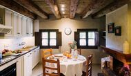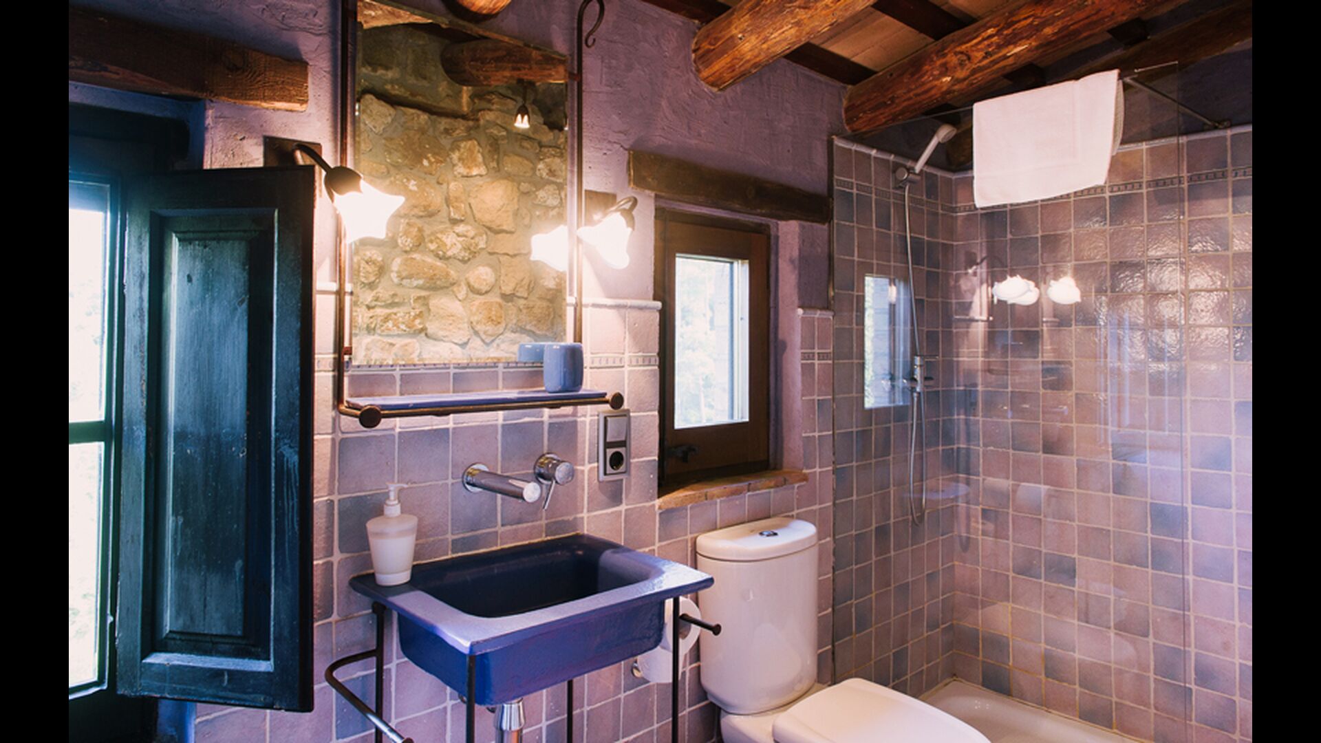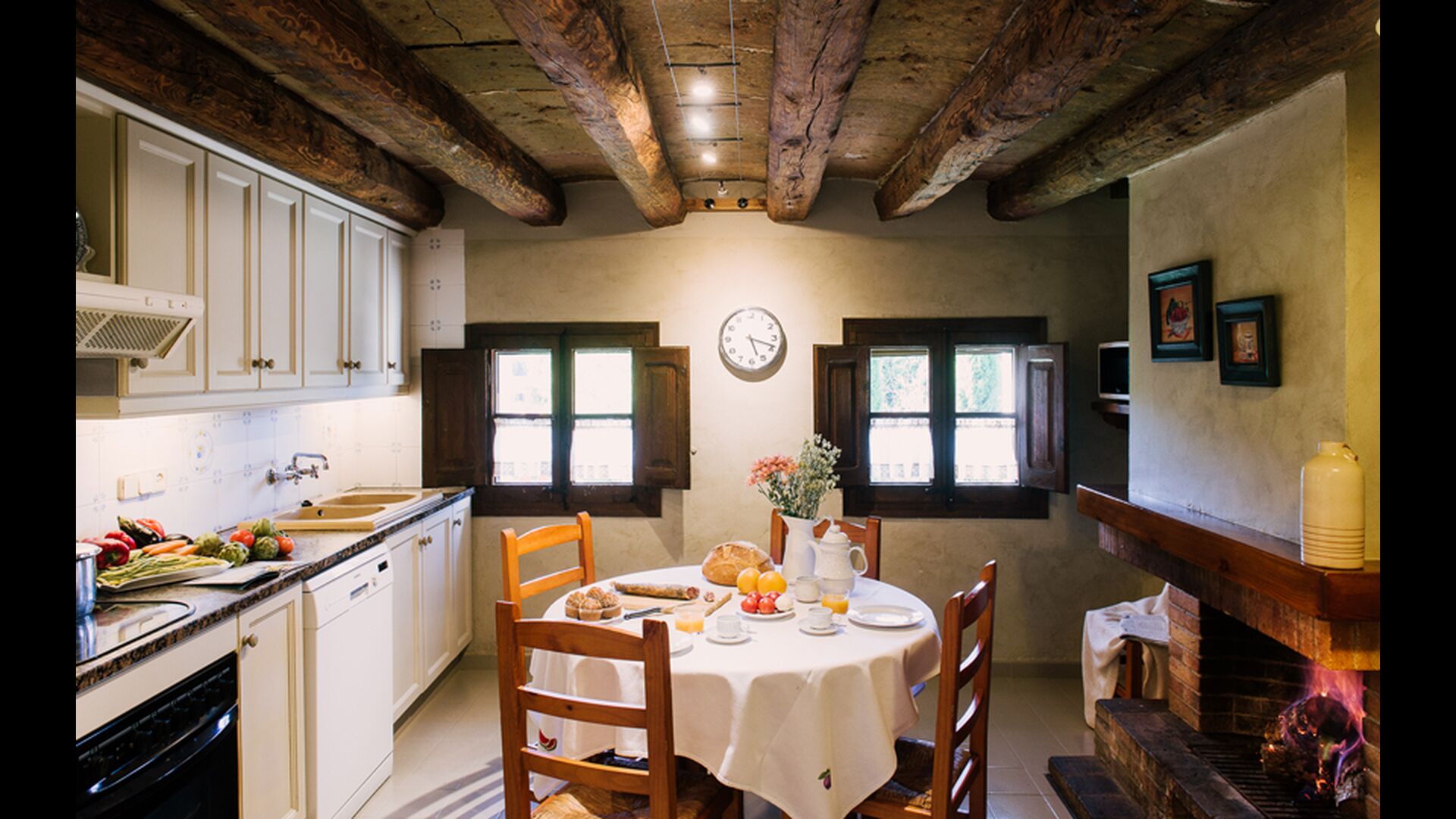You enter the house from the front of a beautifully made entrance. Previously it was common to have the animals in the ground floor of the house, but this area is now in an amazing way transformed into two suites with master double beds and ensuite bathrooms, all in a modern interior design.
