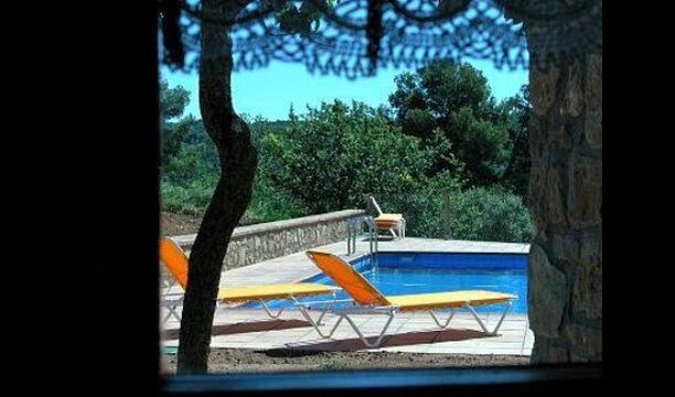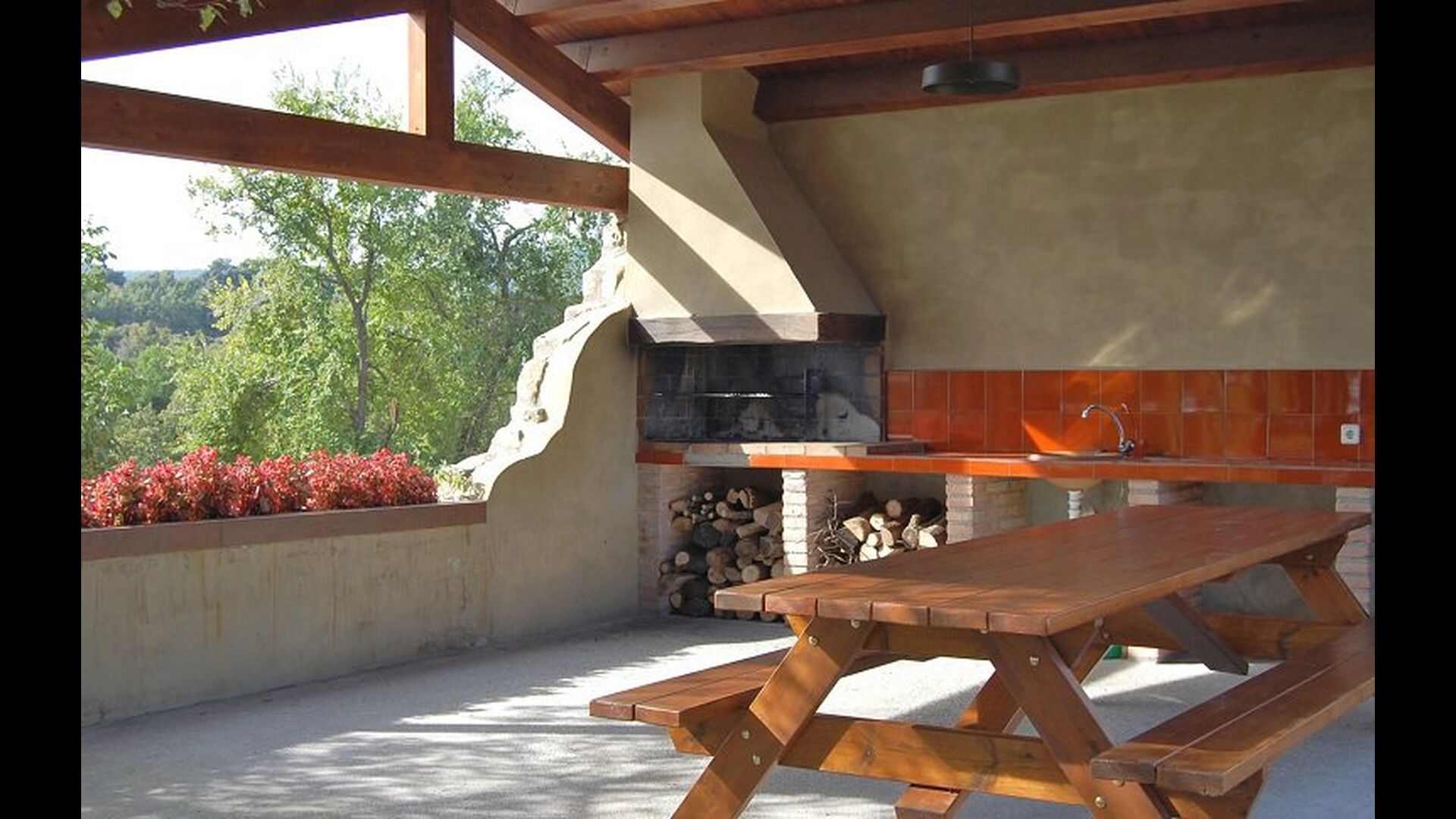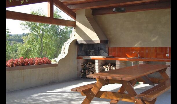 At the other end of the garden there is a covered terrace, which will be the holiday's natural meeting point. This is a perfect place to spend the evening when there is a BBQ, outdoor kitchen and dining table and table tennis. From the garden and the house there is a breathtaking view over the beautiful Catalonian mountains in one direction. In the other direction, one level below the house, there is a big field for the owners' animals and with an open stable.