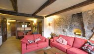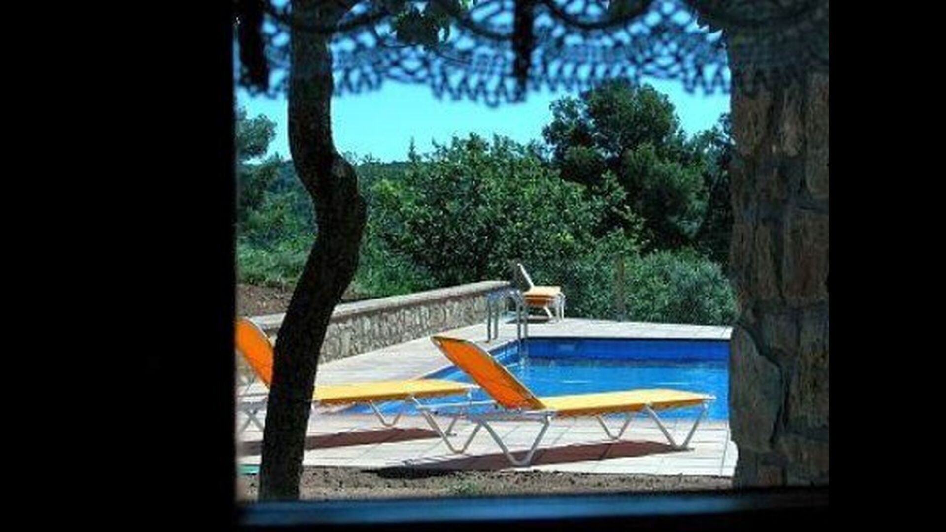 Casa Perás, a beautiful holiday house with room for 10 people, is located in the heart of the Catalan countryside. The house is located in an astonishing surrounding nature, and with the owners' farm animals as only neighbours on a field below the house, it is situated in a peaceful and private area. Despite this, there is still a small authentic village where you can find small delicacies like a butcher, baker, grocer and café and restaurant. The house is surrounded by a well-kept lawn, where you can find a covered patio and a swimming pool.