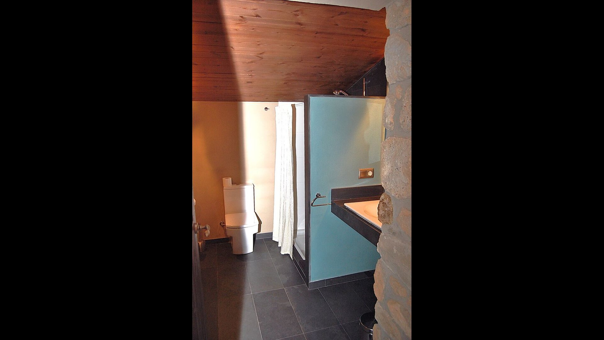 The ground floor has a large double room with a modern en suite bathroom. There is also a lounge with a cozy sitting area with flat screen TV, which is a great place for indoor relaxation. This room has many small Catalan details, which reminds you of the fact that you are on vacation, and which make you automatically relax even more.
