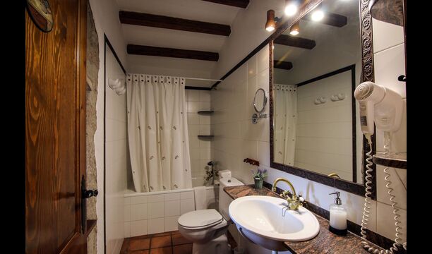 The indoor facilities are of very high quality. The authentic atmosphere is still preserved, while things like dishwasher, washing machine and beautiful bedrooms have been added. In total there is room for 15 people spread out in 6 doubles and 1 triple room. General for these is in particular that there is, firstly, a high ceiling, and secondly, they are made in a very elegant design. There is also room for 5 extra beds. 1Casa Pies Cortos has a total of 3 full bathrooms. The living room has TV, HiFi and fireplace. This can be enjoyed in leather sofas in a cozy little corner. The kitchen is modern, but it still has classic furnishings. It has among others a fridge, a stove, an electric oven, a dishwasher, a washing machine and a microwave.