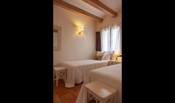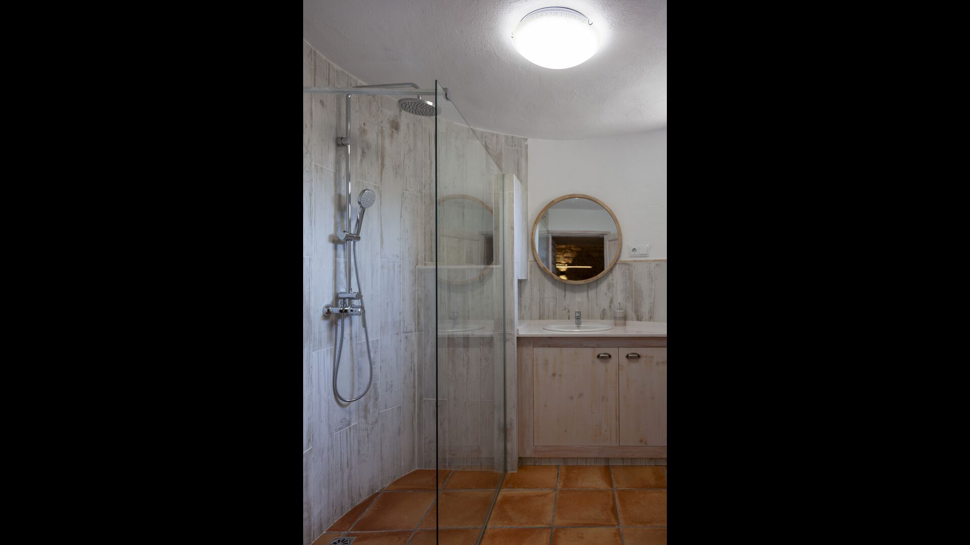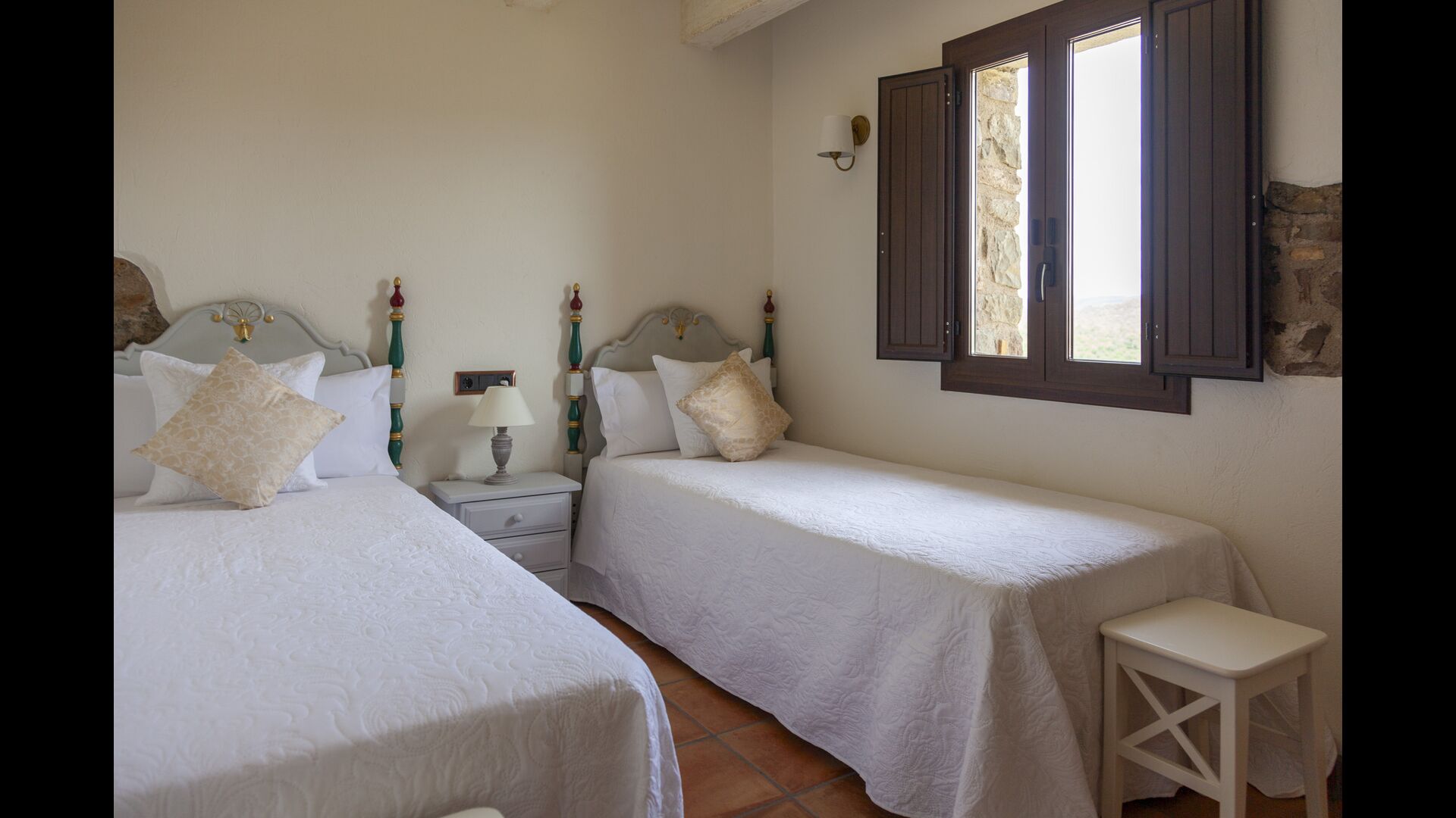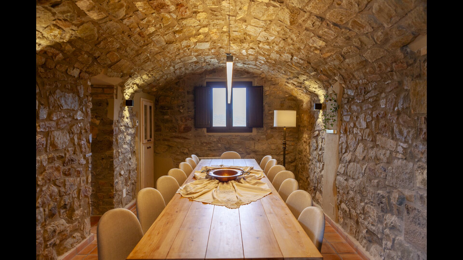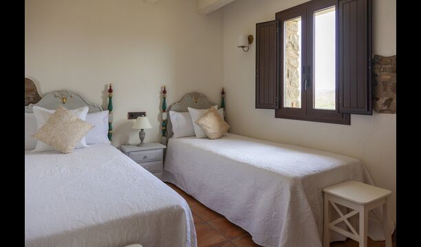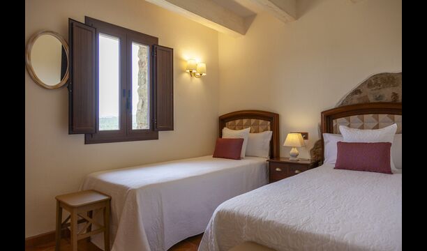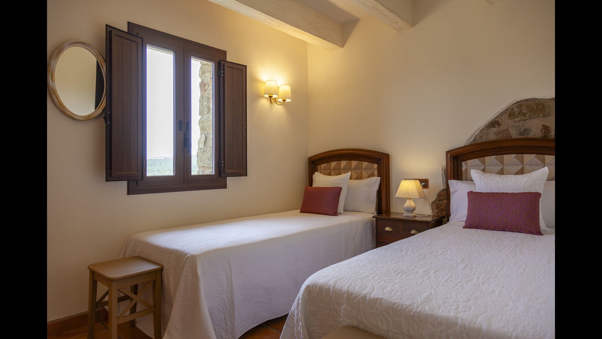 In total, there are 8 double bedrooms, some offering spectacular views of the landscape. The rooms are well-appointed, combining traditional elements with modern furnishings to provide a relaxing and cozy experience. The 5 bathrooms are equipped with towels, hair dryers, and modern fixtures.