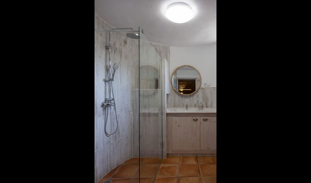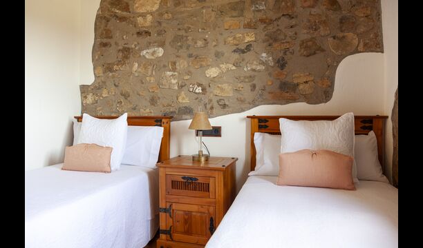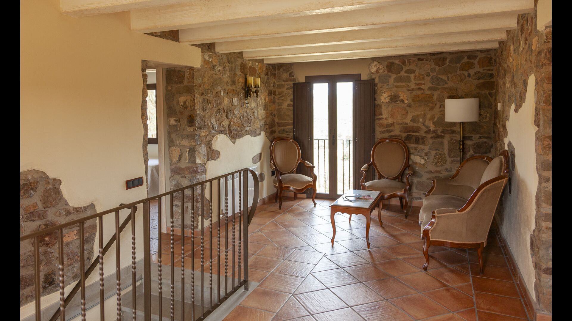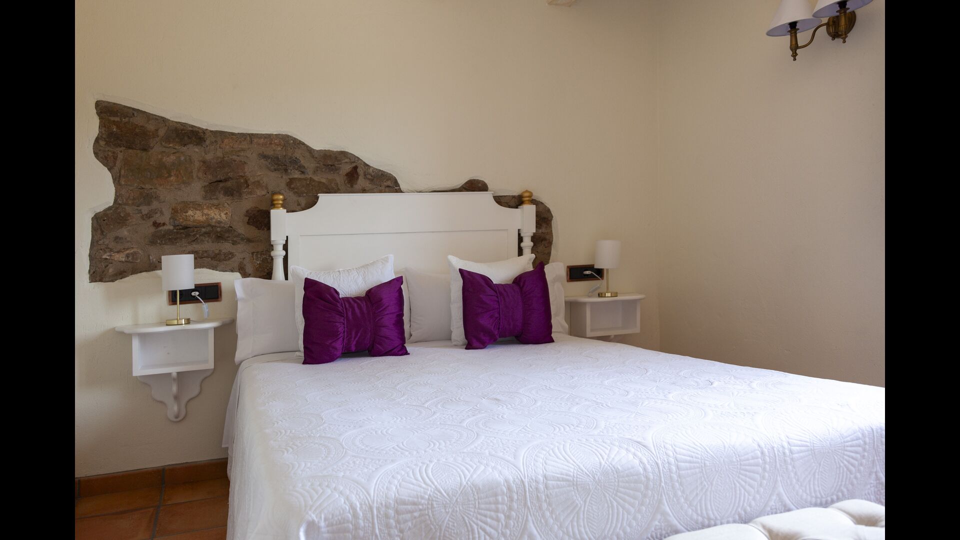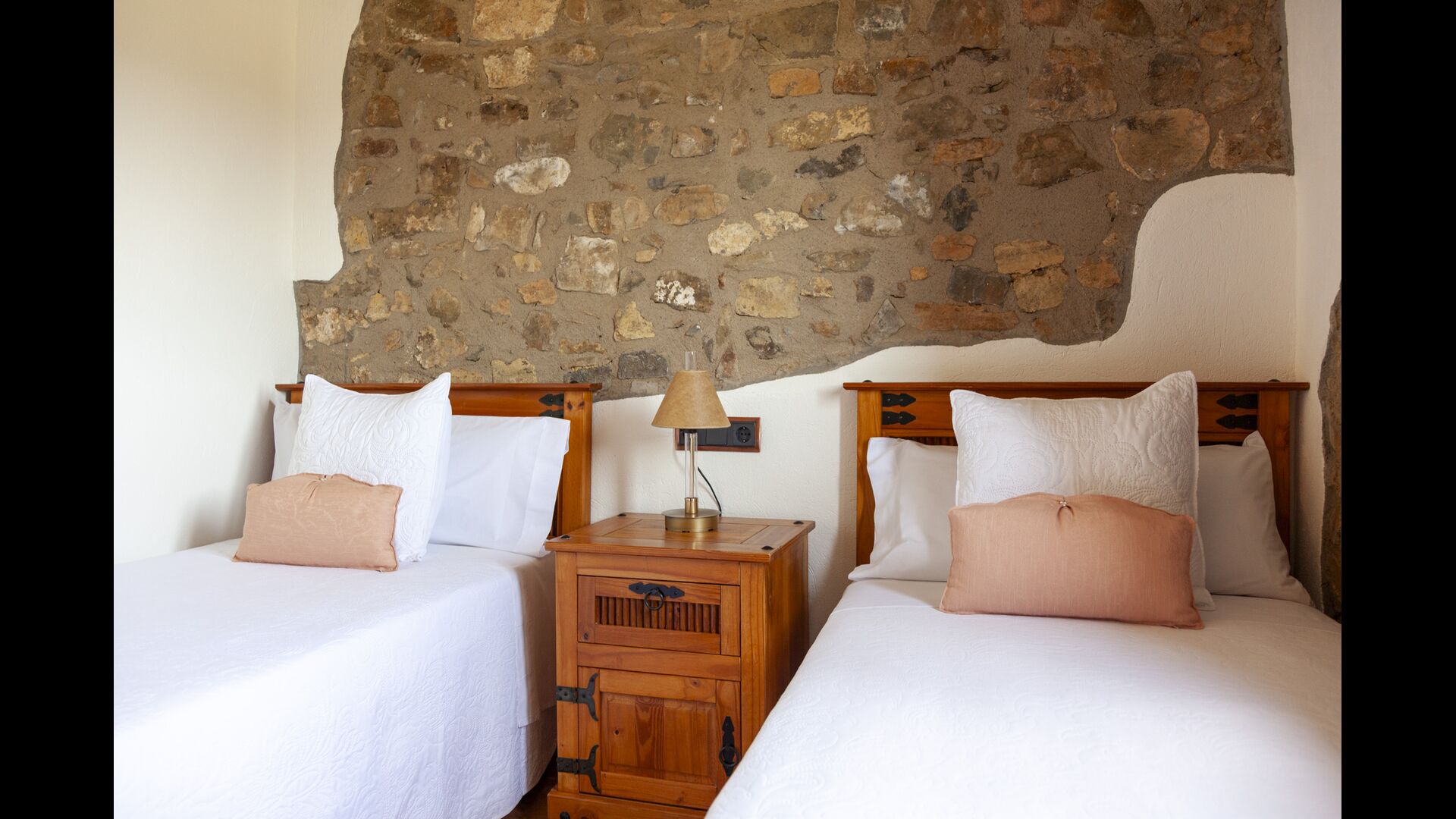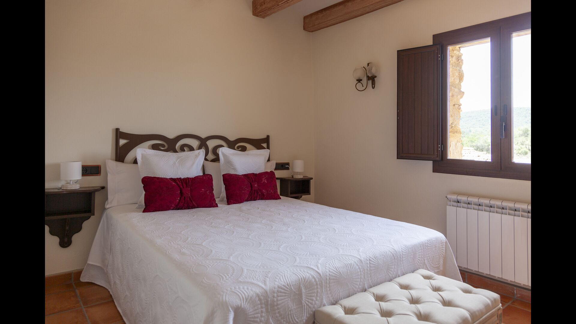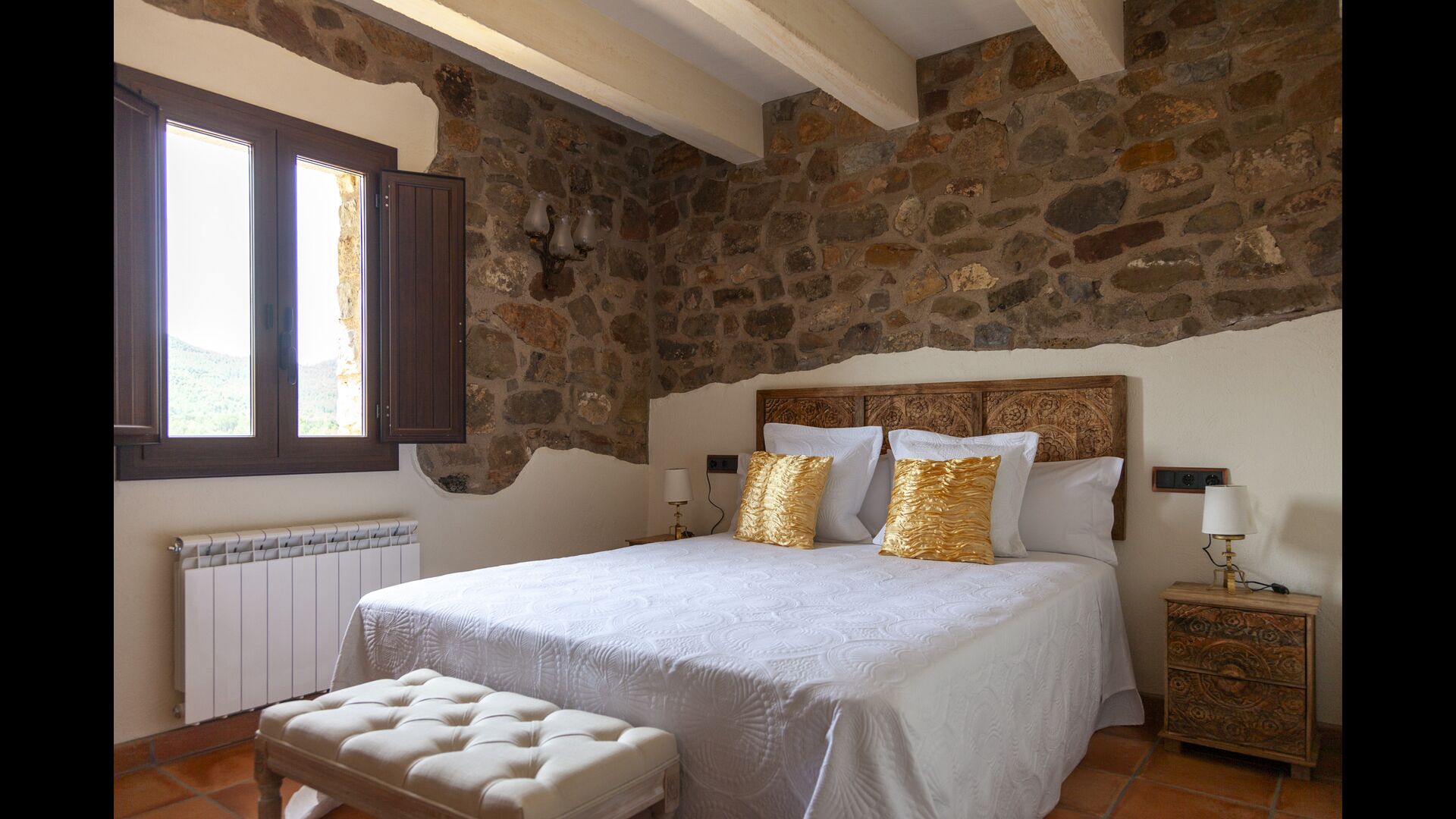 In total, there are 8 double bedrooms, some offering spectacular views of the landscape. The rooms are well-appointed, combining traditional elements with modern furnishings to provide a relaxing and cozy experience. The 5 bathrooms are equipped with towels, hair dryers, and modern fixtures.