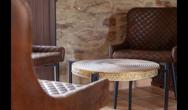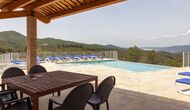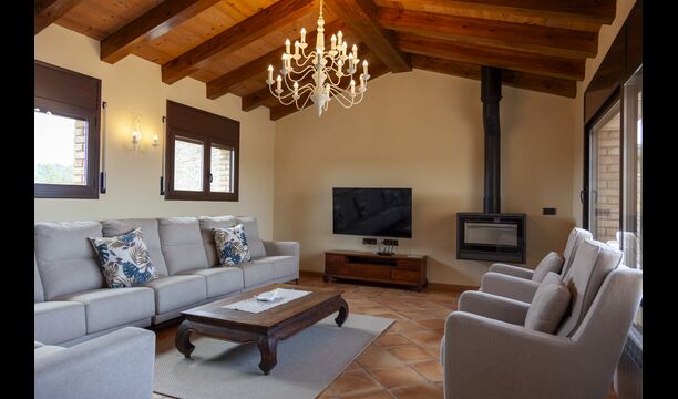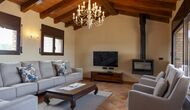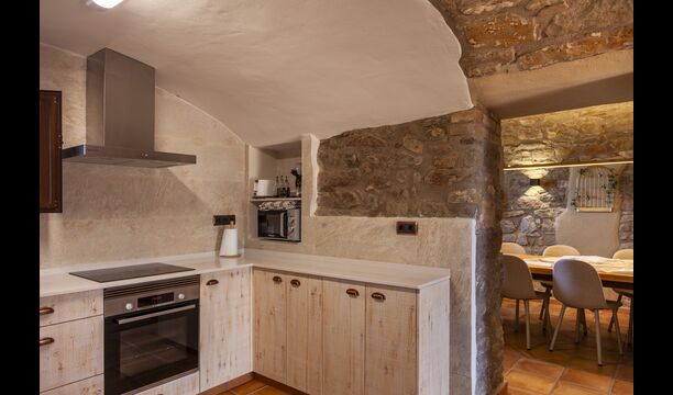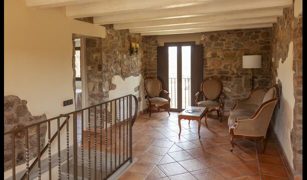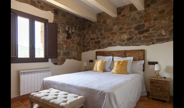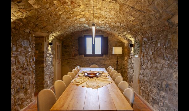 The house is designed to accommodate up to 16 guests with 8 double bedrooms and 5 bathrooms. The interiors seamlessly blend rustic charm with modern comforts, featuring stone walls, wooden beams, and elegant furniture that create a warm and inviting atmosphere.