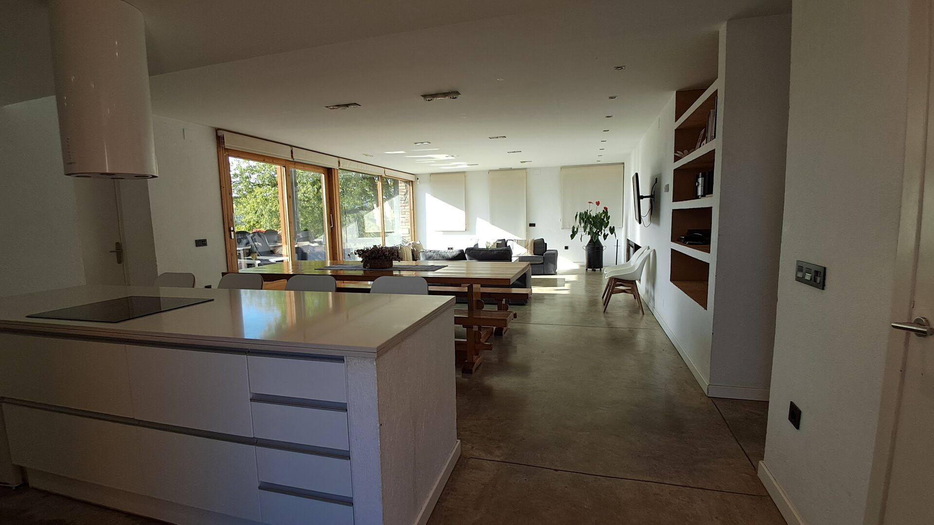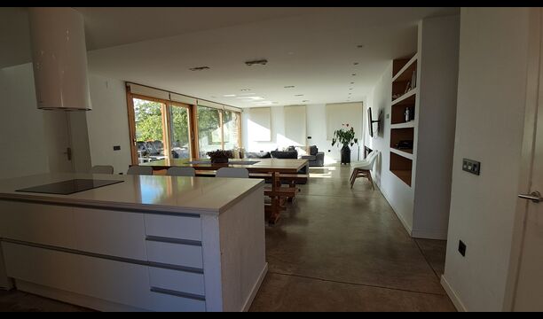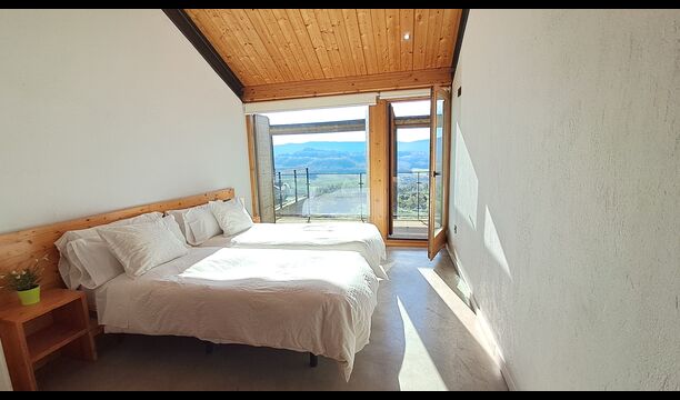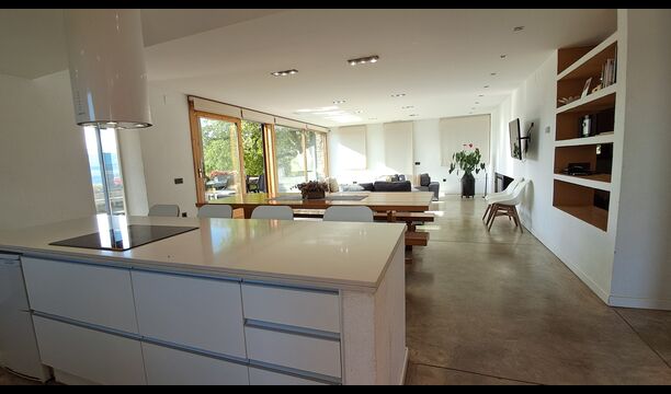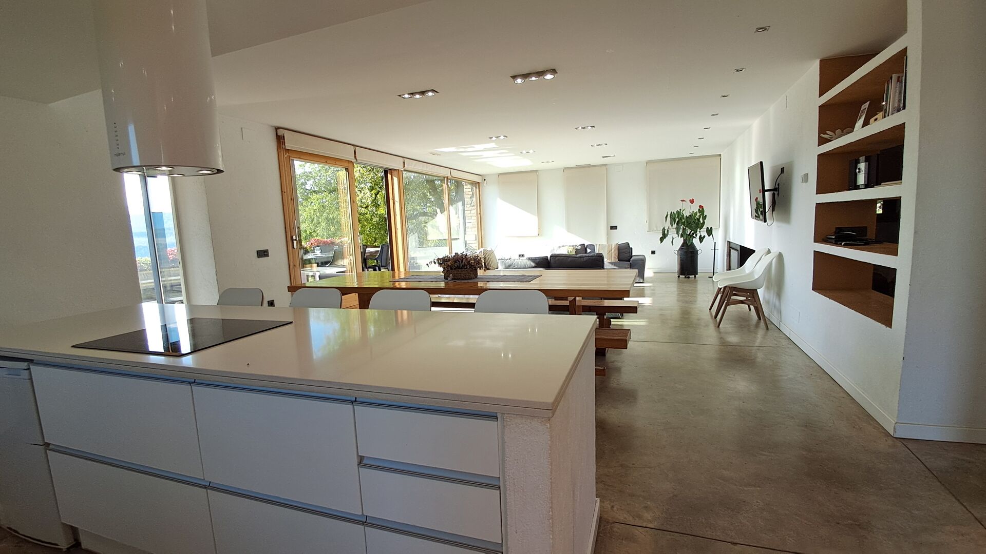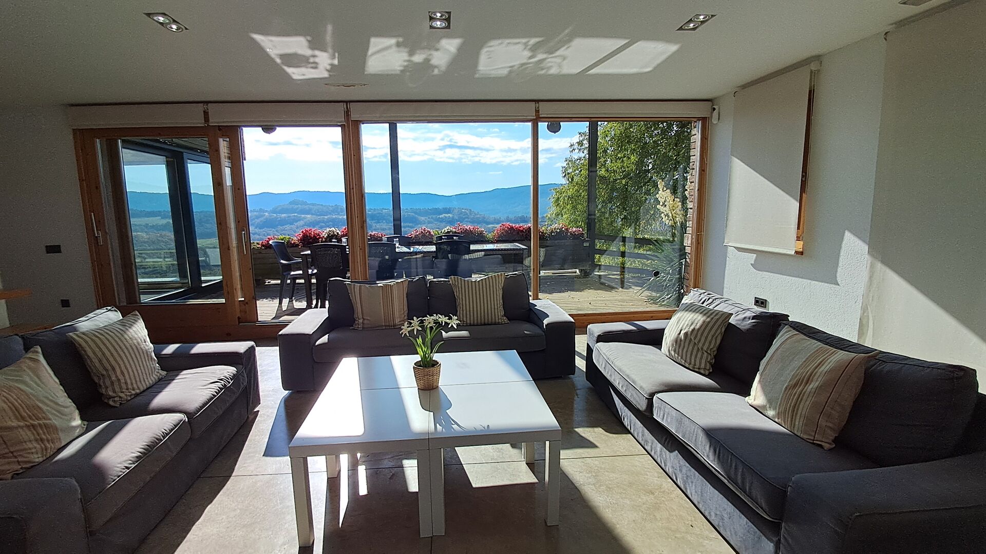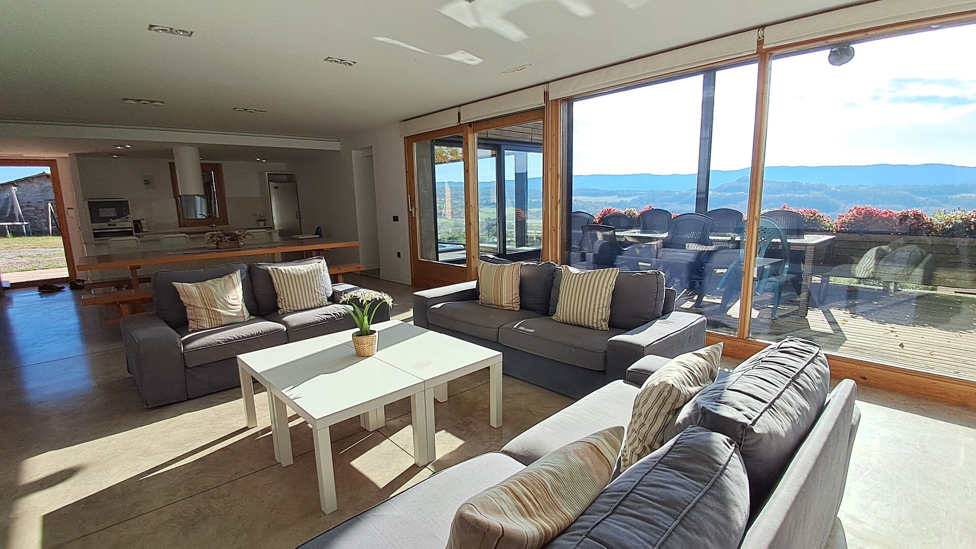 The country house Casa Puñol is from the early twentieth century. In spring 2012 it was finished as a thoroughly renovated and super modern house in unique surroundings. Today the house has a Scandinavian touch, with the large glass windows at the beautiful scenery. On the lower floor of the beautiful house is a large terrace with direct access from the living room and large modern open kitchen. The terrace also has a view to the house spa, which also has wall to wall windows, facing the impressive landscape.