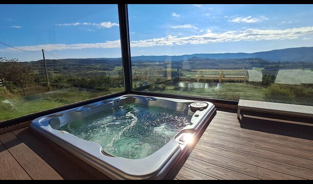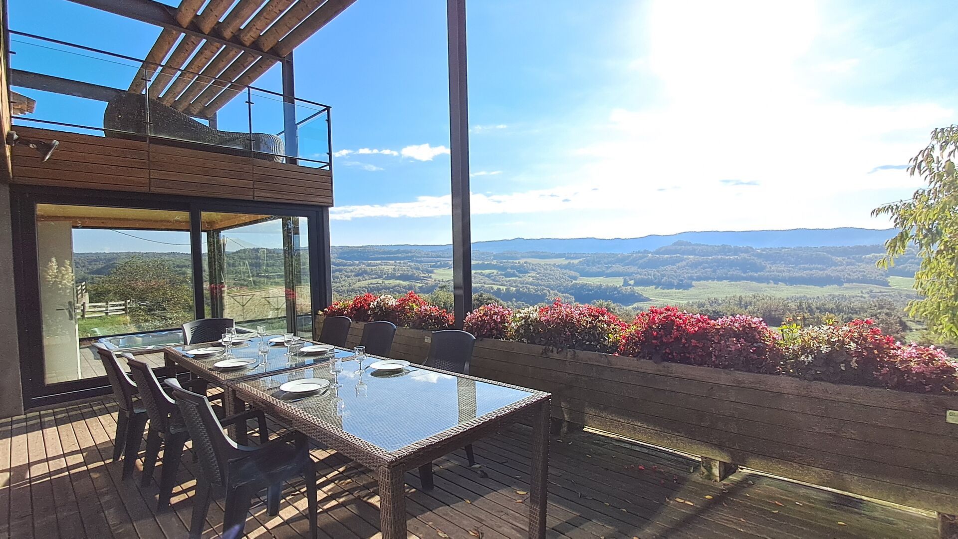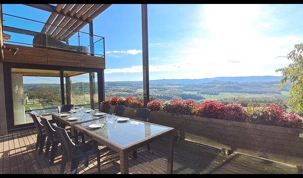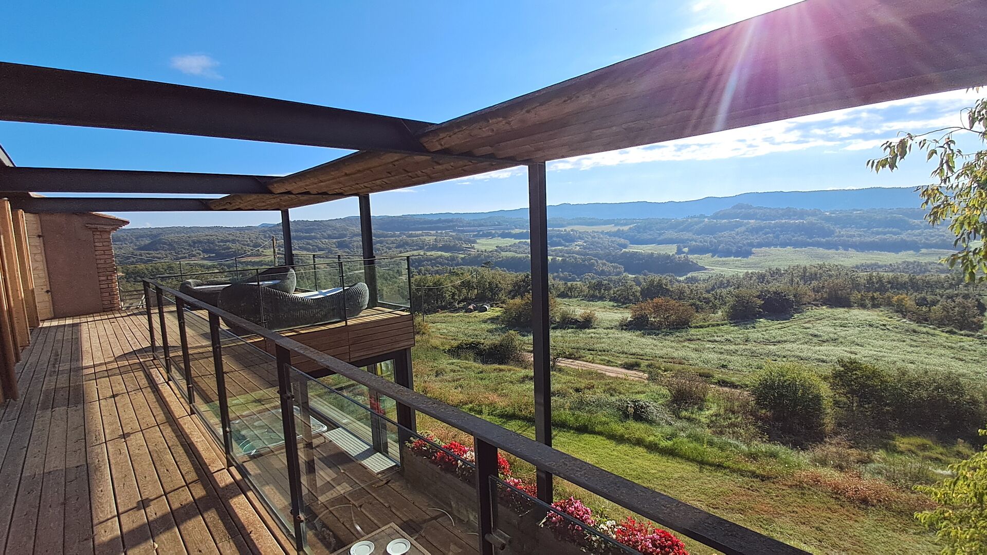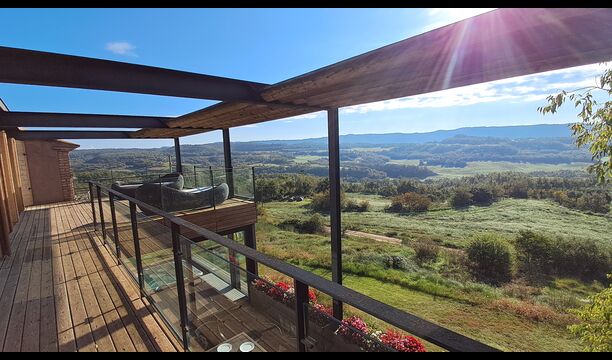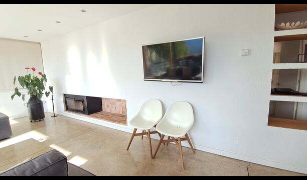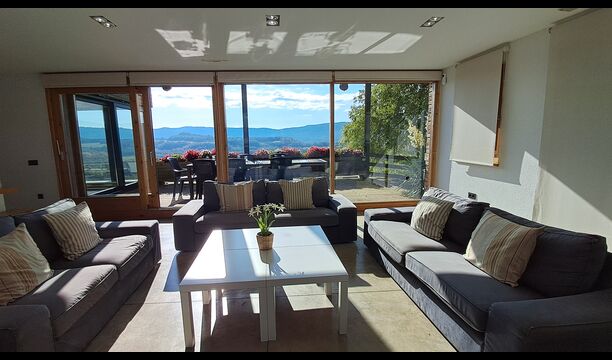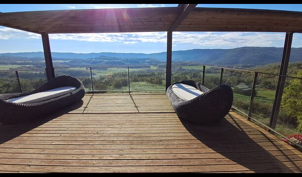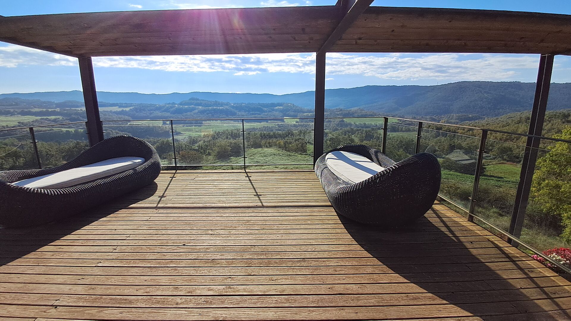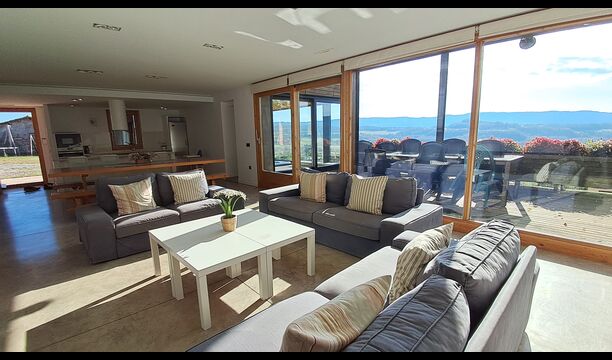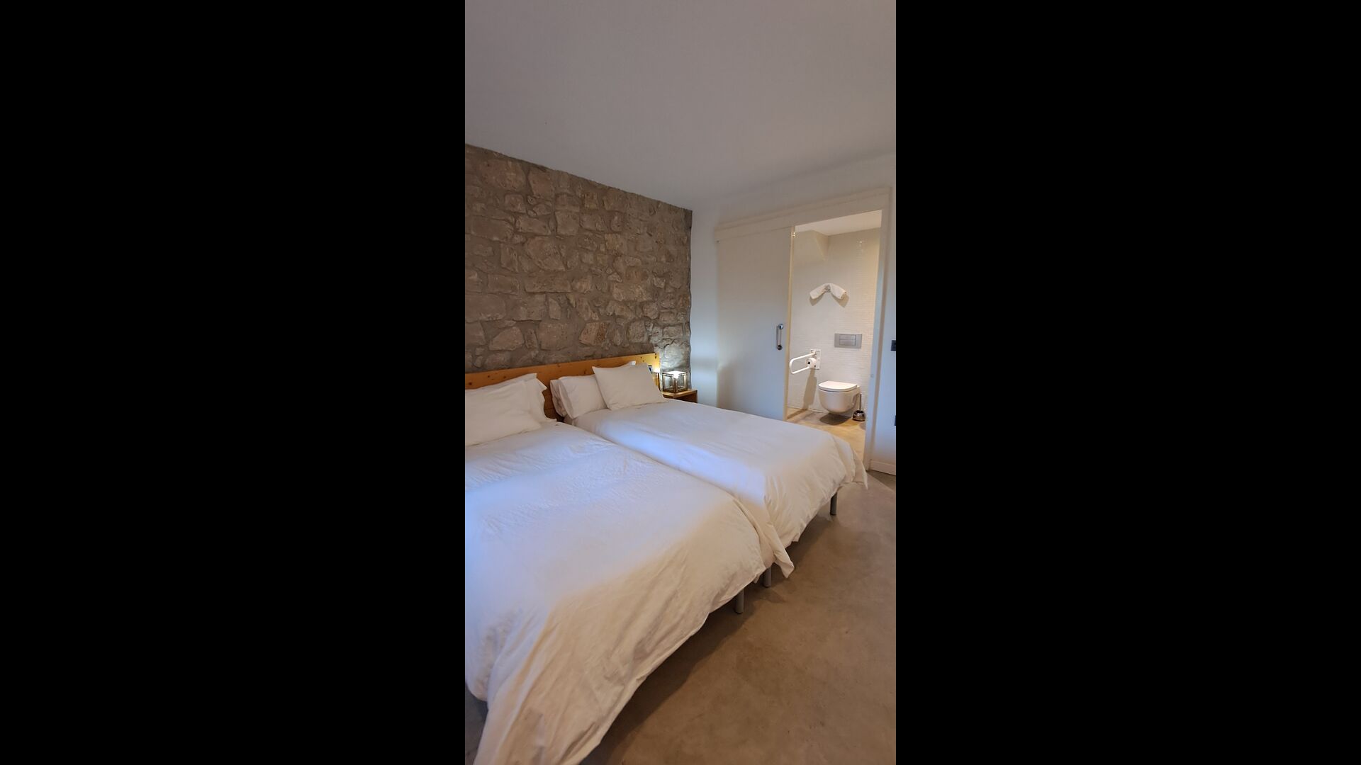 The country house Casa Puñol is from the early twentieth century. In spring 2012 it was finished as a thoroughly renovated and super modern house in unique surroundings. Today the house has a Scandinavian touch, with the large glass windows at the beautiful scenery. On the lower floor of the beautiful house is a large terrace with direct access from the living room and large modern open kitchen. The terrace also has a view to the house spa, which also has wall to wall windows, facing the impressive landscape.