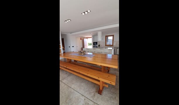 The garden has a small playing field, basketball and in a small building to the right of the house is built a large BBQ area with patio, outdoor kitchen and table tennis. The house has 6 bedrooms, all with private bathrooms. All rooms are held in the modern style - they are beautiful and bright and spacious. The floors have water-cooling, so the temperature can be reduced, when the summer is warmest.