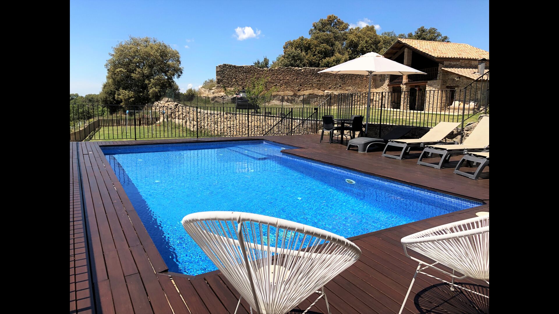 Here you can get the most relaxing base for your holiday, only disturbed by bird calls and maybe a cow bell in the distance. Enjoy the sun, or if you prefer the shade, the covered terrace overlooking the pool and with the scenery in the background and even to the iconic Montserrat mountain on a clear day.