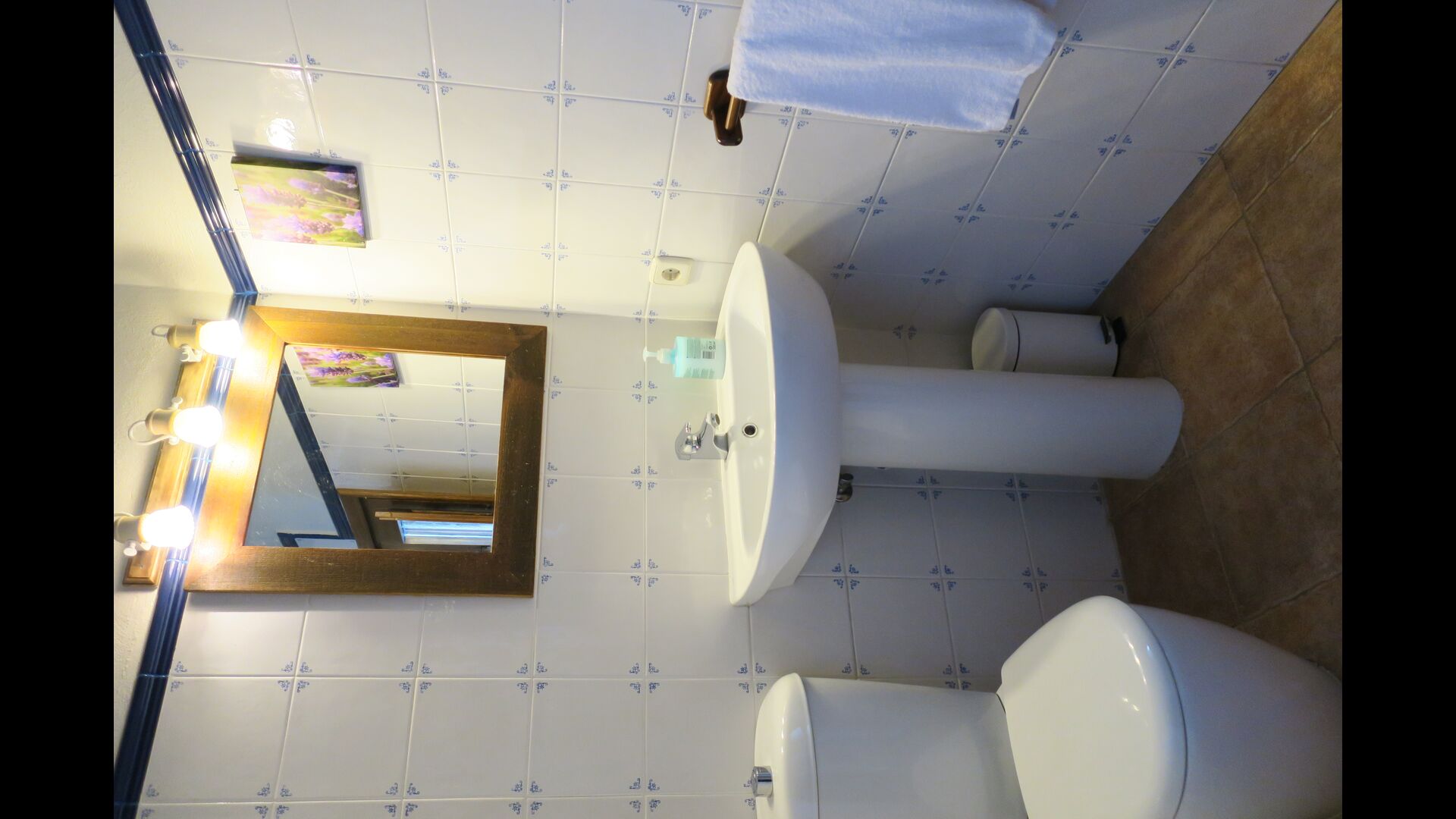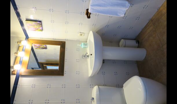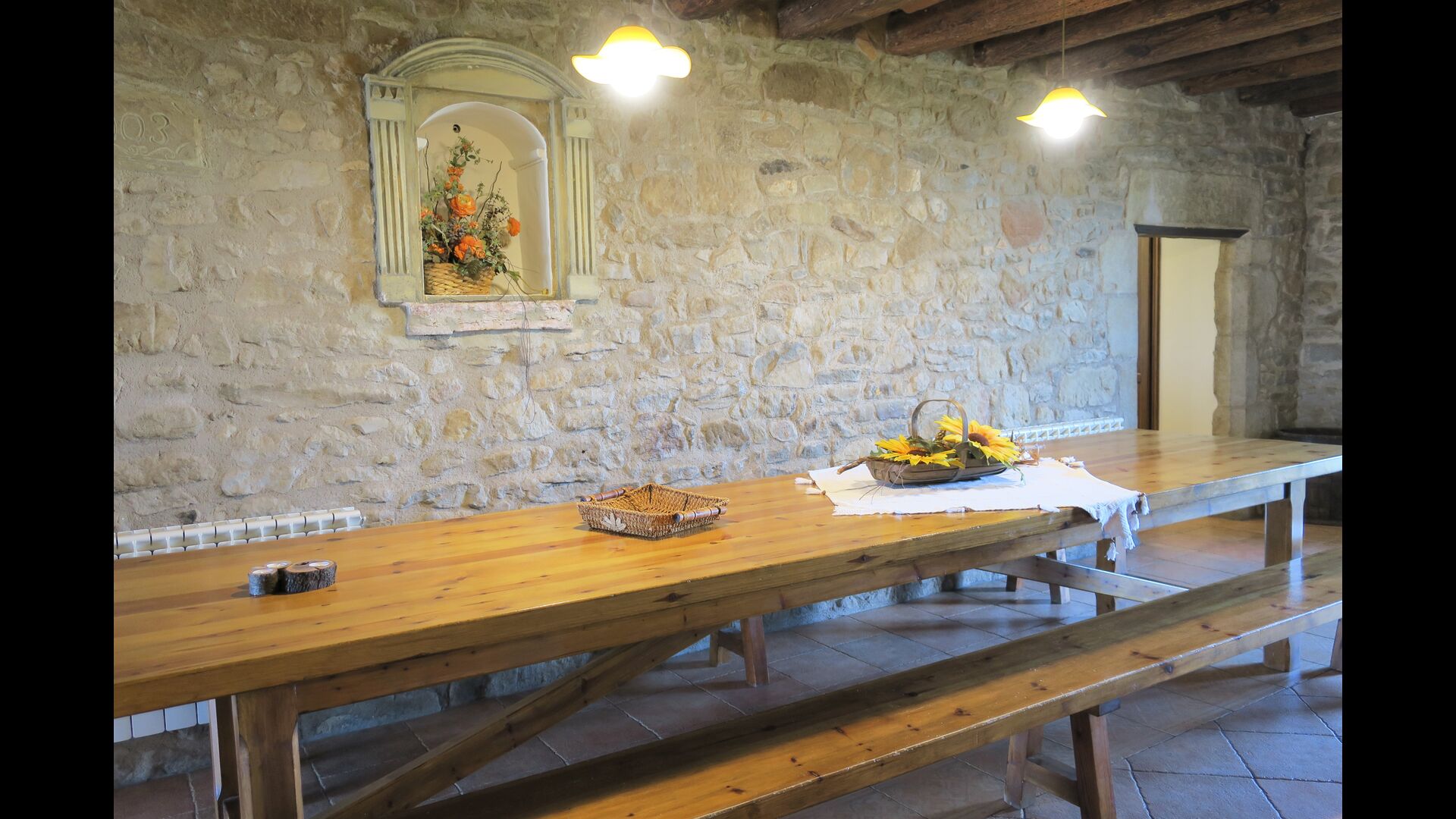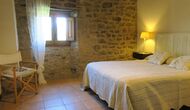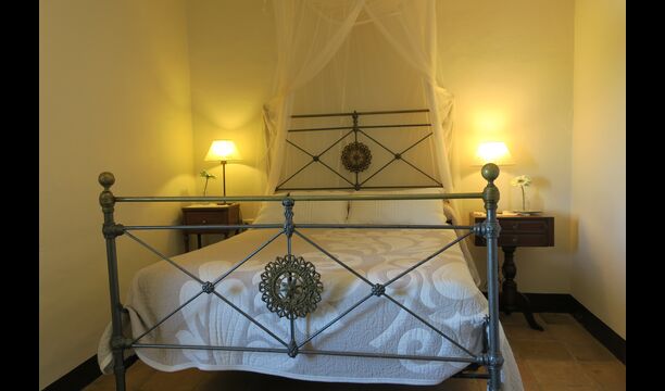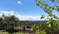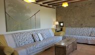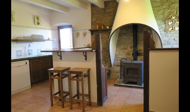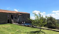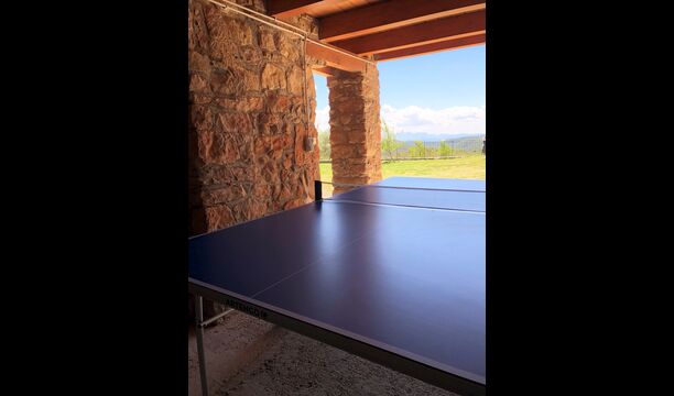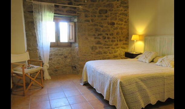 The entrance to the house is a few steps up, where there is a smaller terrace. The house has a large living room with long table and a fully equipped kitchen. There are a total of 4 double rooms with double beds and a room with 3 single beds. Two additional beds are available to accommodate up to 13 people in the house. There are 2 common bathrooms. Downstairs there is a sofa area with flat screen TV and countryside views.