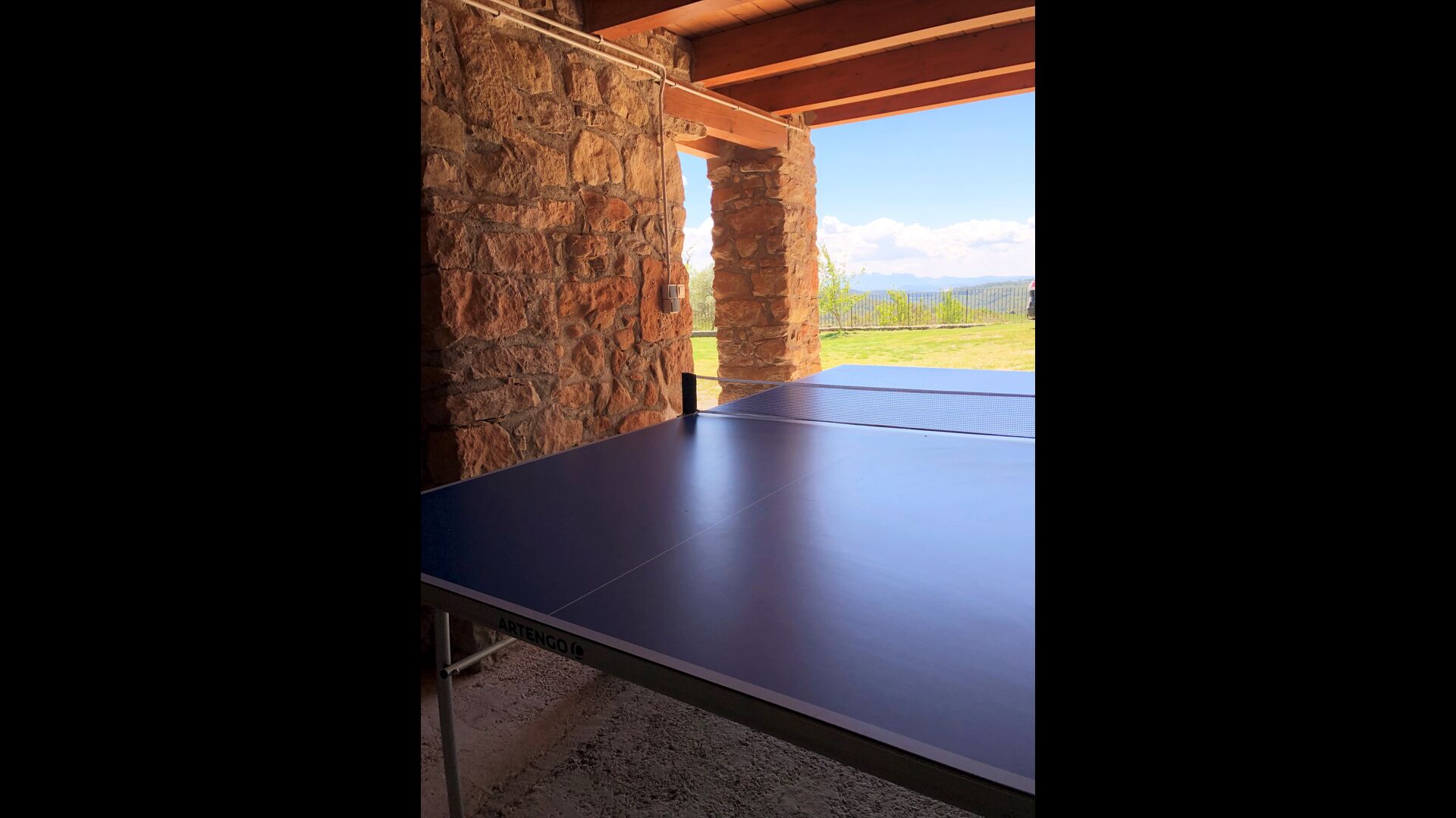 The outside area consists of a lawn, the covered terrace with barbecue and a small hall with a table tennis. One level down (fenced), you have your private swimming pool so you can have a dip on the hot summer days. In the level below the swimming pool there is also a playground.