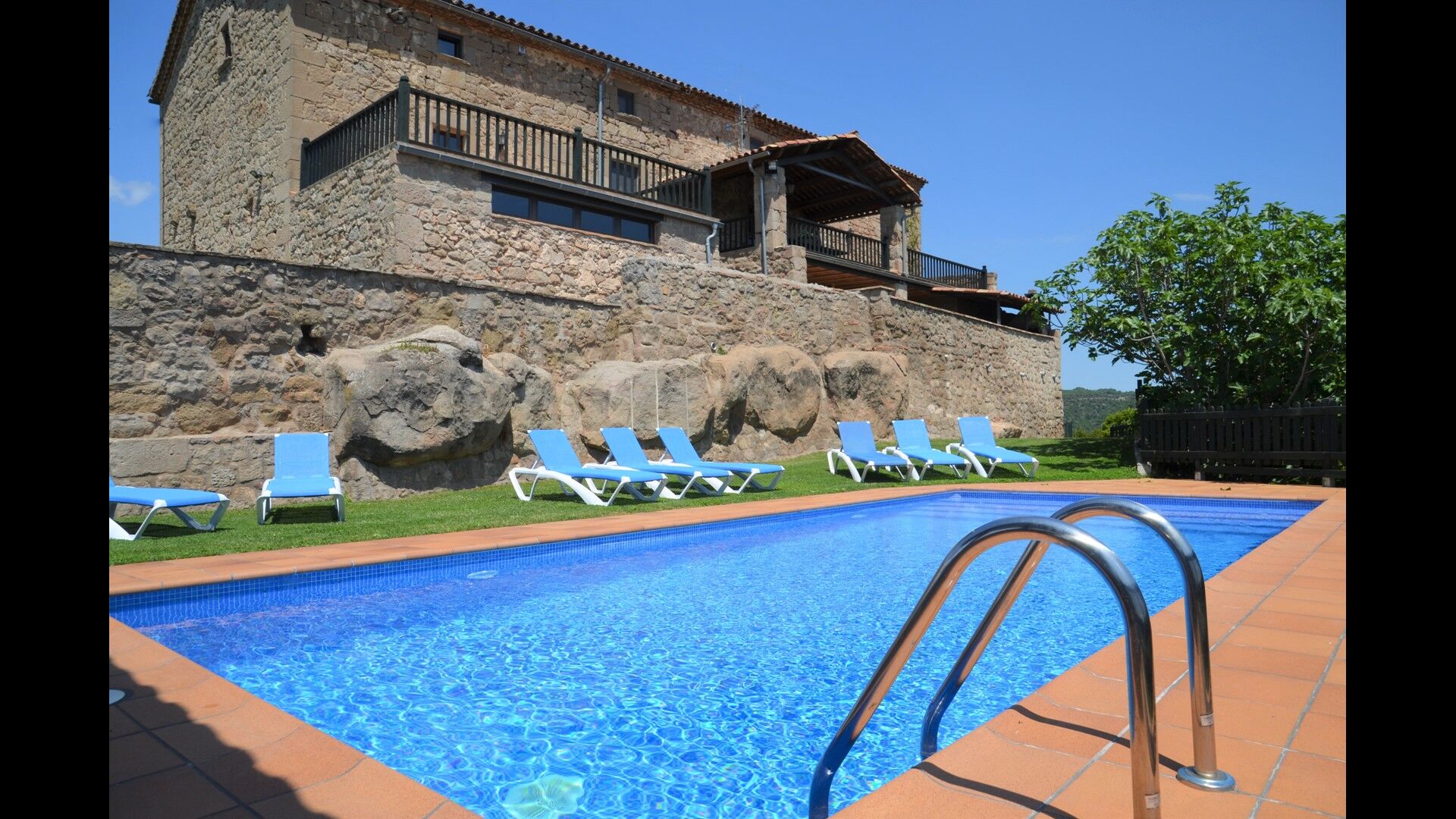 The pool area of the holiday home stands out. Firstly, the pool is large with a size of less than 32 m2, and secondly, the view is indescribable good, because the pool is equal to the edge of the tray. There has been put a fence for safety reasons. In addition, there are sun beds for all guests in the house. Right next to the pool there is a covered terrace, which probably will be the meeting point of the holiday. There is also another terrace with direct access to the kitchen. Here you can enjoy the homemade food during the long and warm Catalan evenings.
