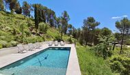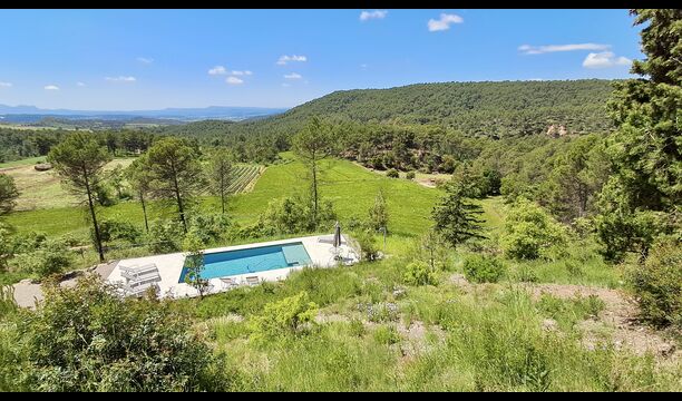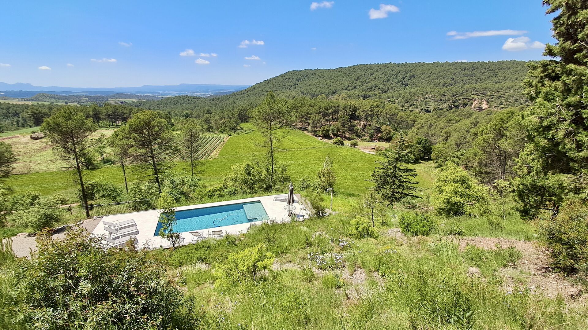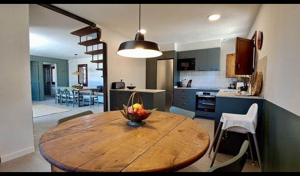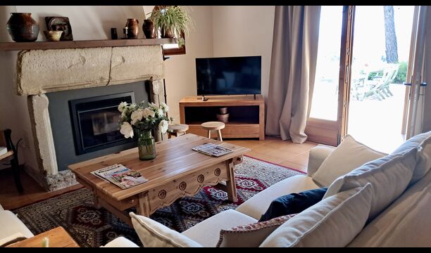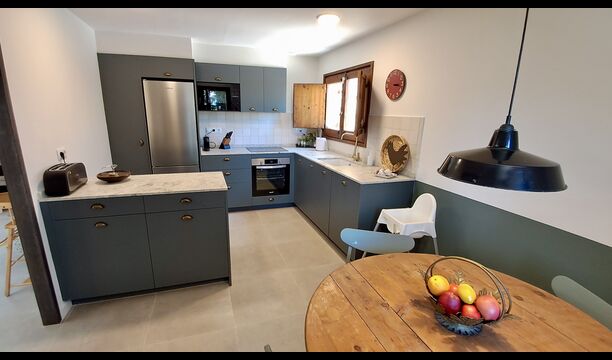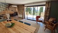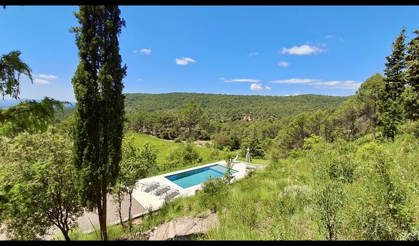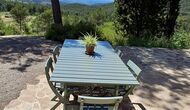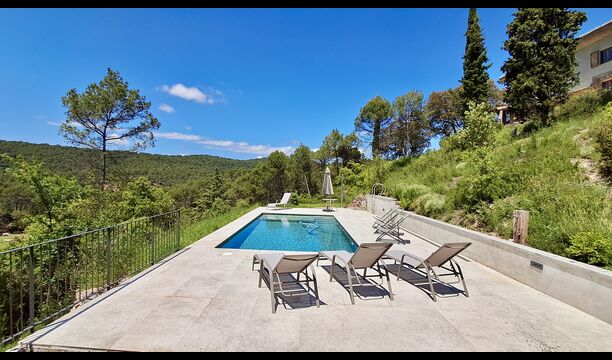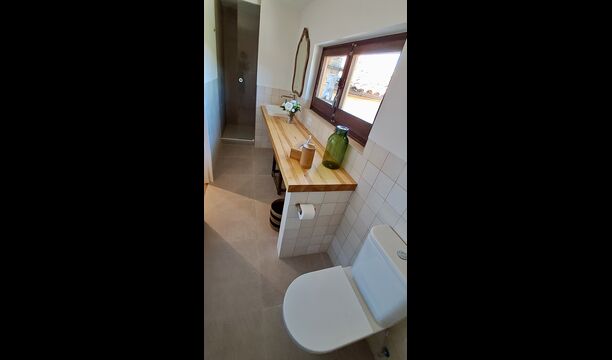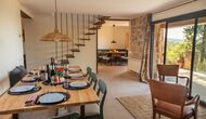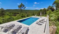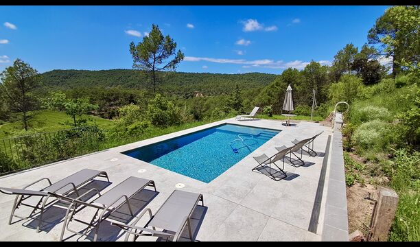 The property boasts a spacious garden with private forested areas, perfect for hikes or simply soaking up the beauty of the surroundings. The outdoor saltwater pool offers a refreshing way to cool off, while the terrace provides space to relax. Indoors, the fully equipped kitchen and cozy living spaces allow guests to enjoy meals and moments together.