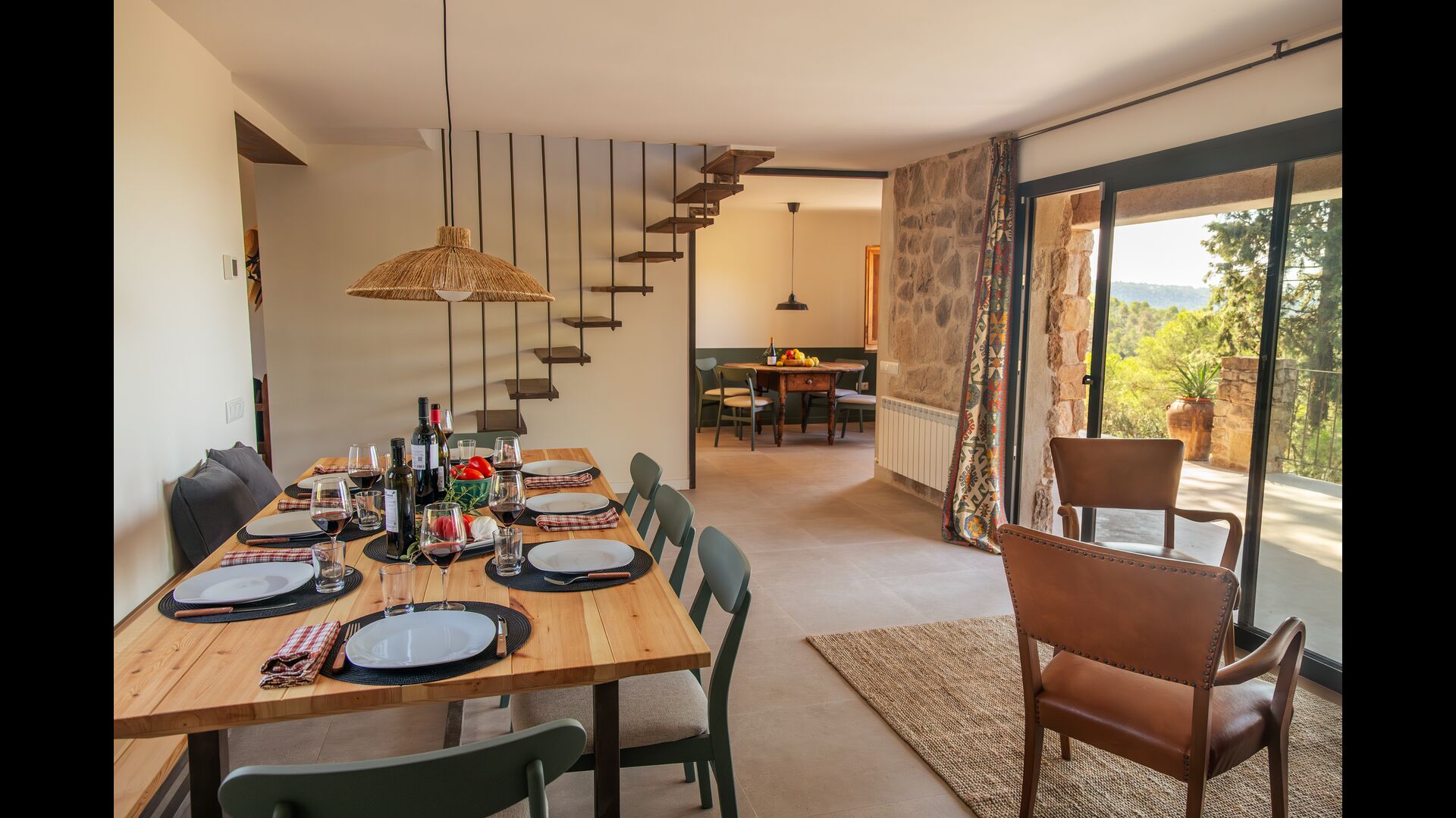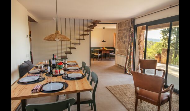 This stunning holiday home offers the perfect escape into the heart of nature, situated in the Bages region of Catalonia, close to the renowned vineyards of Celler Abadal. La Tor de Muñas lies on a hill, providing breathtaking views of lush forests, hills, and the majestic Montserrat mountains. It’s the ideal retreat for families, friends, and nature lovers looking to relax in a tranquil yet luxurious environment.