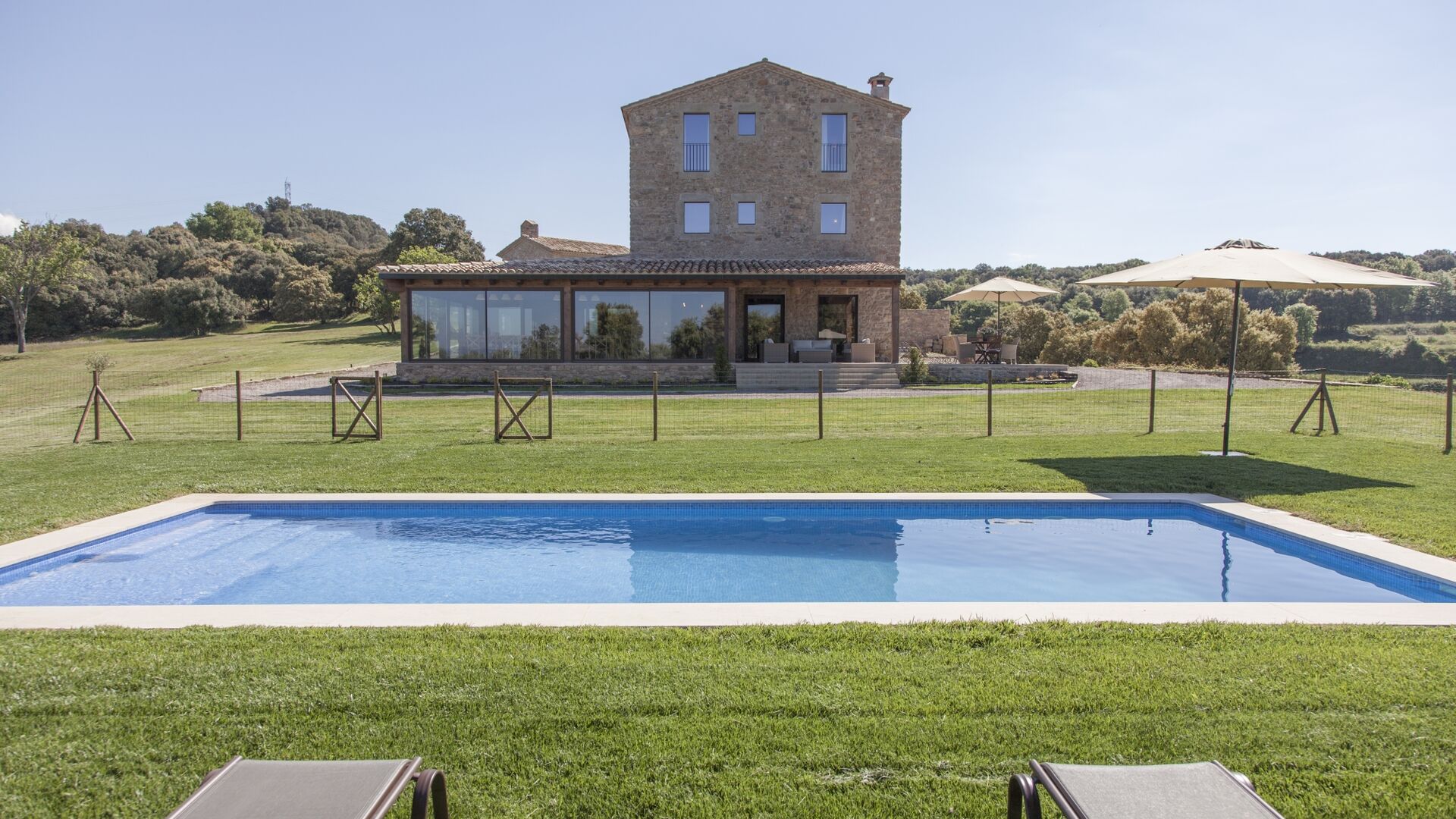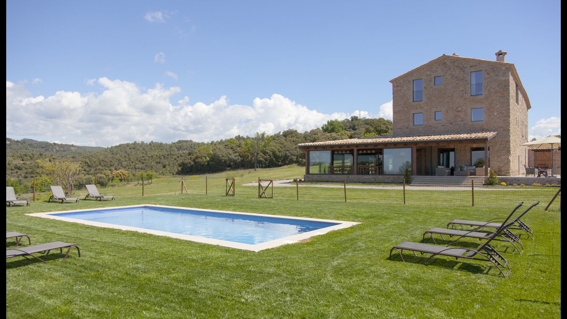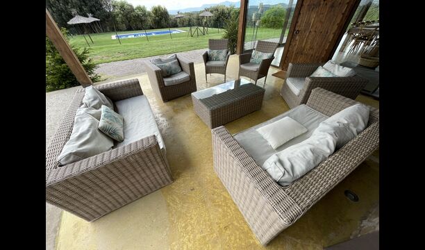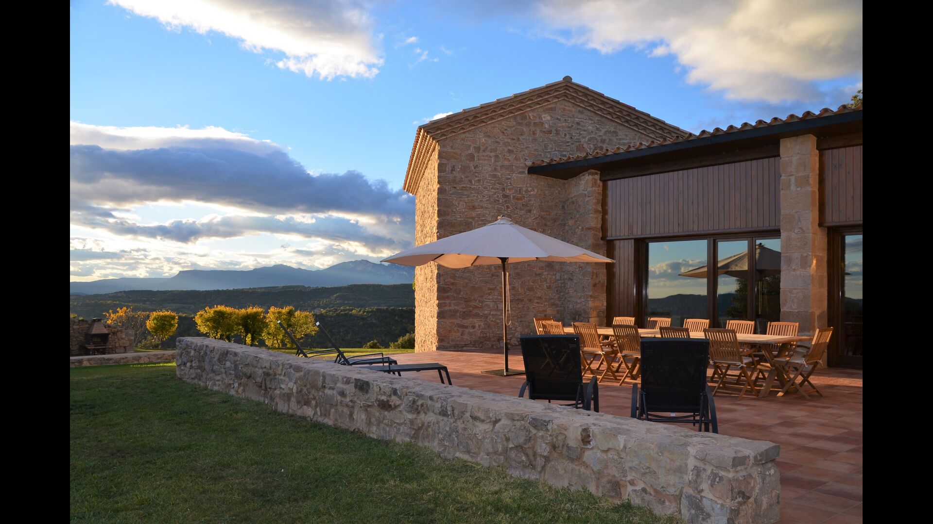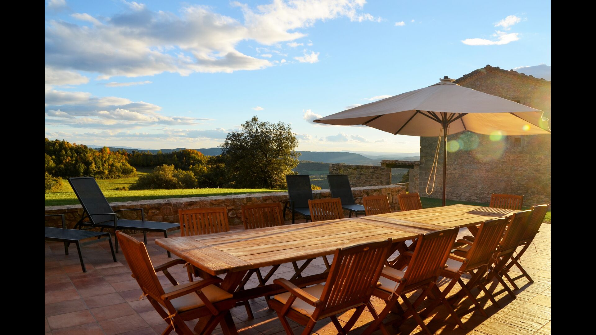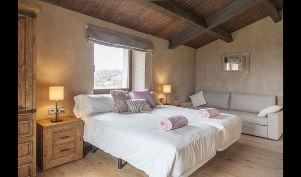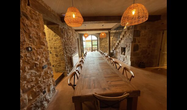 In Central Catalonia, on a hilltop, the three newly restored holiday homes, Las Casas de Mateo, has just been opened for guests, a combination of the three neighbor houses Can de Mateo, Masoveria de Mateo & La Mas de Mateo. The house has room for 46 + 7 guests in the three houses and the grand attraction is the unique location. In Las Masias de Mateo you have the opportunity to enjoy a 360 degree view of the Catalonian countryside, framed by the Pre-Pyrenees rising in the background. We represent many holiday homes in this region, all with stunning views, but Las Masias de Mateo beats almost everything in this regard.