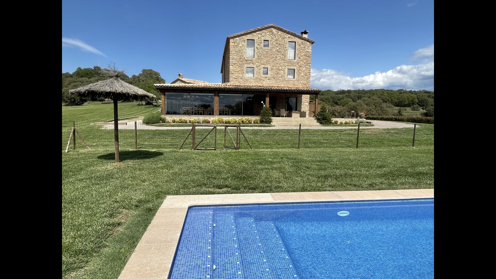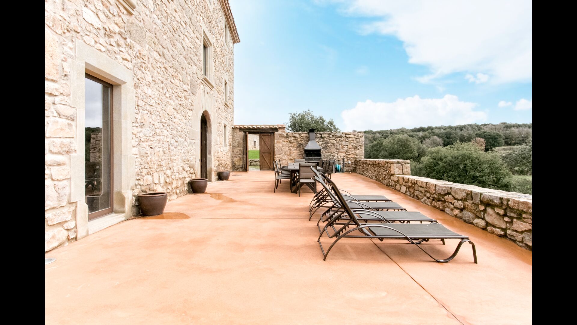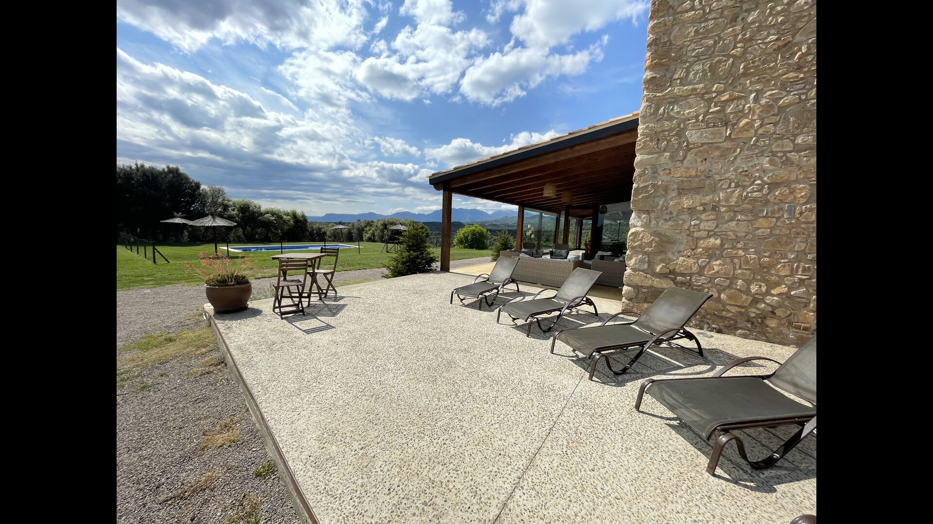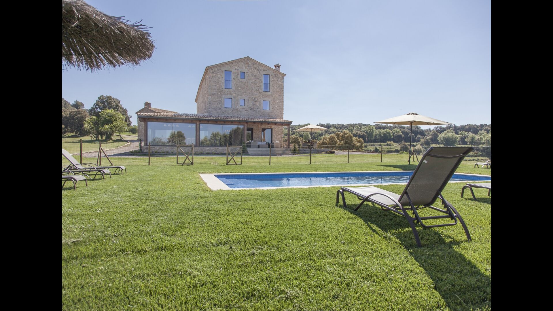 In Central Catalonia, on a hilltop, the three newly restored holiday homes, Las Casas de Mateo, has just been opened for guests, a combination of the three neighbor houses Can de Mateo, Masoveria de Mateo & La Mas de Mateo. The house has room for 46 + 7 guests in the three houses and the grand attraction is the unique location. In Las Masias de Mateo you have the opportunity to enjoy a 360 degree view of the Catalonian countryside, framed by the Pre-Pyrenees rising in the background. We represent many holiday homes in this region, all with stunning views, but Las Masias de Mateo beats almost everything in this regard.