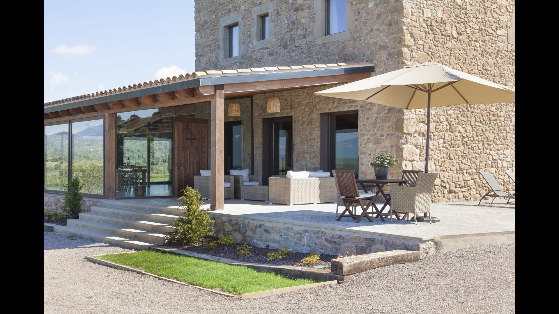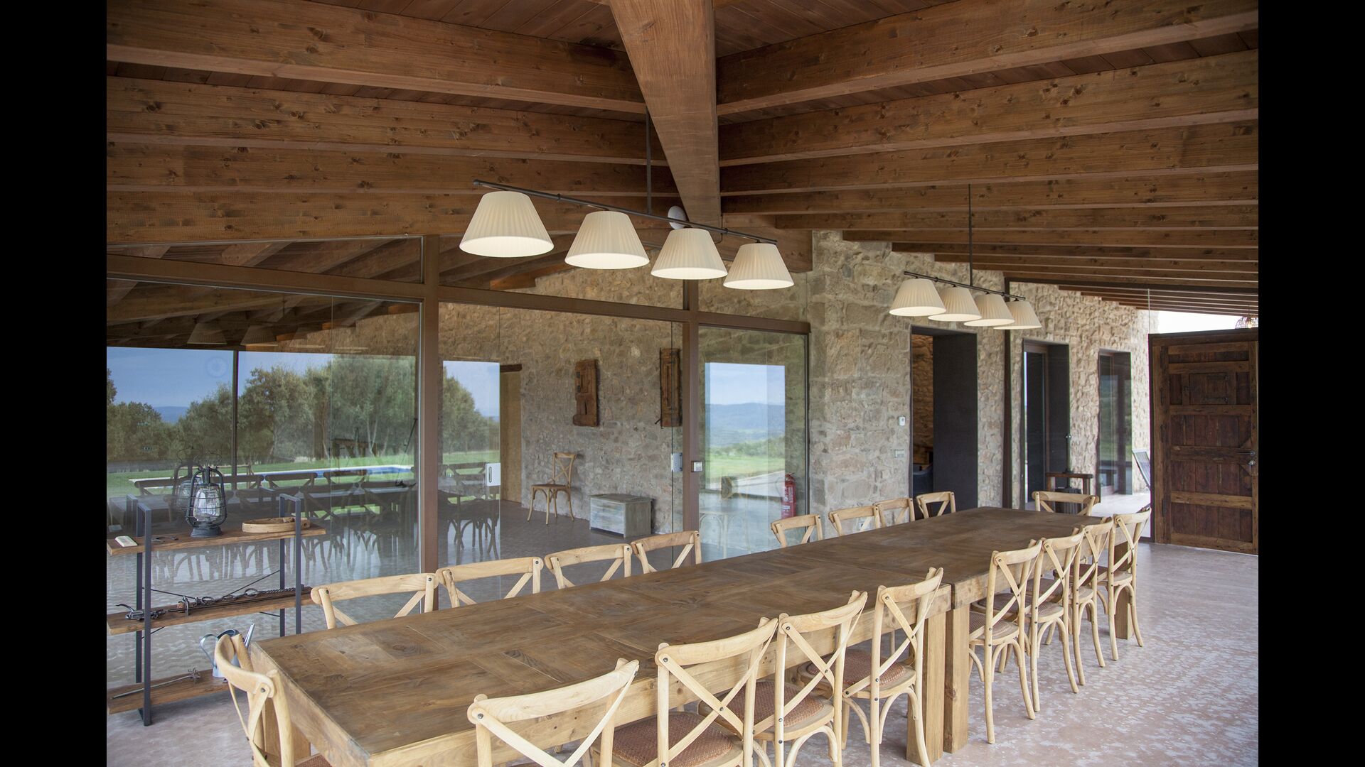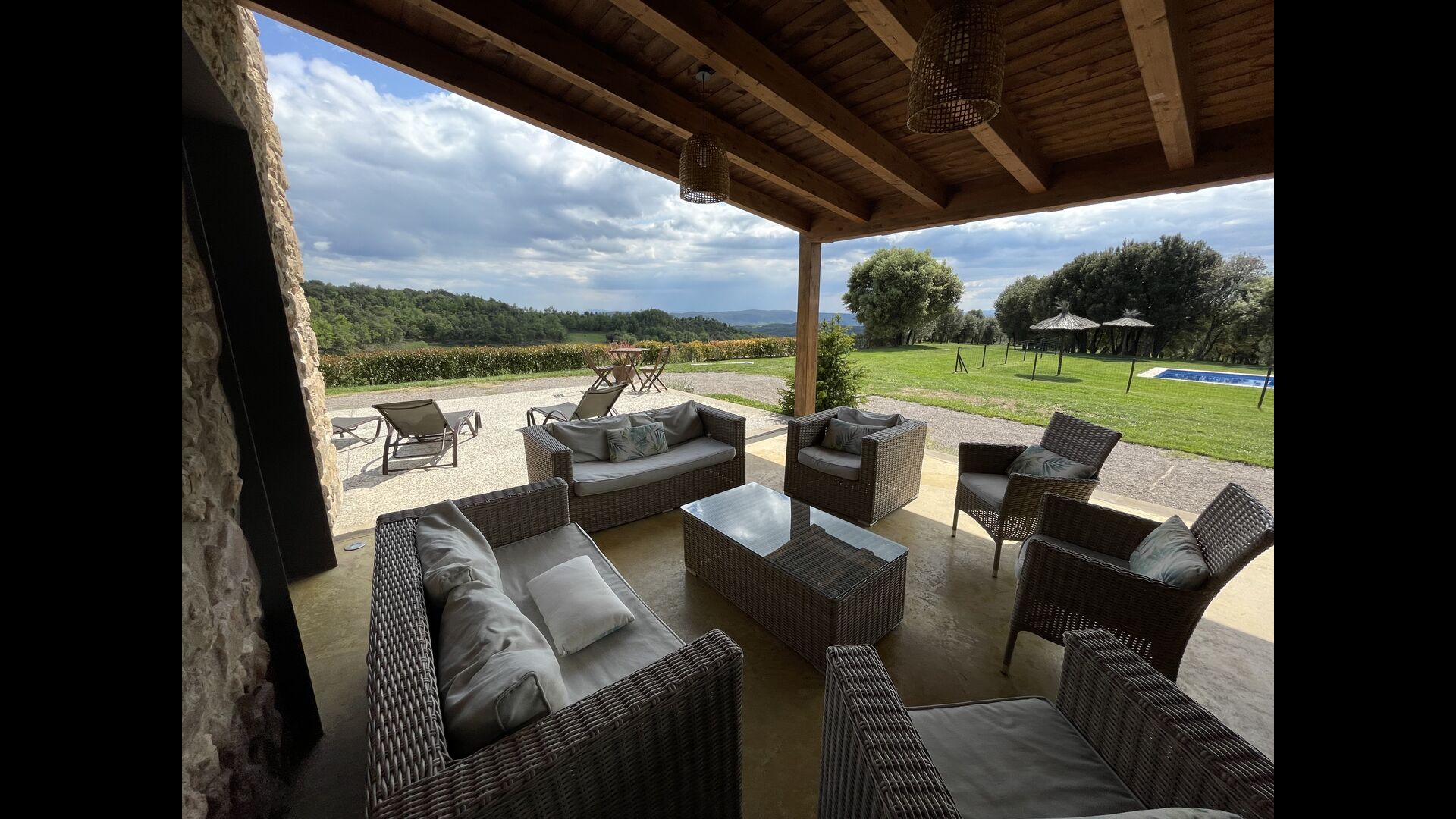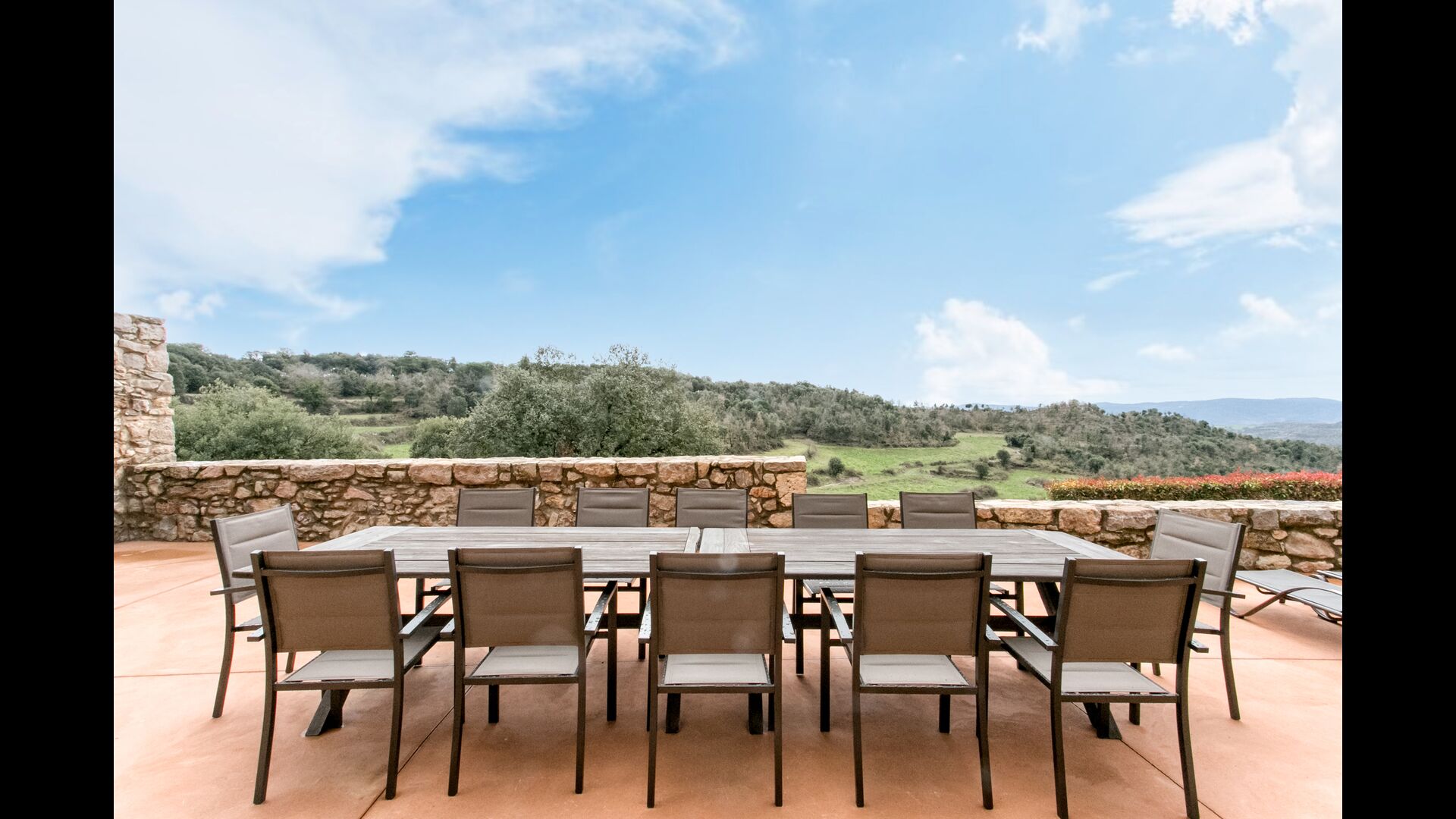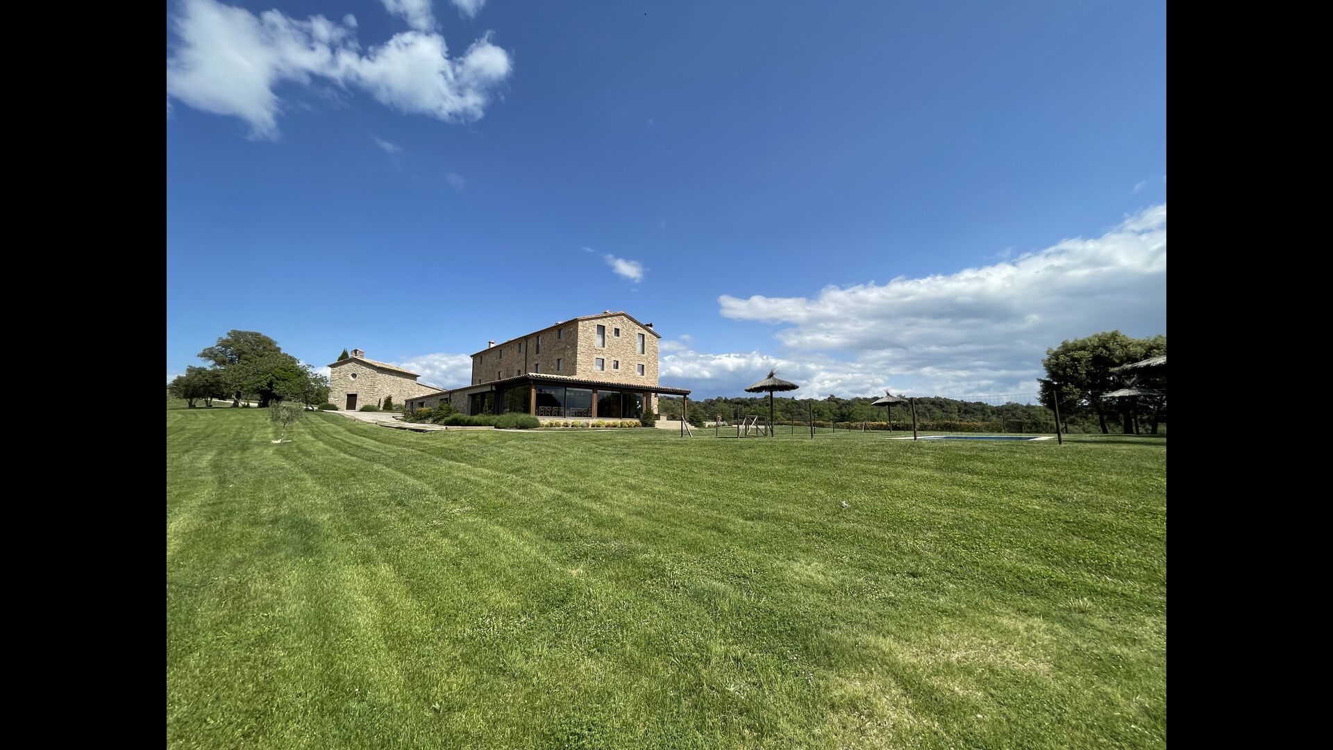 In Central Catalonia, on a hilltop, the three newly restored holiday homes, Las Casas de Mateo, has just been opened for guests, a combination of the three neighbor houses Can de Mateo, Masoveria de Mateo & La Mas de Mateo. The house has room for 46 + 7 guests in the three houses and the grand attraction is the unique location. In Las Masias de Mateo you have the opportunity to enjoy a 360 degree view of the Catalonian countryside, framed by the Pre-Pyrenees rising in the background. We represent many holiday homes in this region, all with stunning views, but Las Masias de Mateo beats almost everything in this regard.