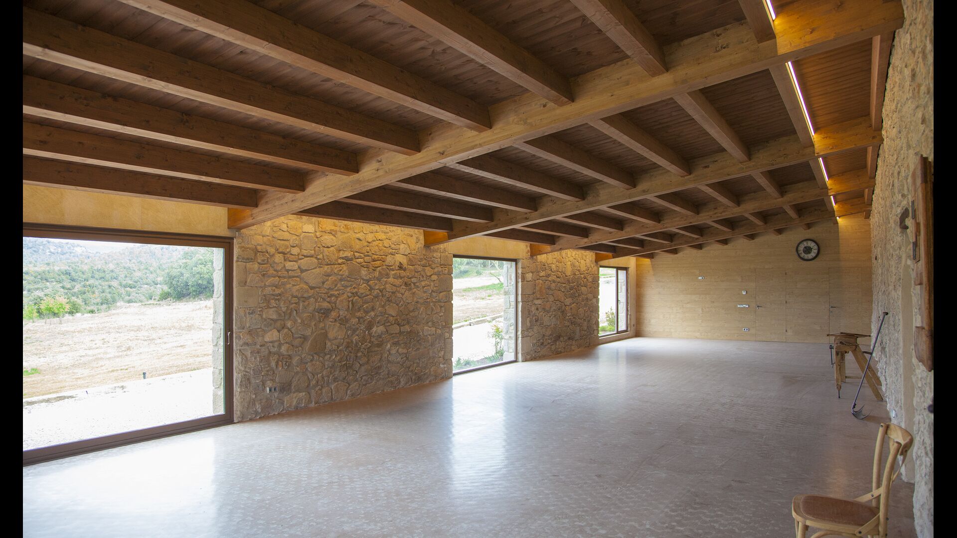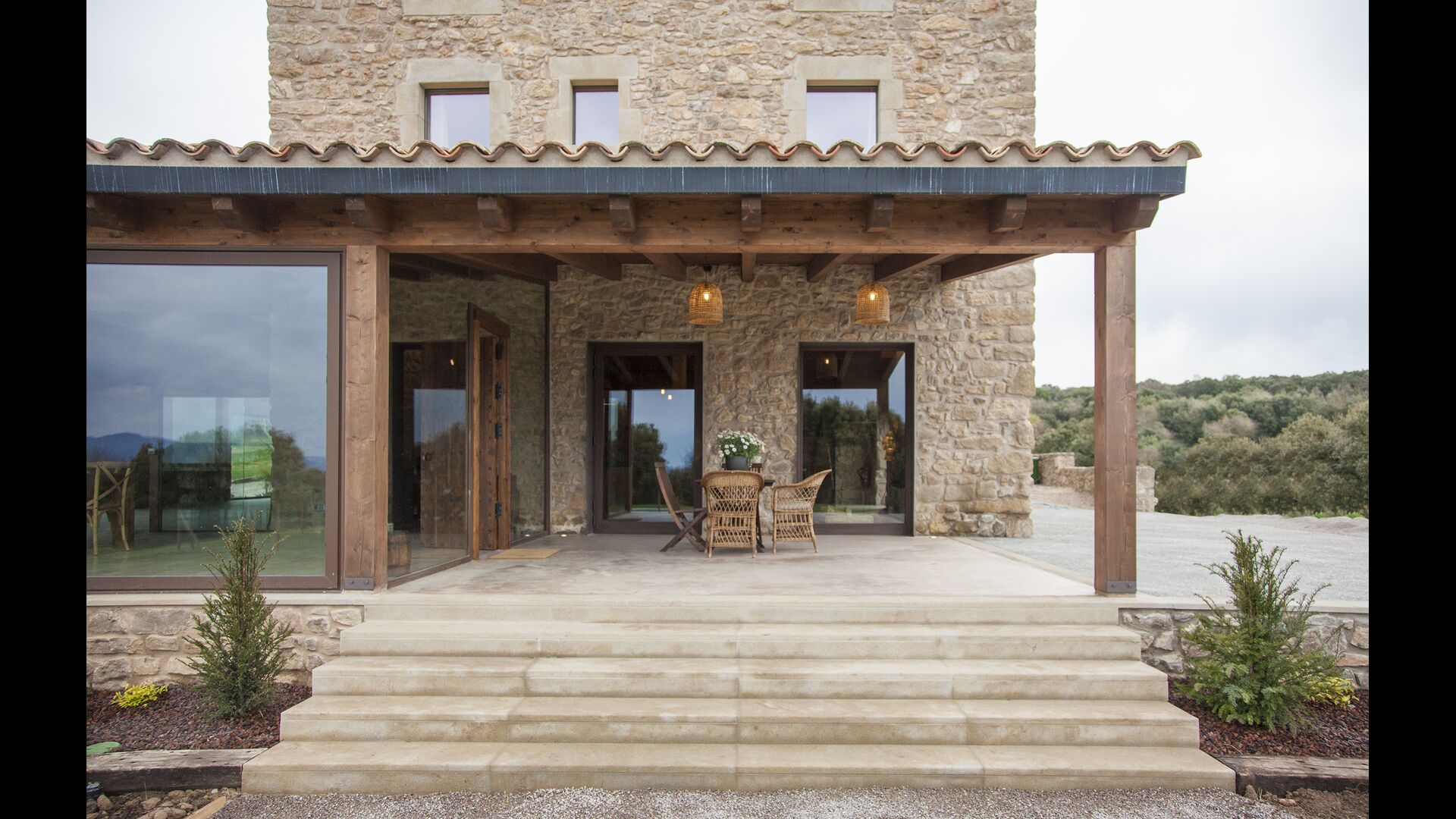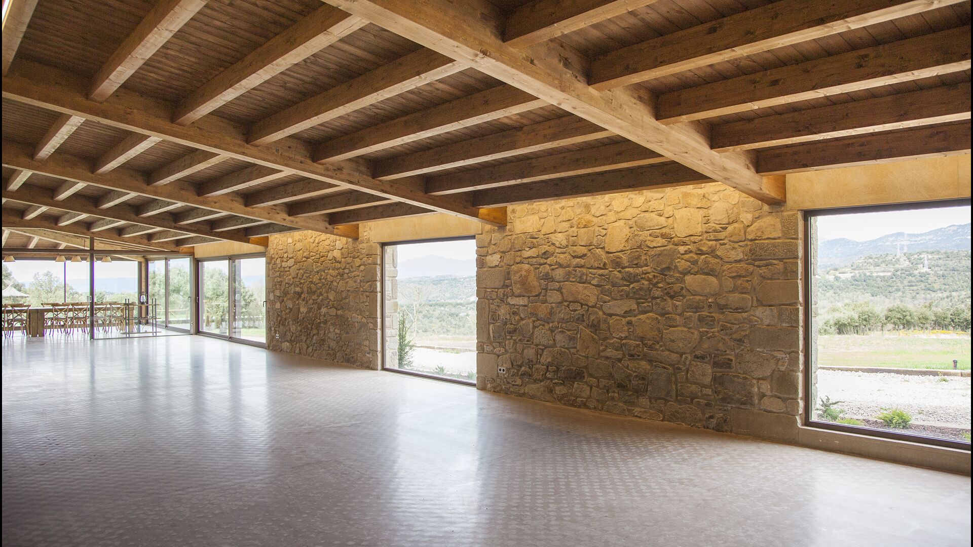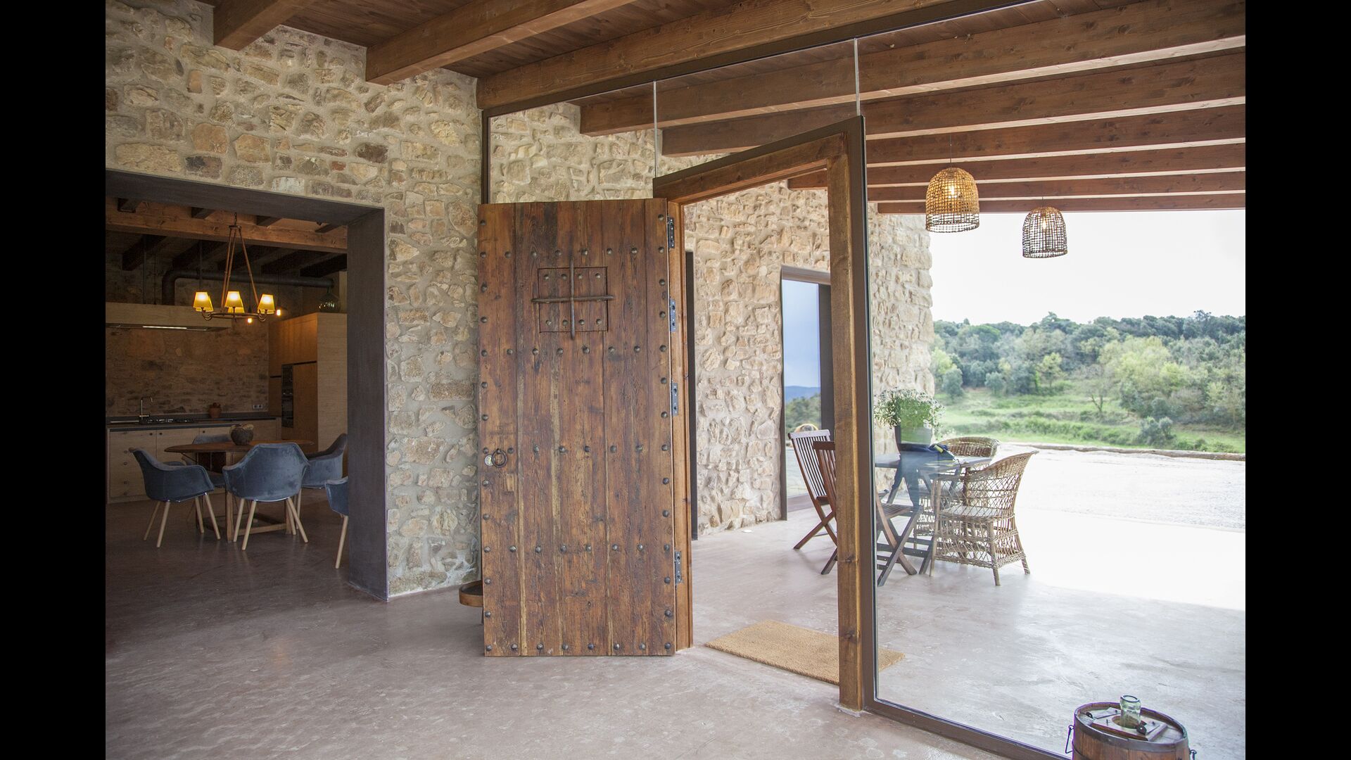 In Central Catalonia, on a hilltop, the three newly restored holiday homes, Las Casas de Mateo, has just been opened for guests, a combination of the three neighbor houses Can de Mateo, Masoveria de Mateo & La Mas de Mateo. The house has room for 46 + 7 guests in the three houses and the grand attraction is the unique location. In Las Masias de Mateo you have the opportunity to enjoy a 360 degree view of the Catalonian countryside, framed by the Pre-Pyrenees rising in the background. We represent many holiday homes in this region, all with stunning views, but Las Masias de Mateo beats almost everything in this regard.
