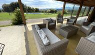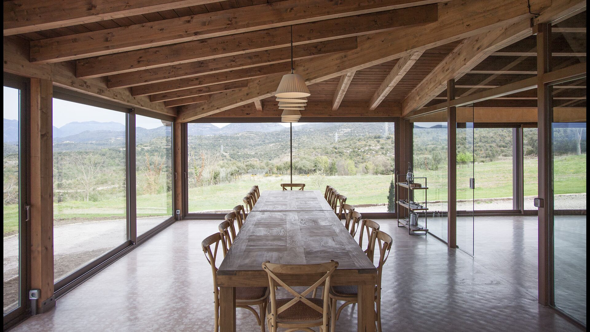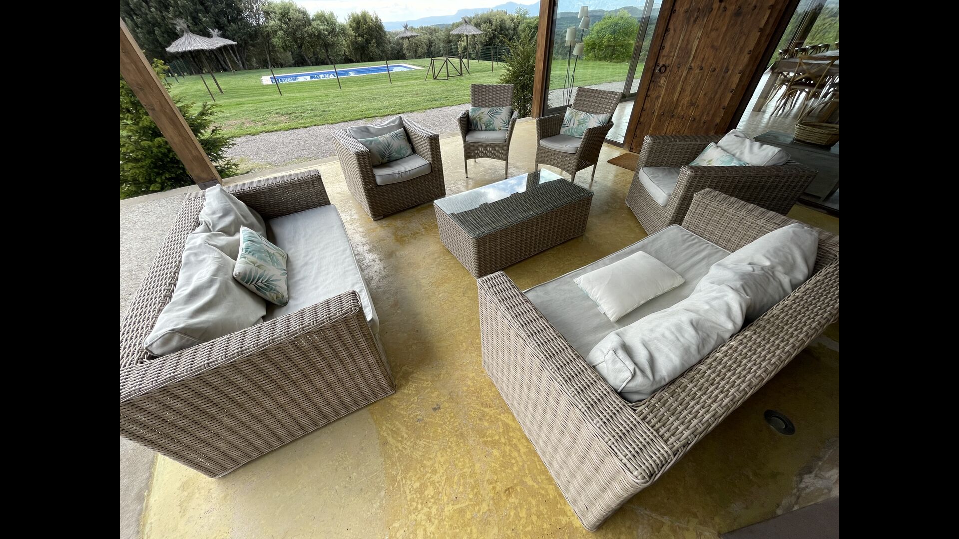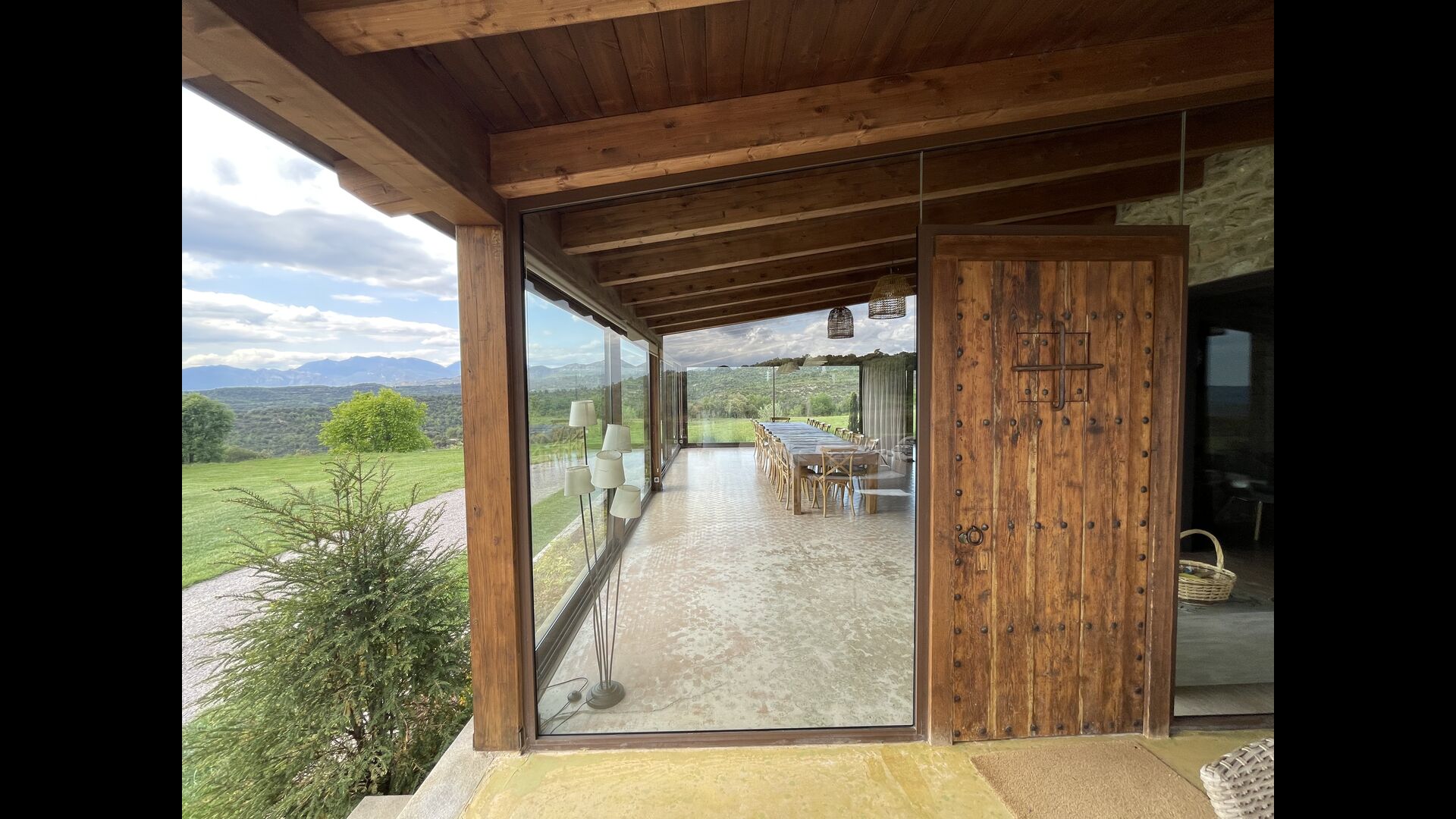 On the ground floor there is a porch located in front of the pool and with spectacular views of the mountains. From here, you can go into the dining room, which has views of the garden through the large windows.