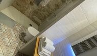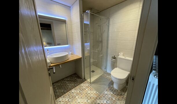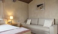 On the upper floor, there are 6 great, modern bedrooms, all with ensuite bathrooms. Each room has a sofa bed, which allows them to become triple or quadruple according to your needs.