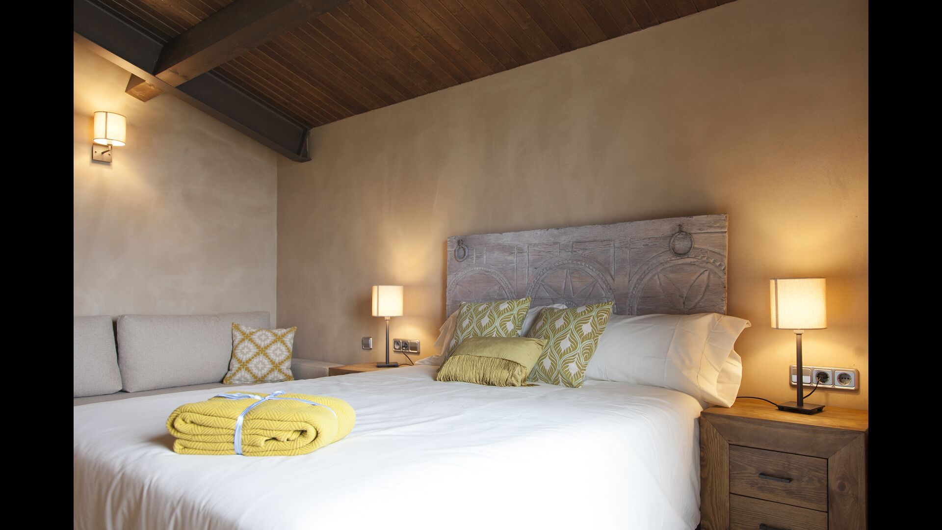 A spectacular house, full of details from the original construction, framed in wooden furniture and warm fabrics.