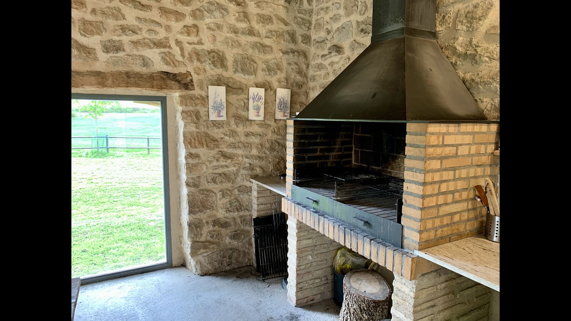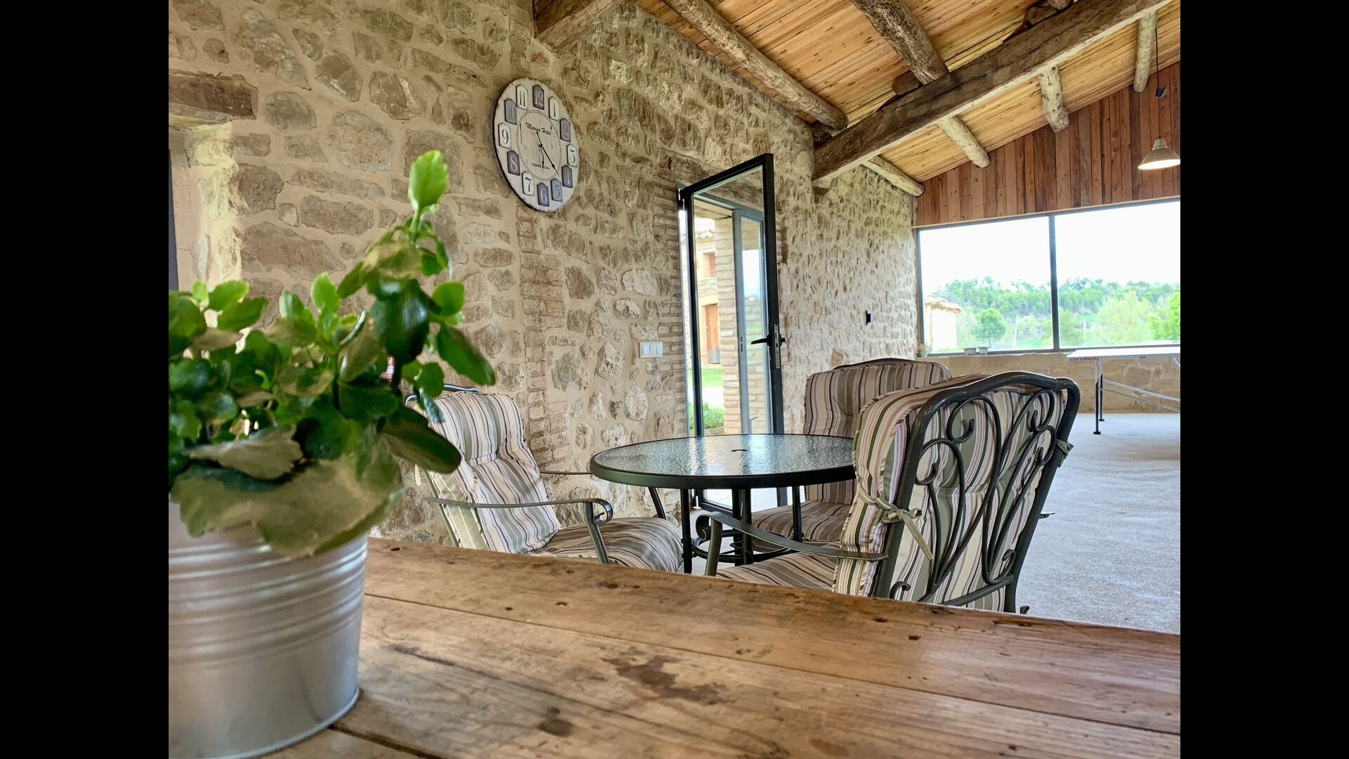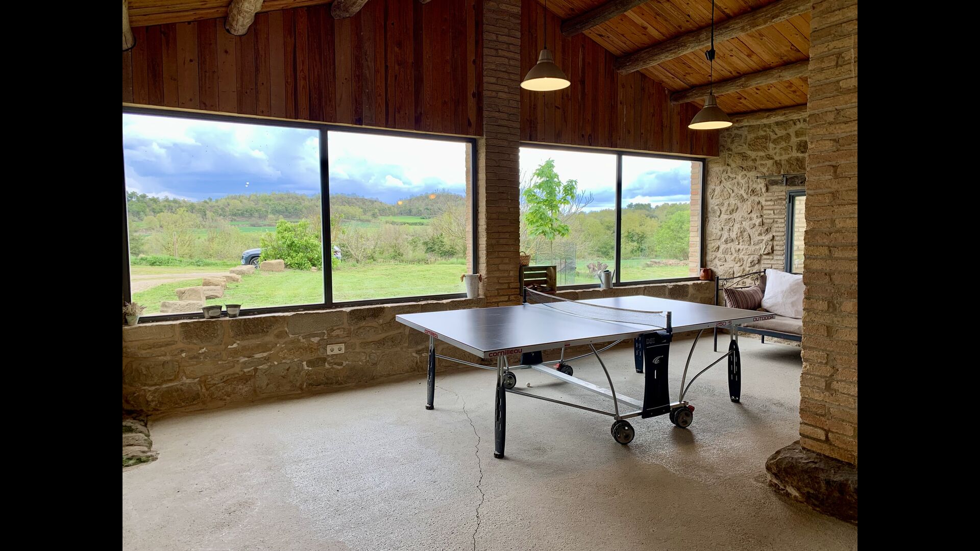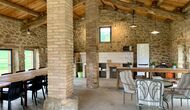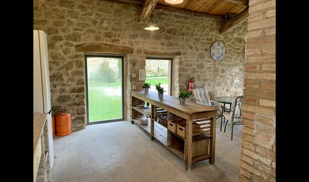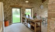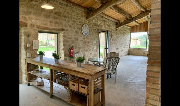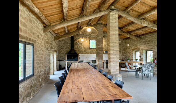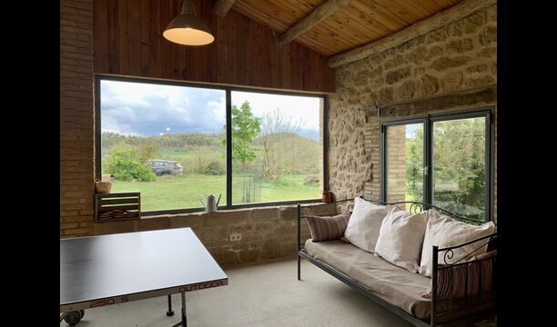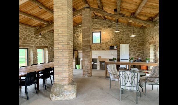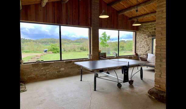 The smaller, separate limestone building is located next to the swimming pool area. Inside there is a large table tennis, a long wooden dining table and a BBQ area with simple kitchen facilities. The location is superb, as it is easy to get from the pool area. We imagine the children of the group will have a a blast running back and forth from the game room and the swimming pool.