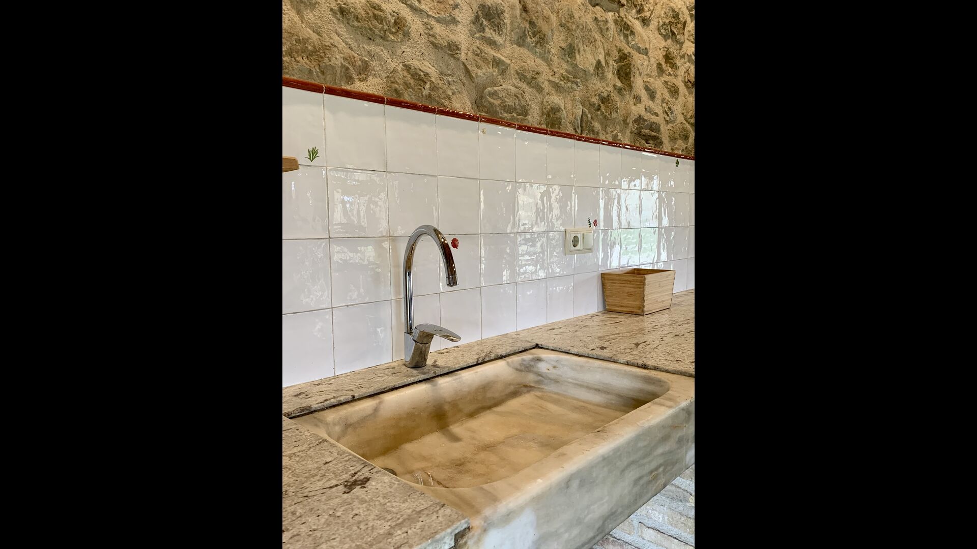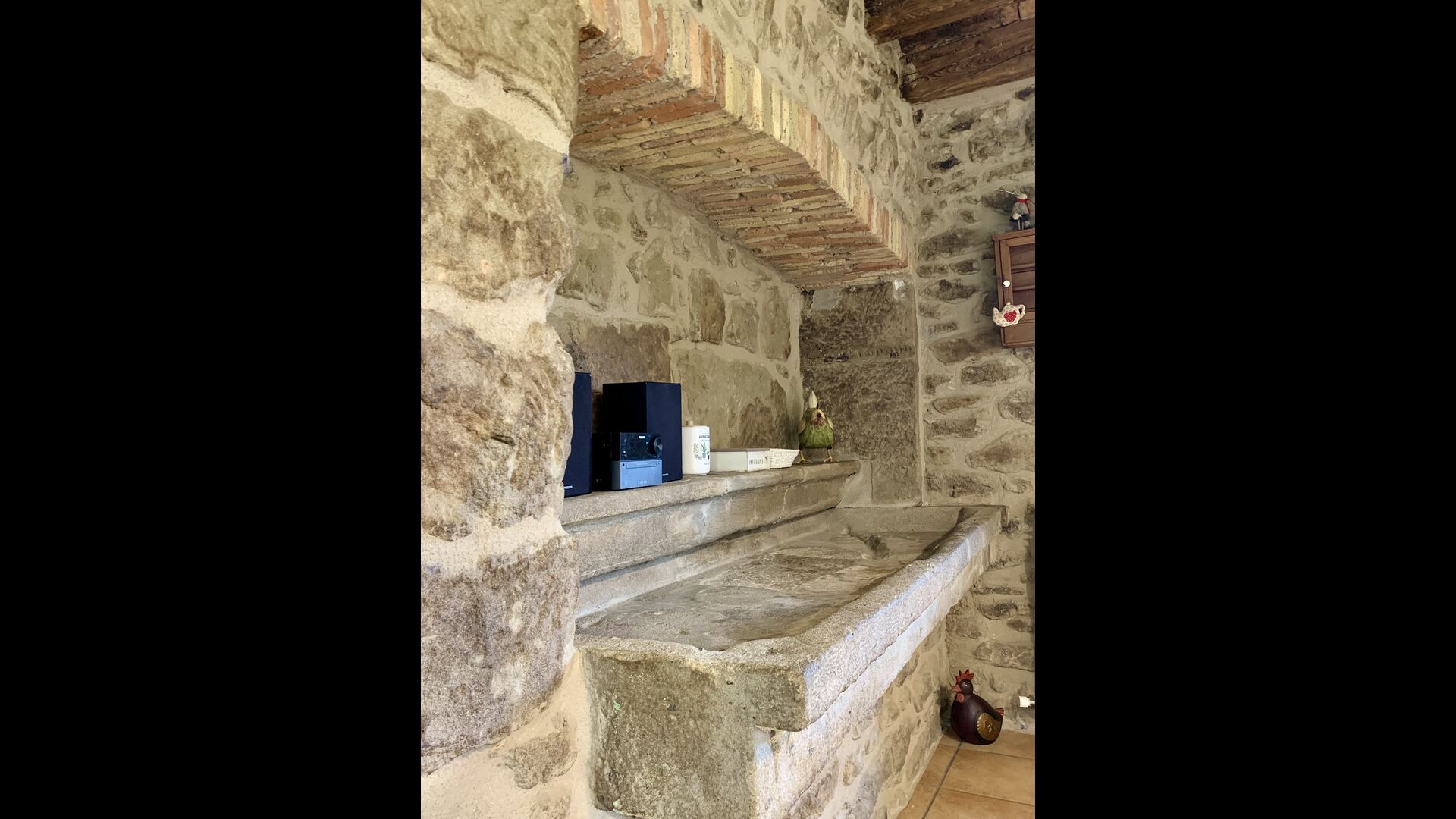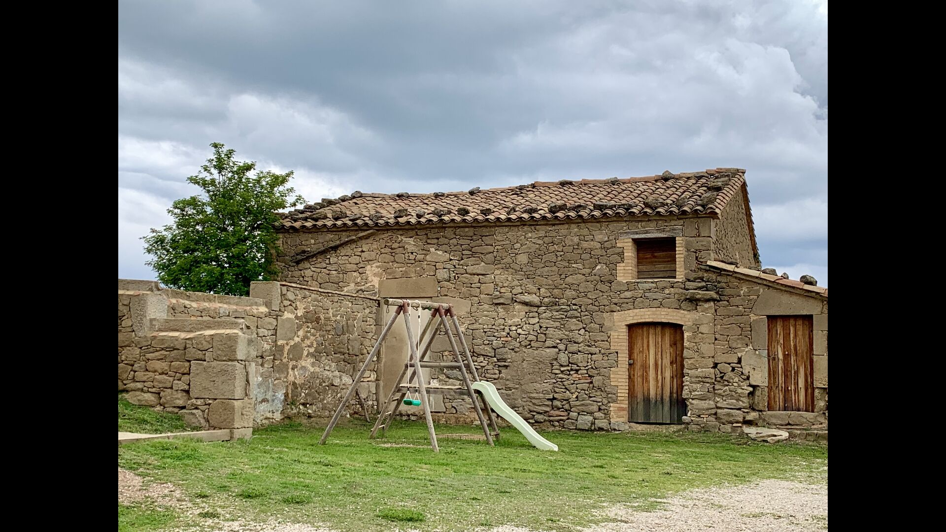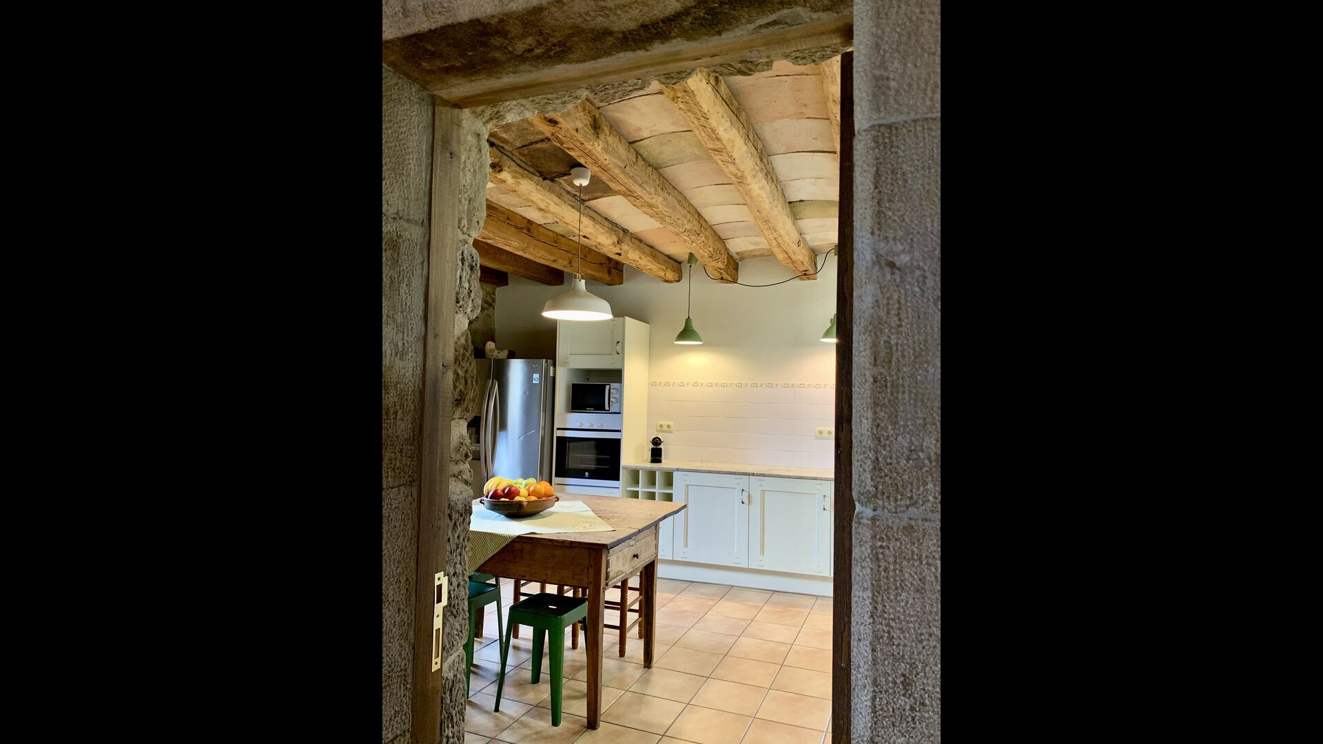 The smaller, separate limestone building is located next to the swimming pool area. Inside there is a large table tennis, a long wooden dining table and a BBQ area with simple kitchen facilities. The location is superb, as it is easy to get from the pool area. We imagine the children of the group will have a a blast running back and forth from the game room and the swimming pool.