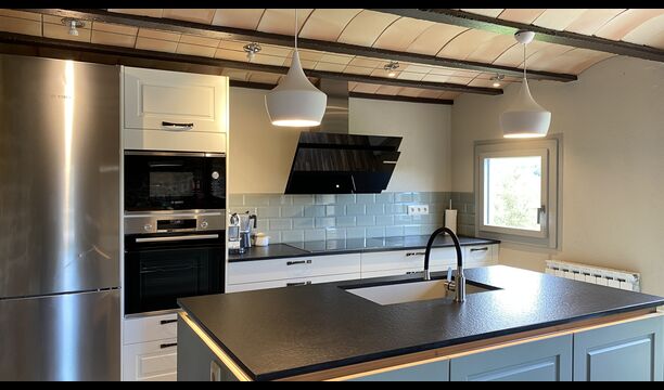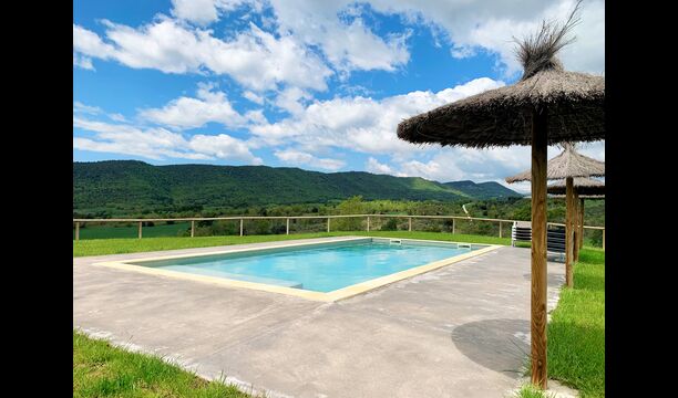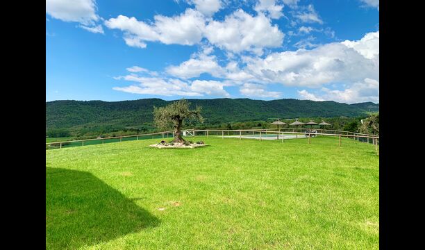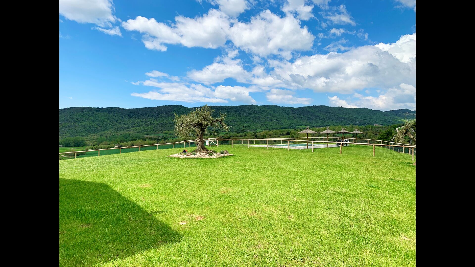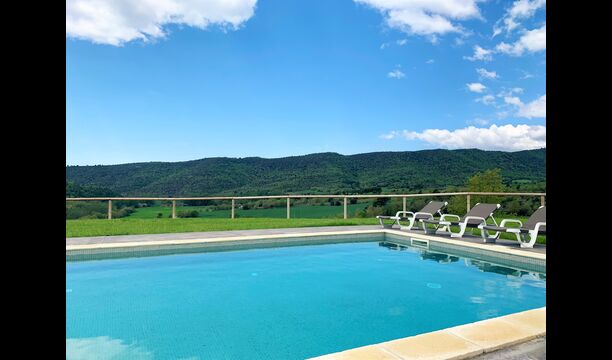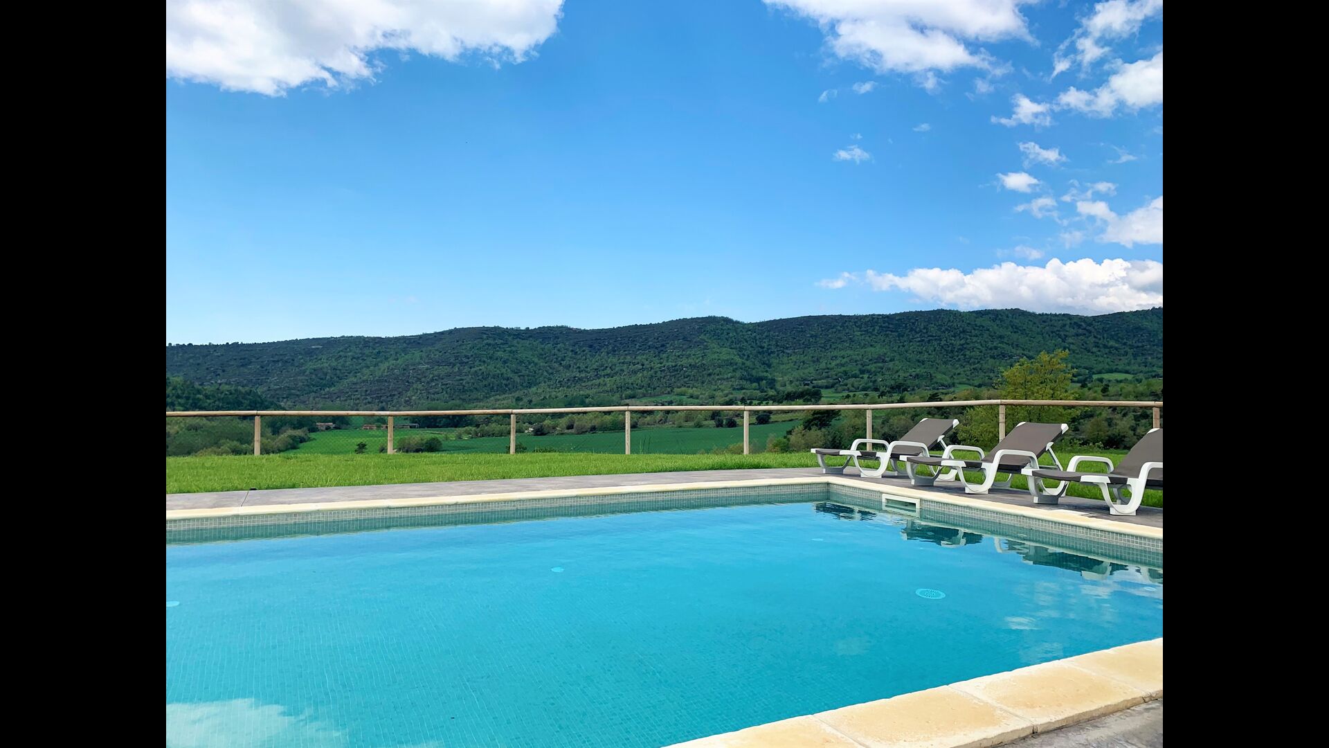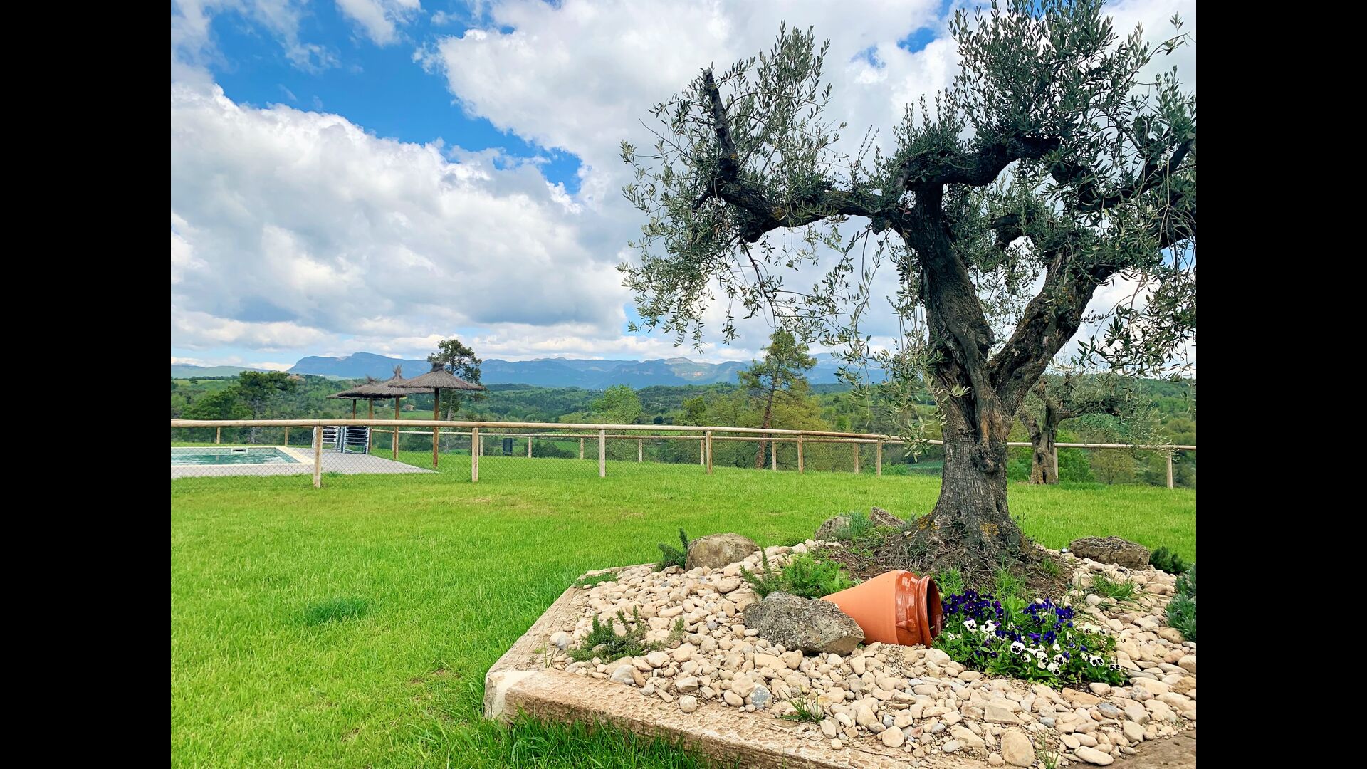 The house is situated on a hill-top with a very nice 360 degree view over the landscape and with the Pyrenees rising in the distance. It is surrounded by a wonderful 1.300 m2 garden, with a big fenced swimming pool of 10 x 4,5 meters at the end of the garden with plenty of sun loungers for relaxation. For the Summer 2021, there will be pergolas by the swimming pool, for the persons who prefer shade. In addition, under the big Oak tree is also a nice place to find shade.