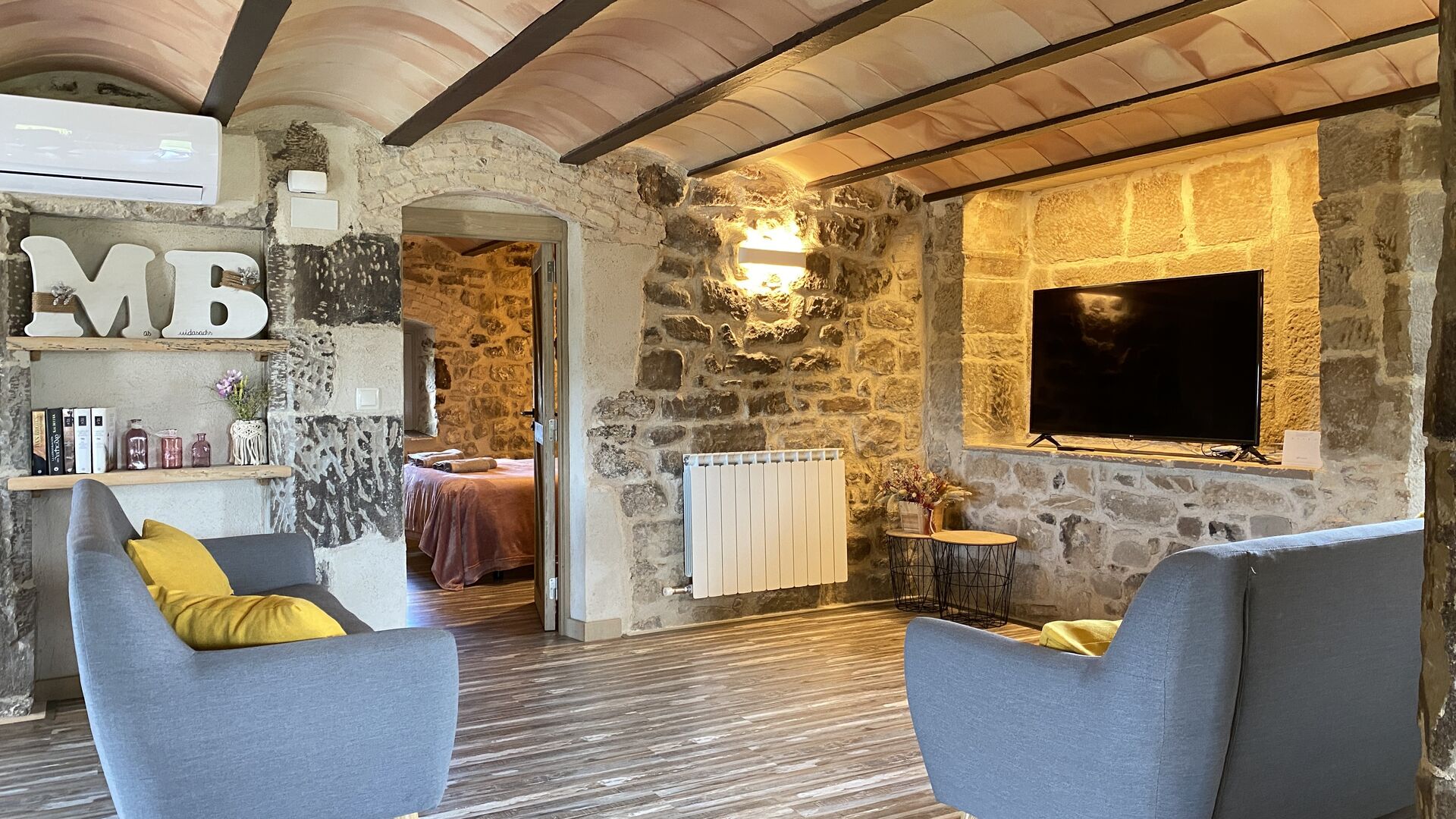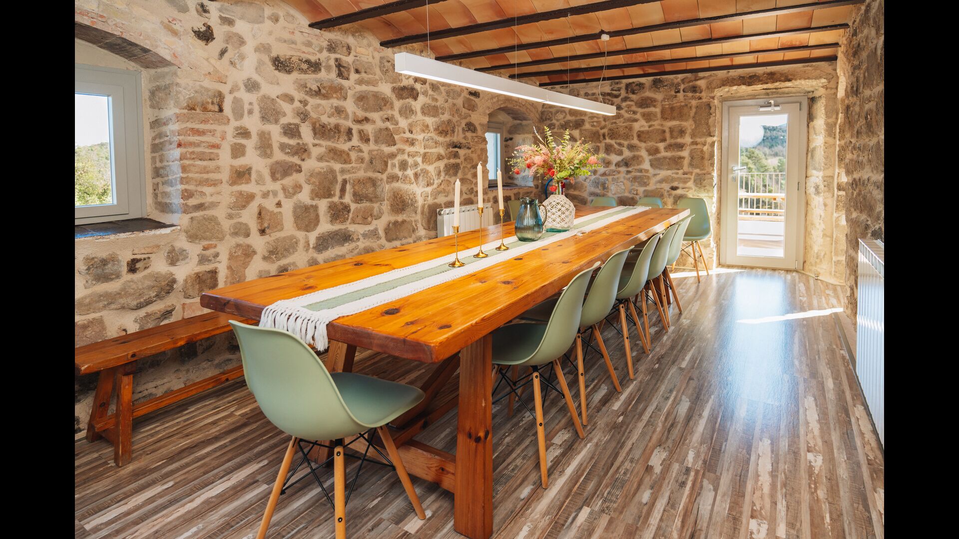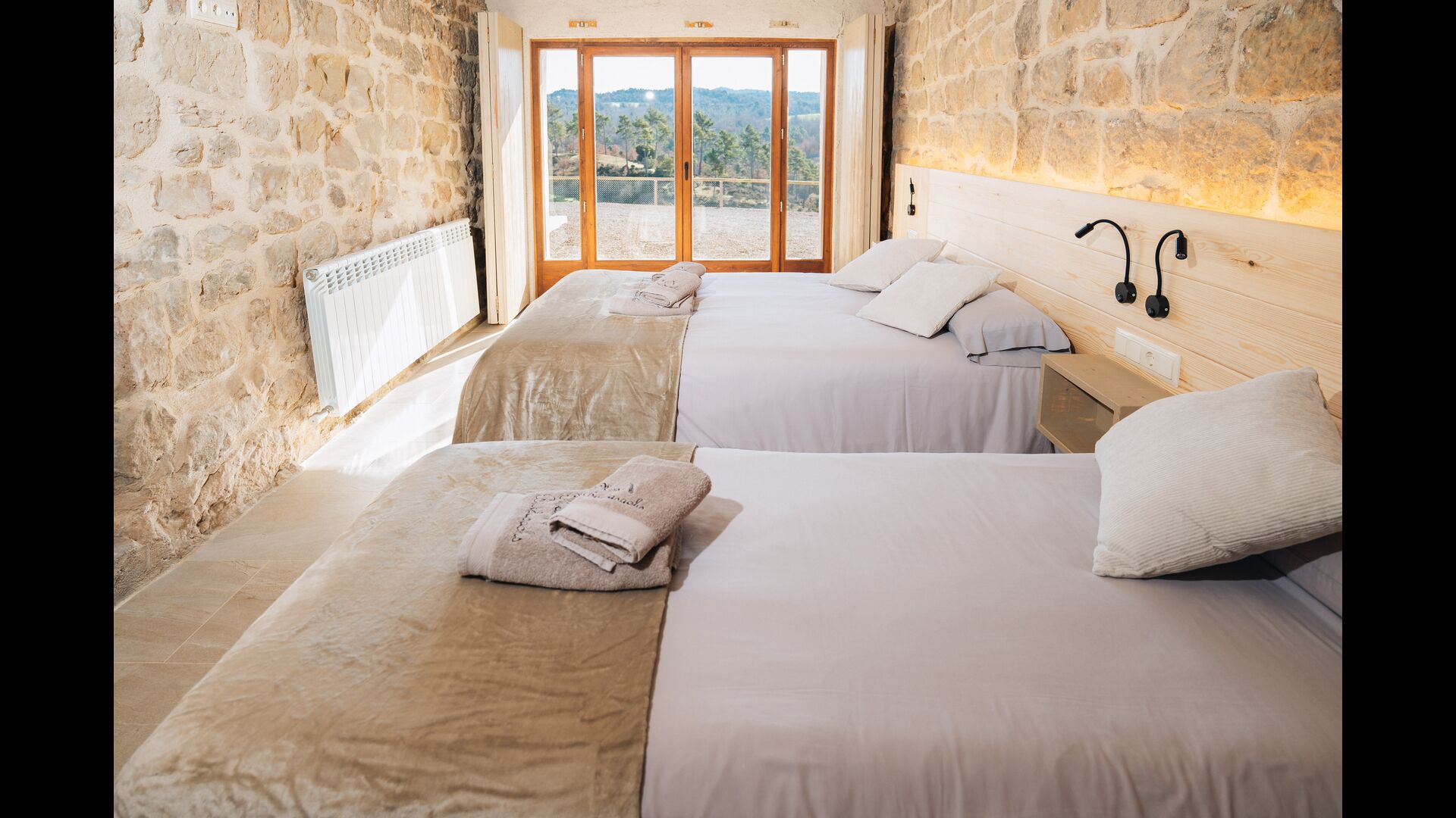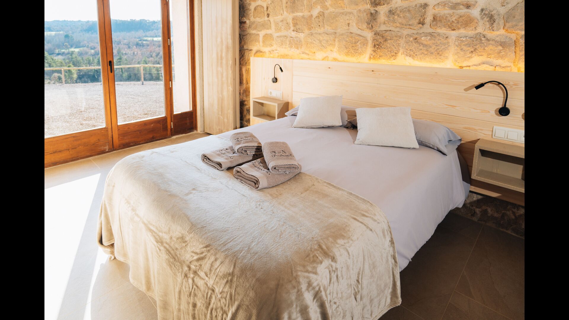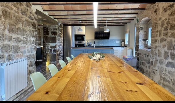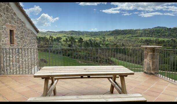 If you like views and enjoy the relaxing atmosphere only accompanied by the birds and occasionally the bells of the cows on the surrounding fields, Masia Busquests would be an excellent choice. The house has 6 bedrooms and sleeps up to 18 persons.