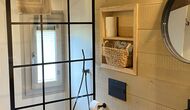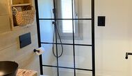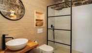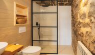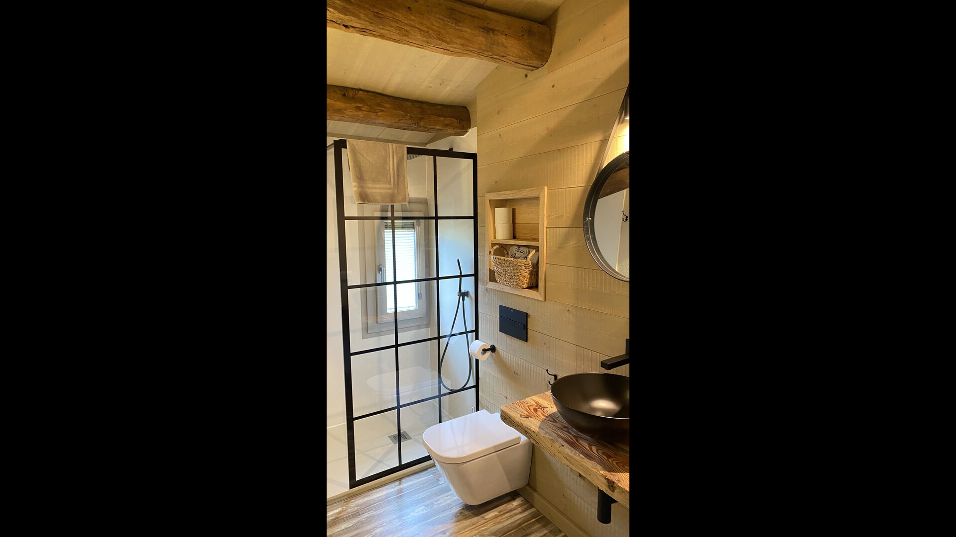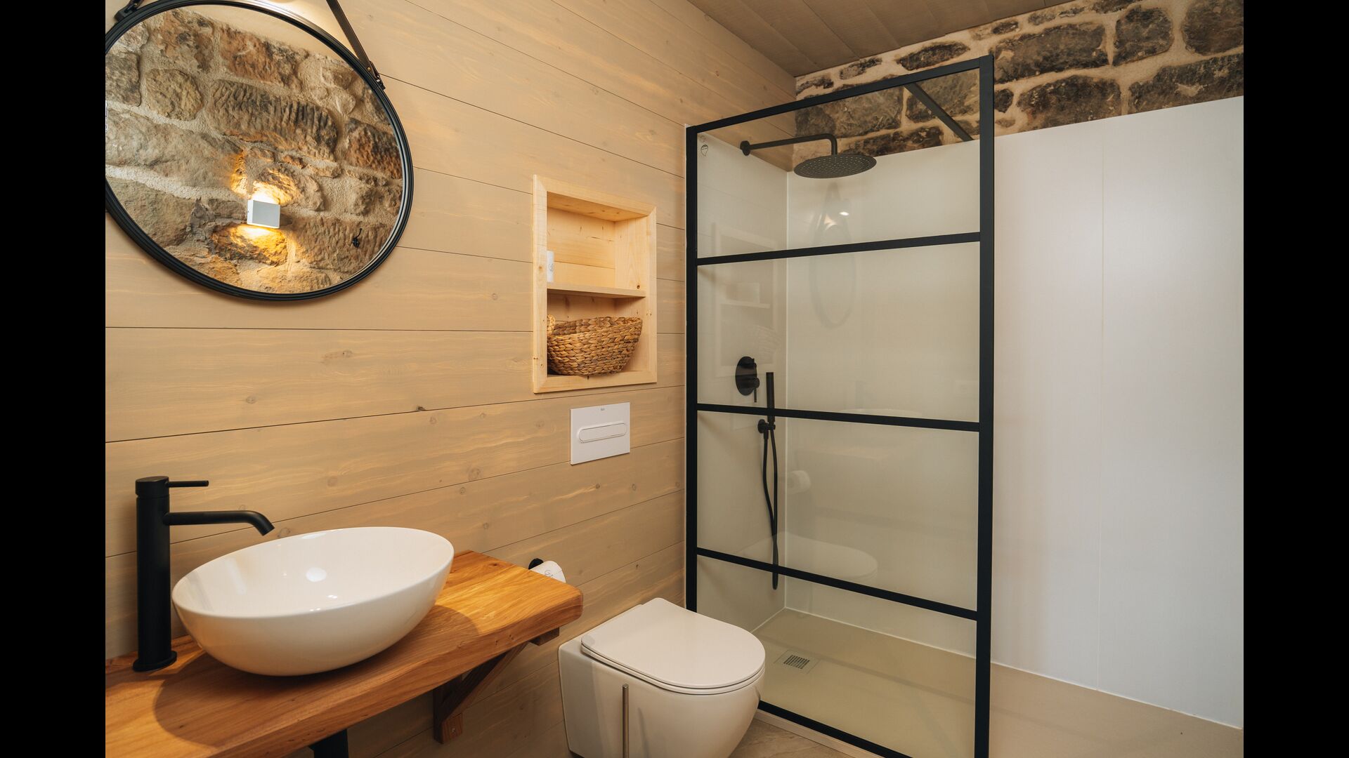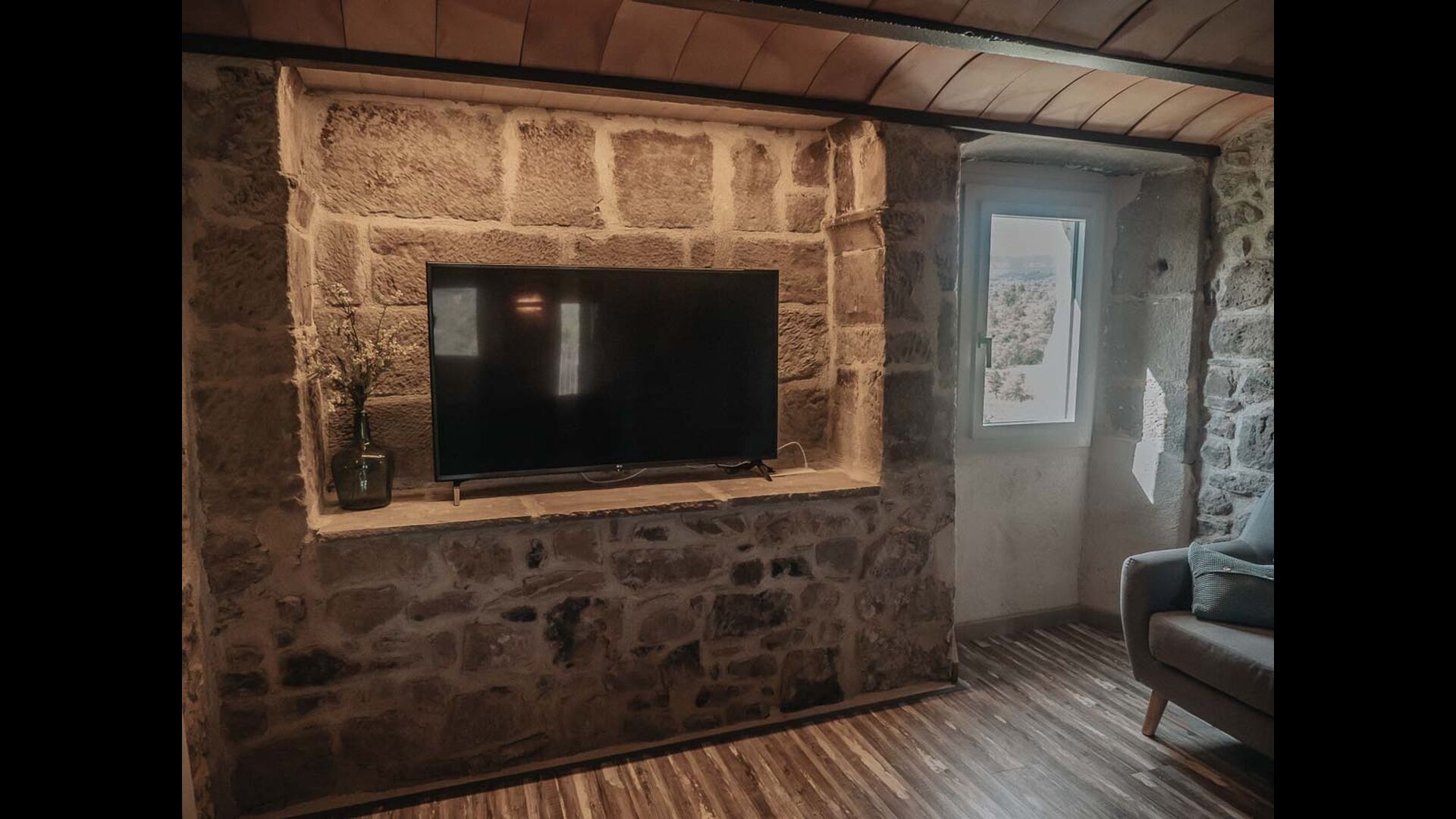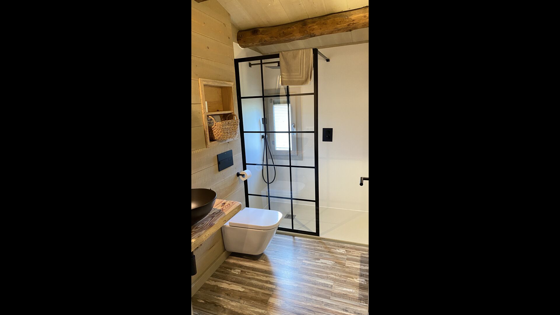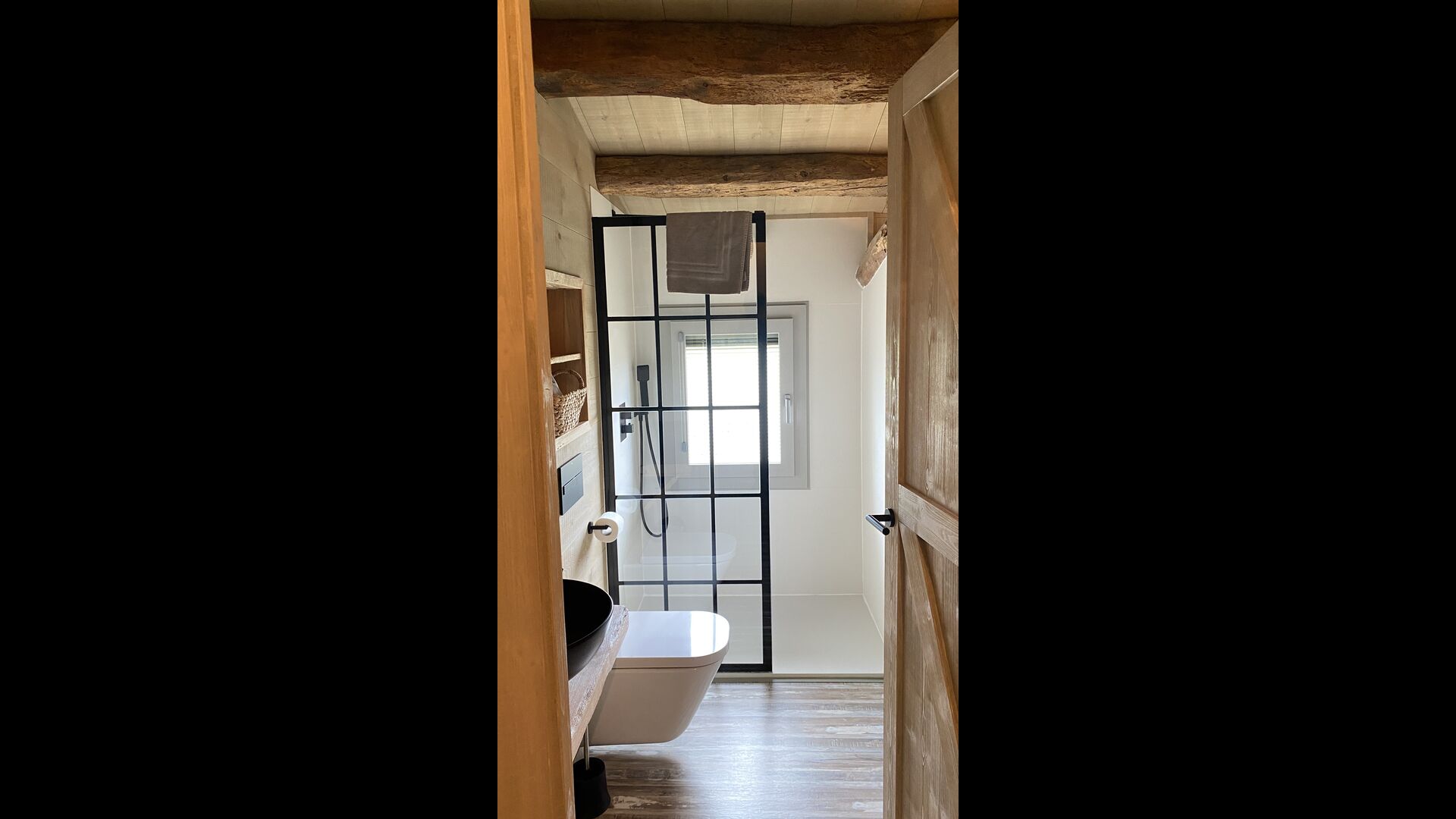 On the first floor, there is the beautifully decorated dining room and the open kitchen. The kitchen is very well-equipped (stove and hotplates, Fridge, Freezer, Nespresso, Toaster, Microwave, Juice squeezer etc.) Very conveniently, this is also connected to an exterior terrace, so you can eat inside or outside as you prefer. On this floor, there are also two big double bedrooms with their own bathrooms and TV. One has space for one extra bed if necessary.