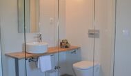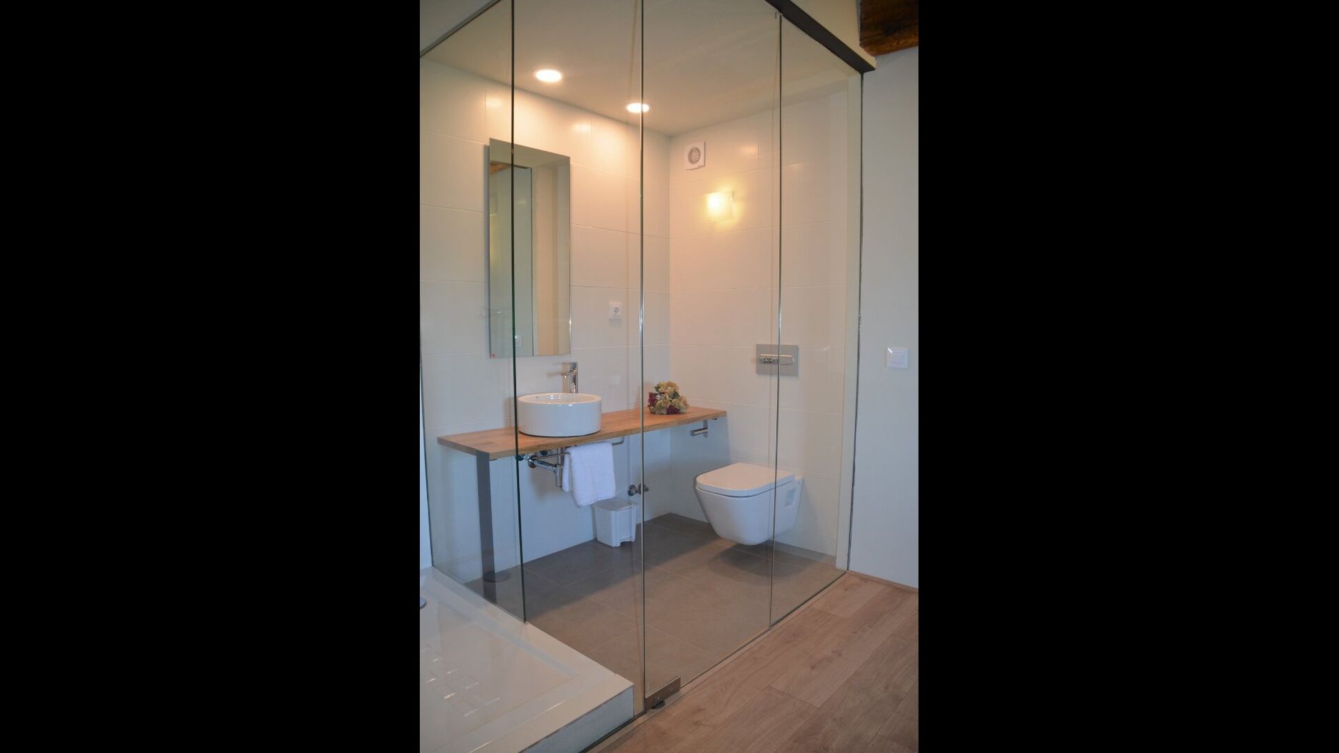 On the ground floor is also the previously mentioned summer kitchen. From here there is view and direct access to the pool and terrace. It is equipped with washing machine, stove, hotplates, dishwasher and similar facilities. On the same flooris also a double room with two beds and bathroom en suite, which is adapted for walking-impaired.