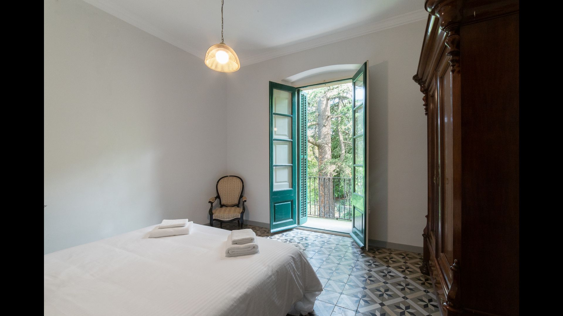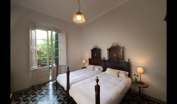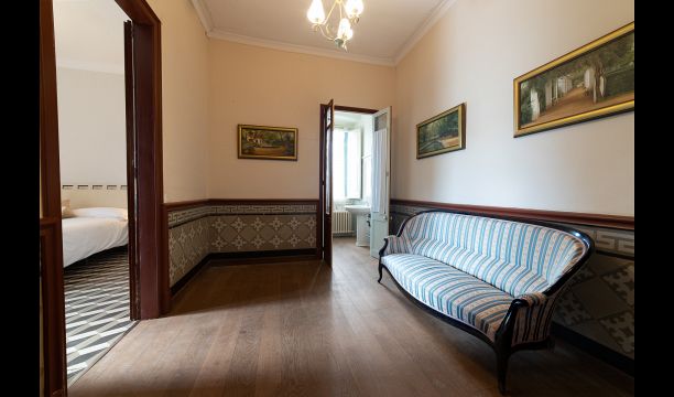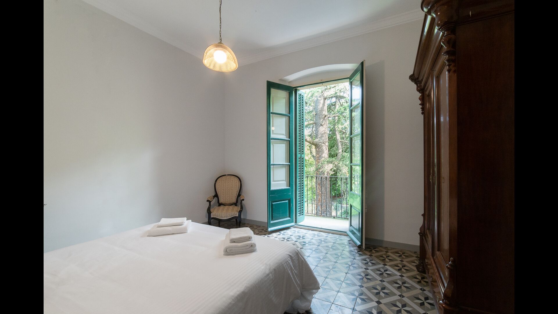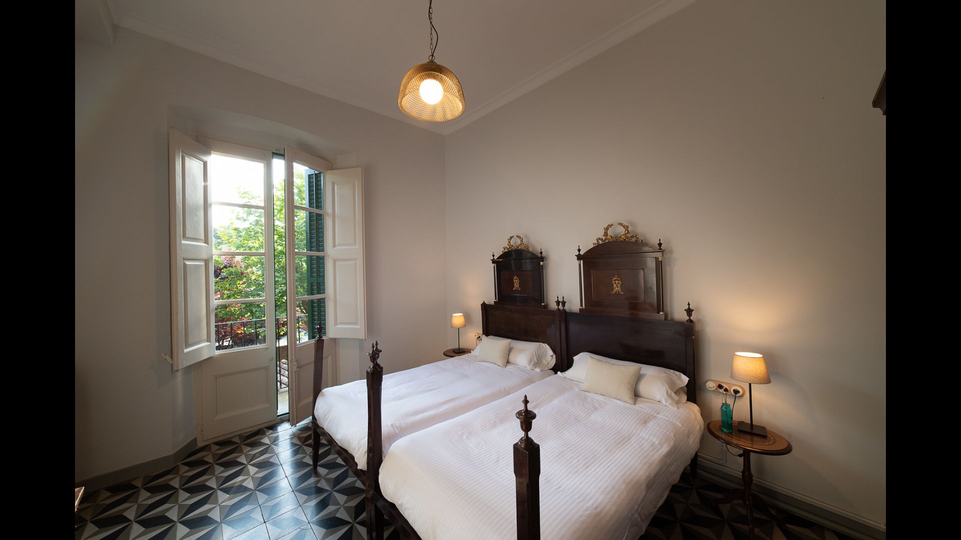 There are 11 bedrooms spread out on the two floors, which are the first and second floor, as the ground floor is unused. All of them are spacious double rooms. All the rooms are similar to smaller suites due to their large sizes. The decoration is stylish and classical, and most of the rooms have balconies. Two of the rooms are children's rooms. Seven of the bedrooms have en suite bathrooms, while the rest share two spacious bathrooms.