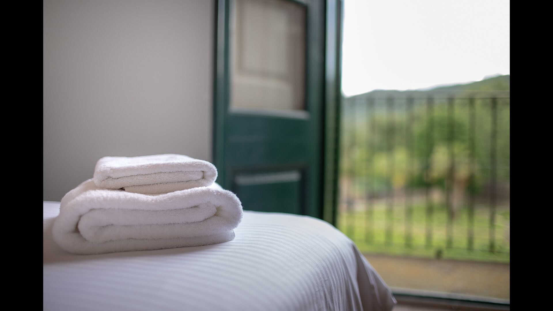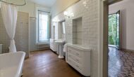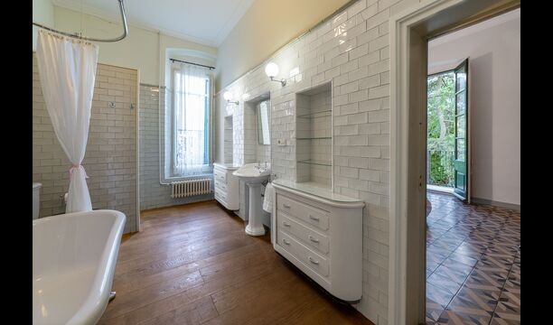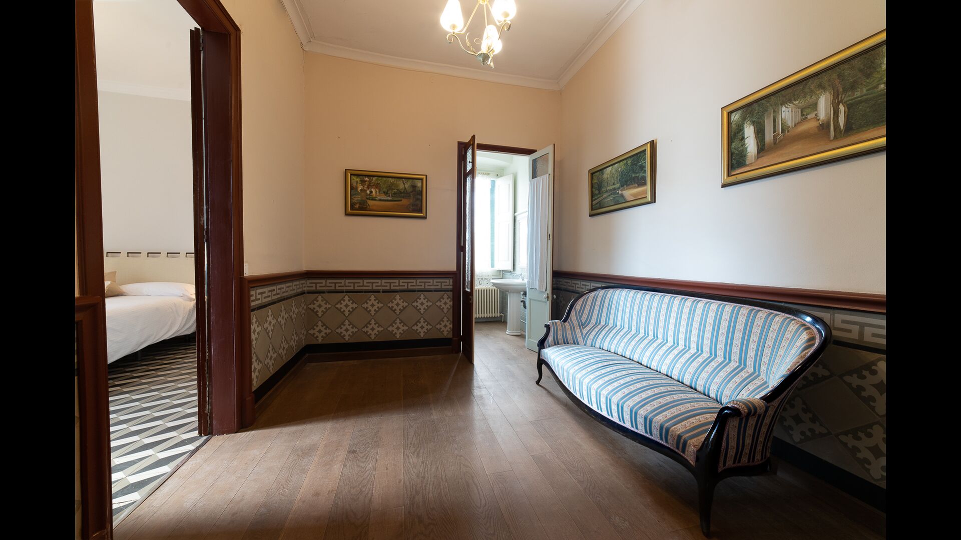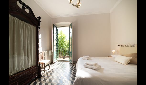 There are 11 bedrooms spread out on the two floors, which are the first and second floor, as the ground floor is unused. All of them are spacious double rooms. All the rooms are similar to smaller suites due to their large sizes. The decoration is stylish and classical, and most of the rooms have balconies. Two of the rooms are children's rooms. Seven of the bedrooms have en suite bathrooms, while the rest share two spacious bathrooms.