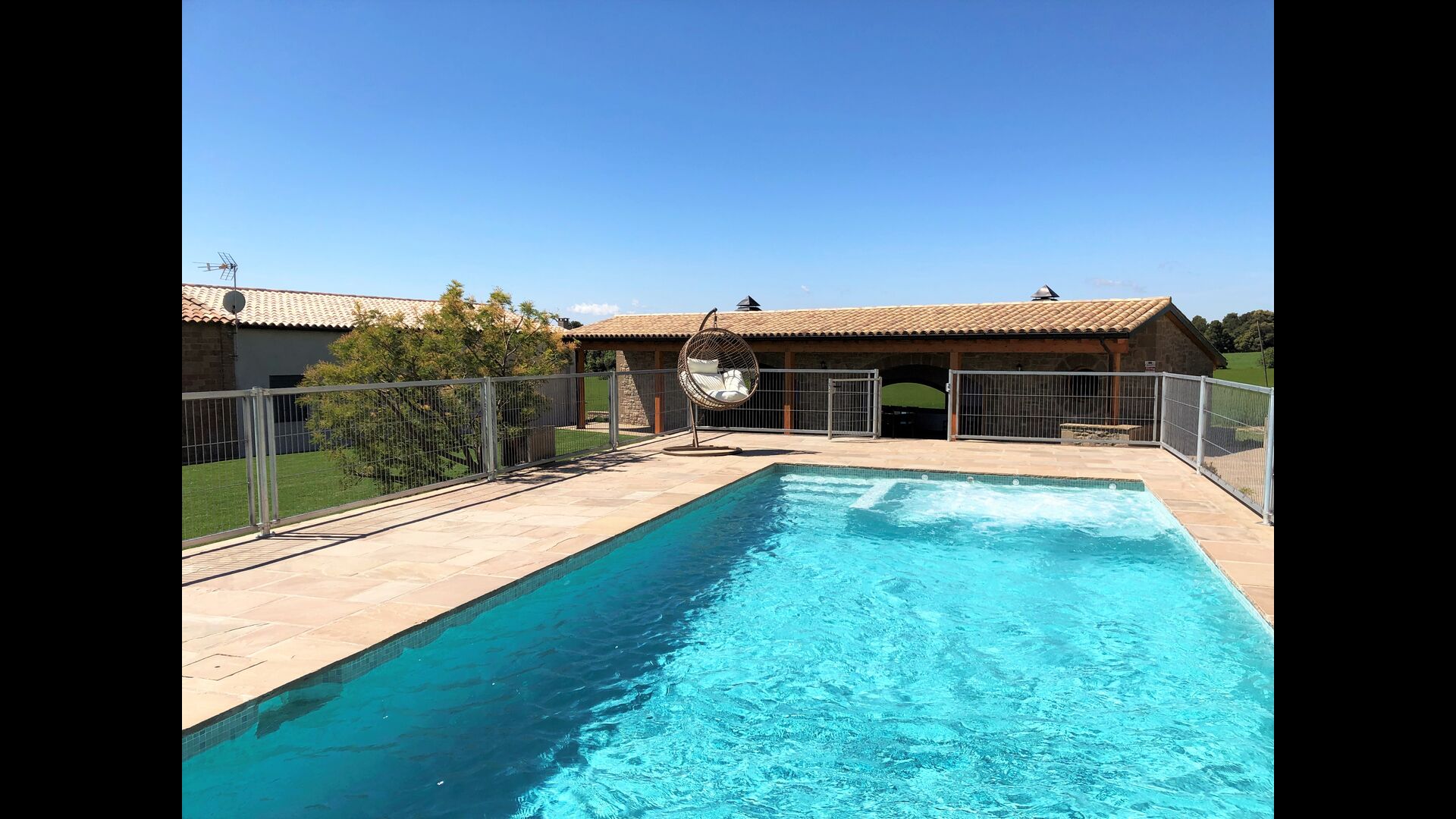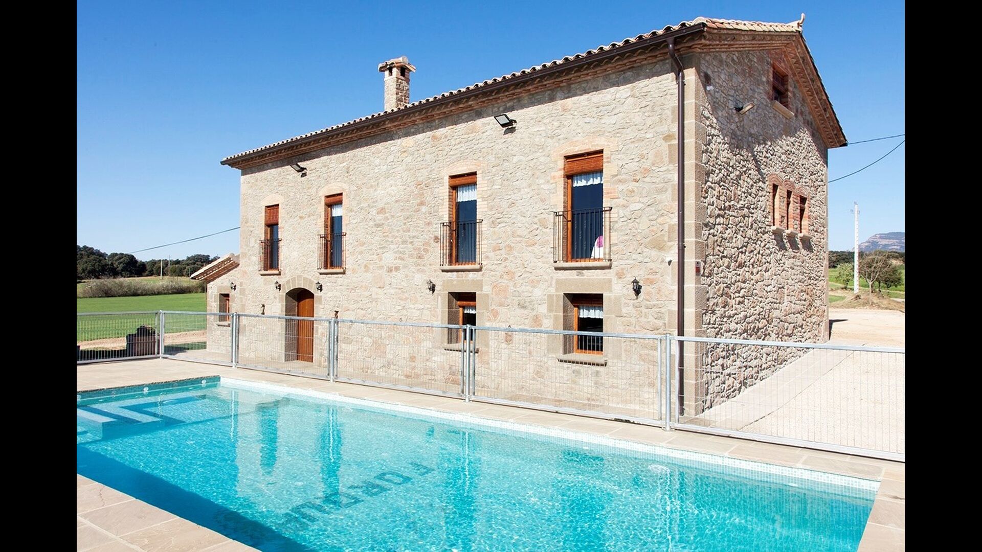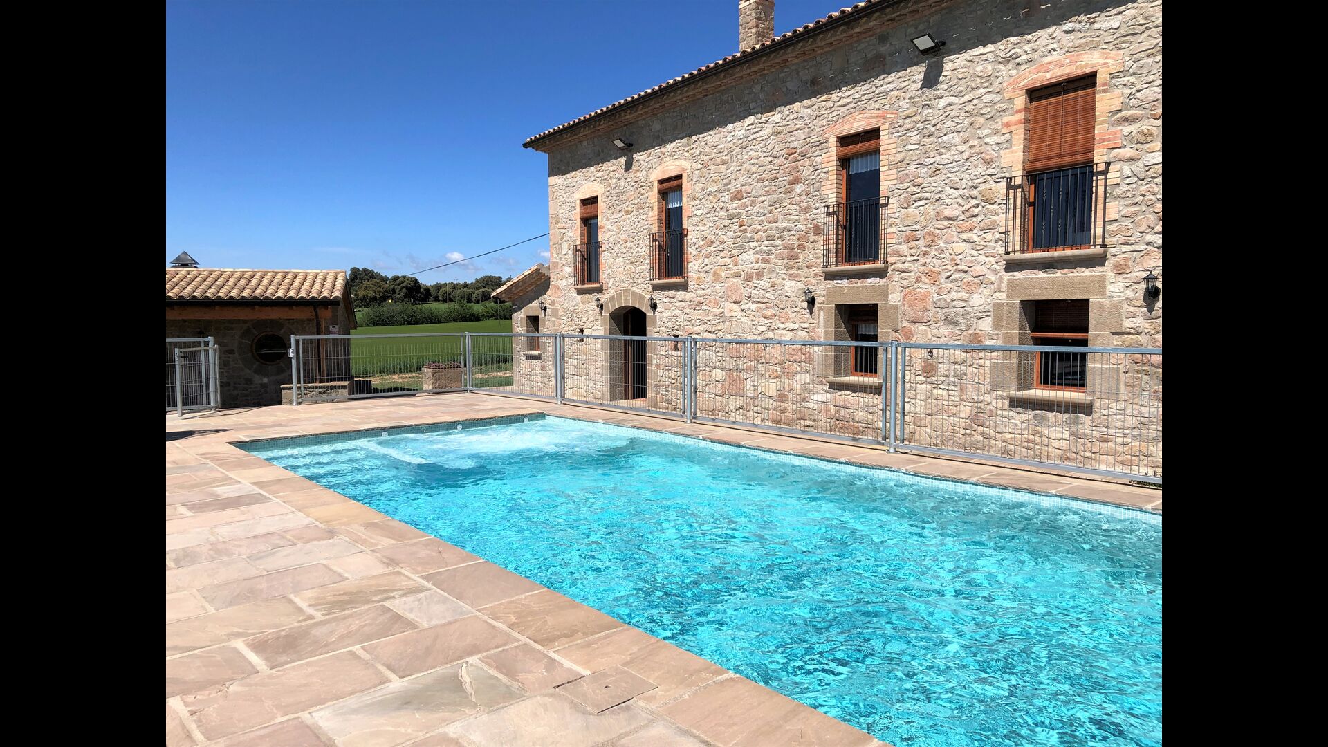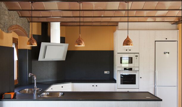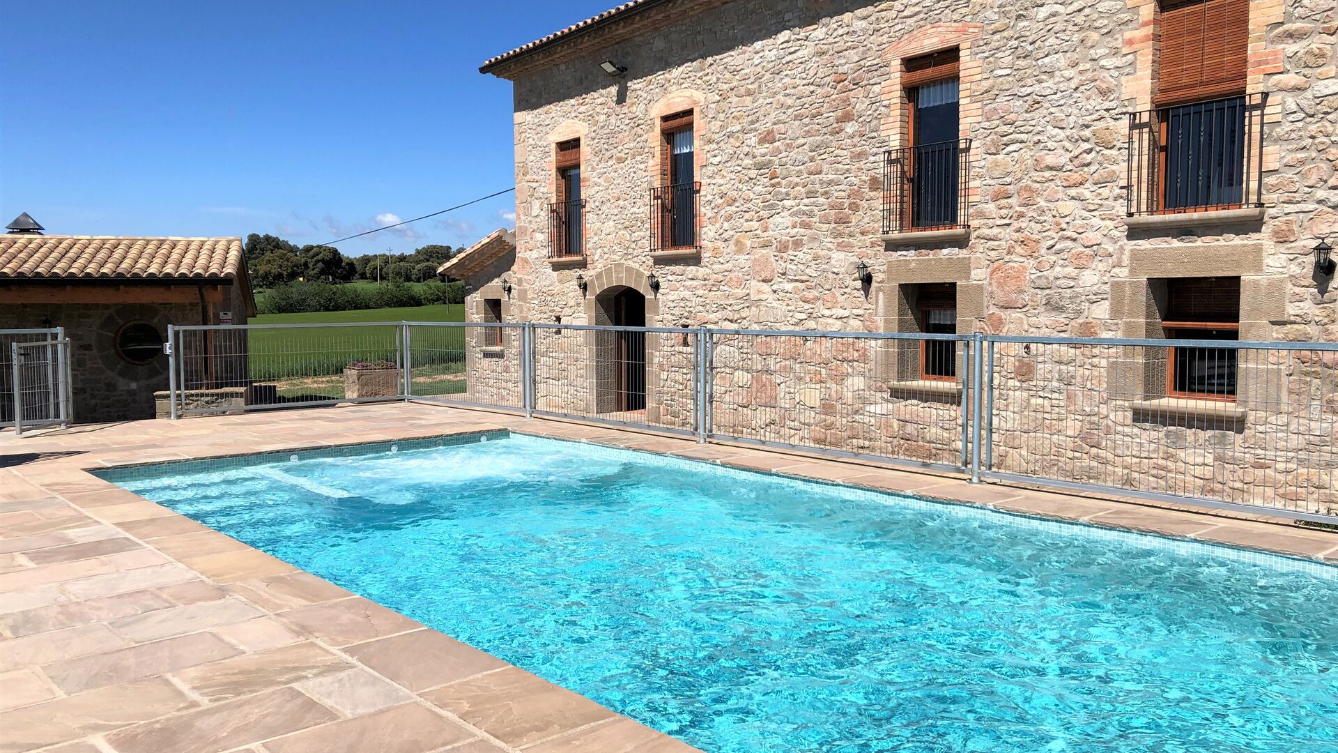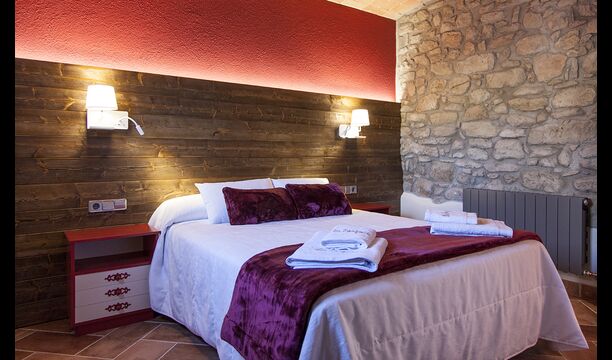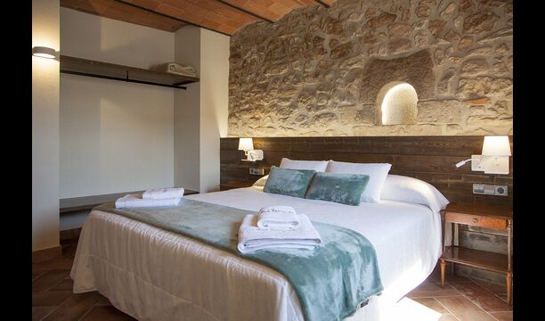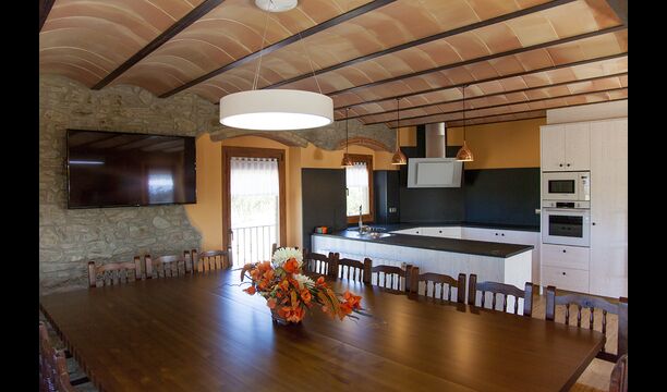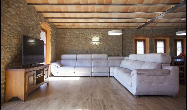 Masia la Forqua is a brilliant holiday home situated in beautiful, tranquil landscape centrally in Catalonia. Perfectly arranged, you will have your own little holiday paradise with the 3 buildings surrounding the terrace and the huge pool area (with Jacuzzi function) in the middle. This creates a fantastic holiday atmosphere, with the outdoor area working very well as a gathering place for the full group.