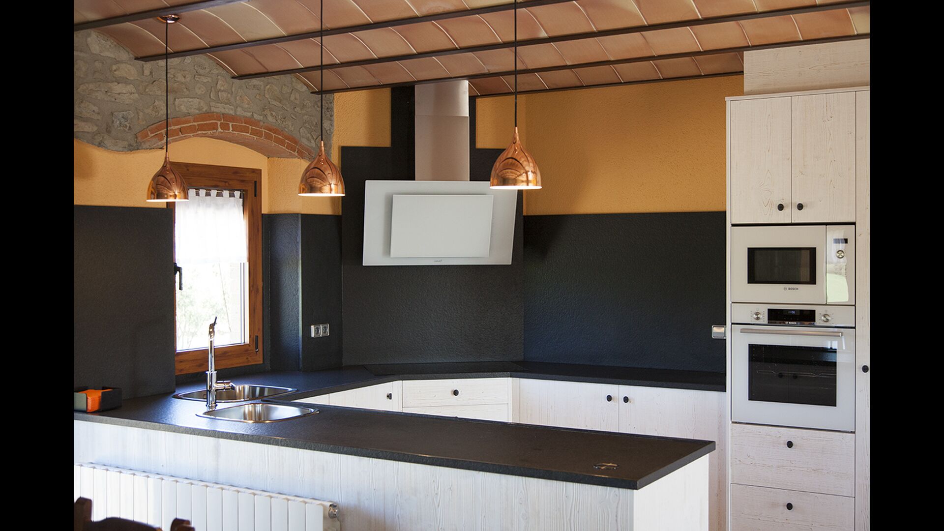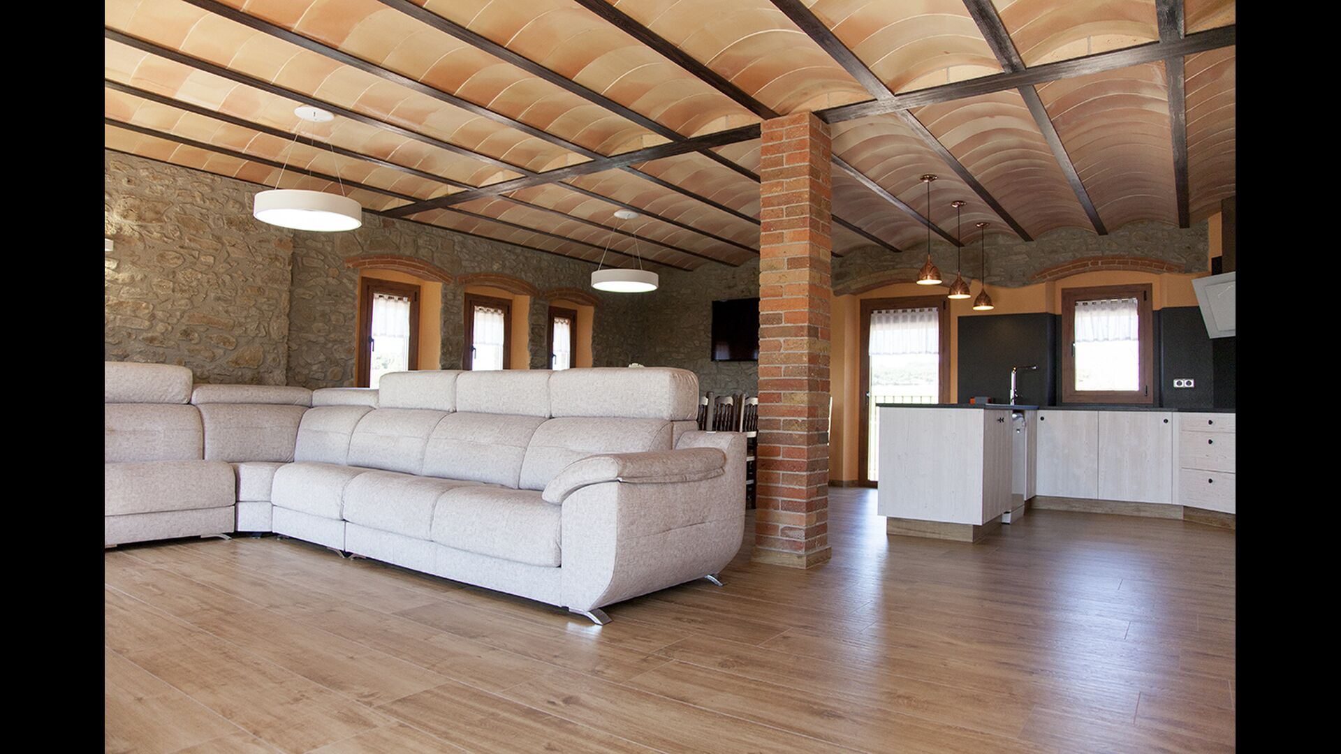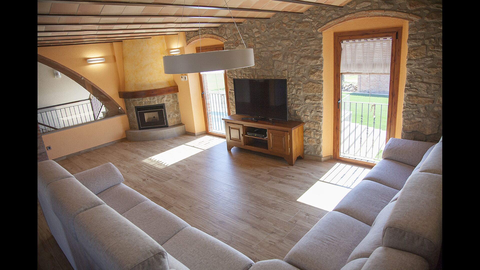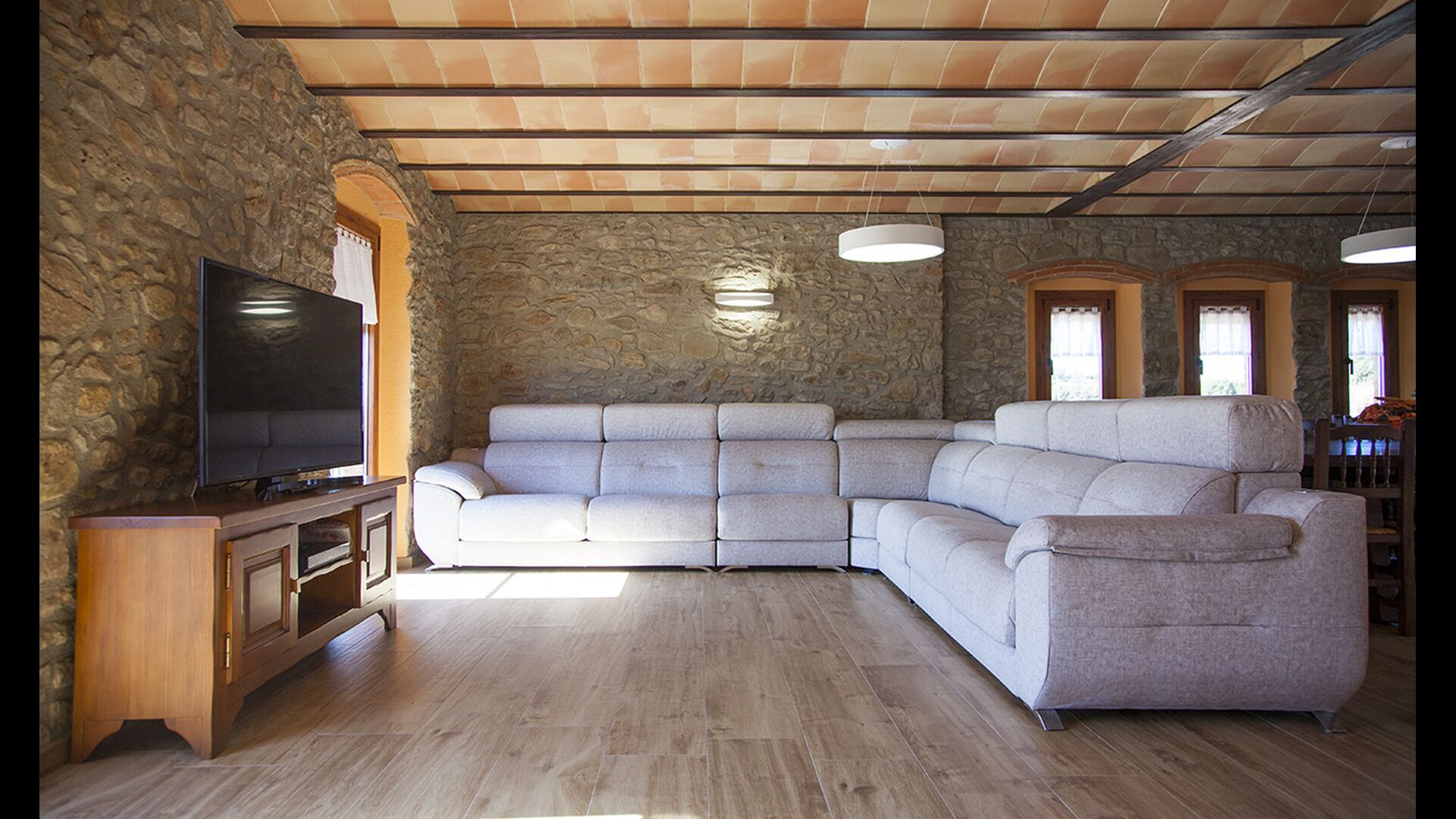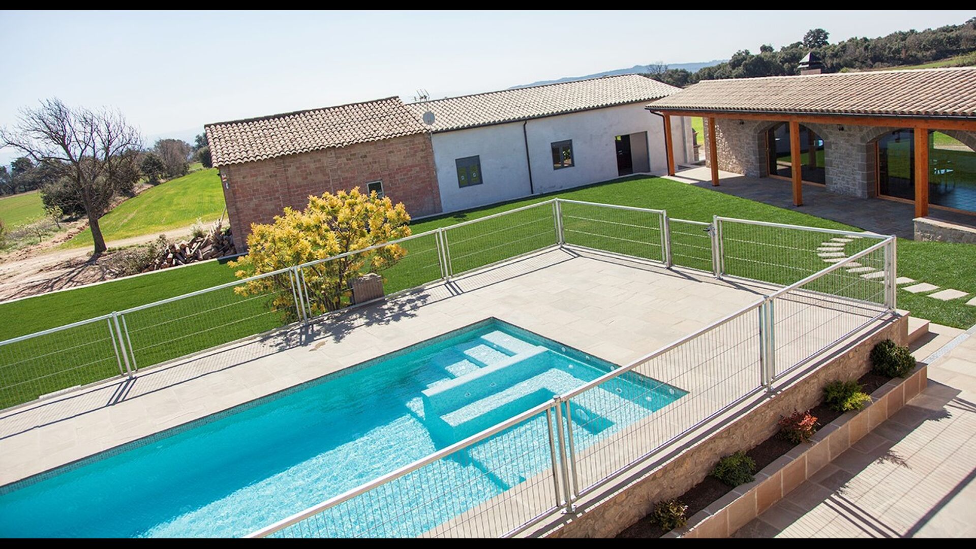 Masia la Forqua is a brilliant holiday home situated in beautiful, tranquil landscape centrally in Catalonia. Perfectly arranged, you will have your own little holiday paradise with the 3 buildings surrounding the terrace and the huge pool area (with Jacuzzi function) in the middle. This creates a fantastic holiday atmosphere, with the outdoor area working very well as a gathering place for the full group.