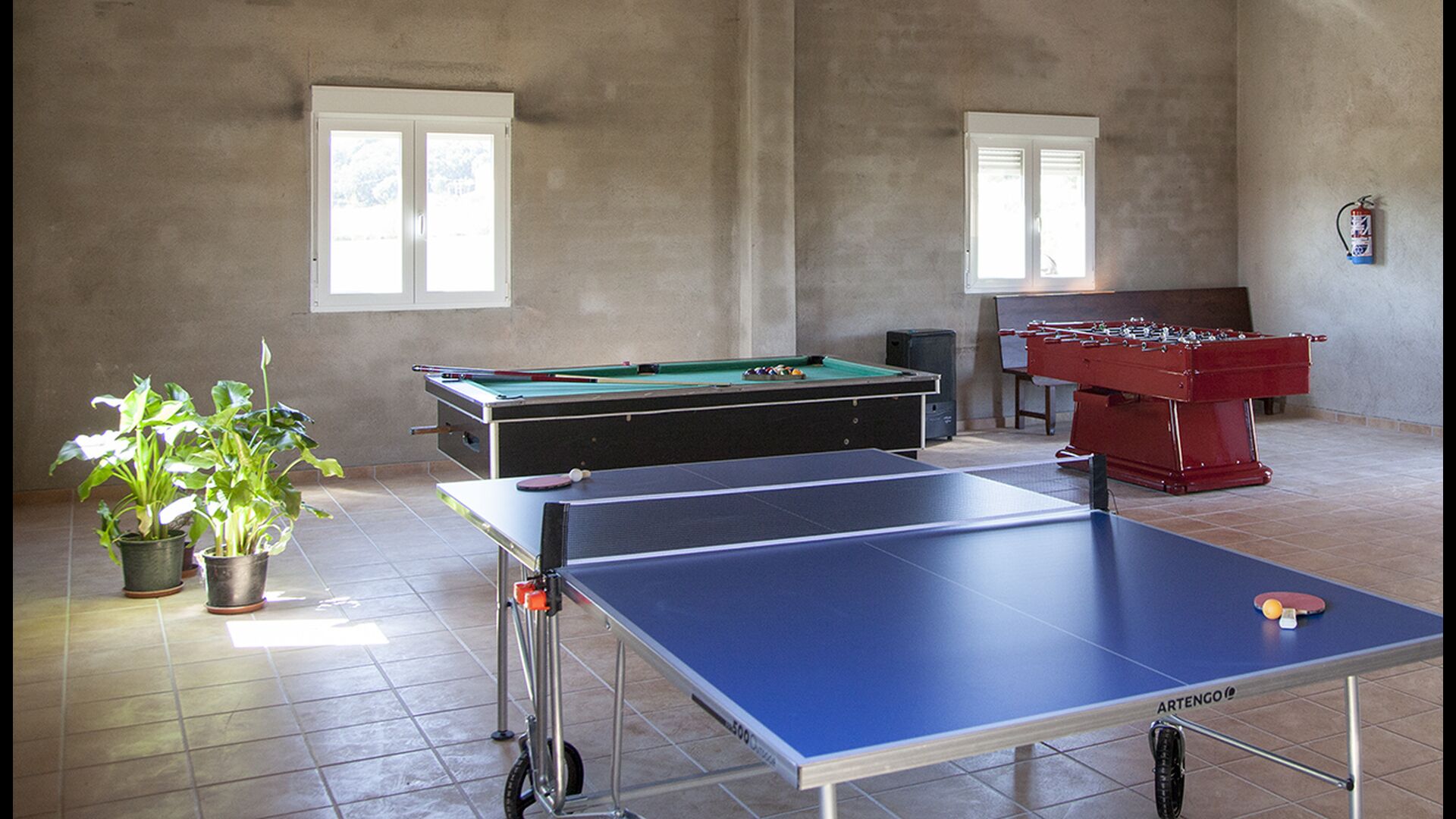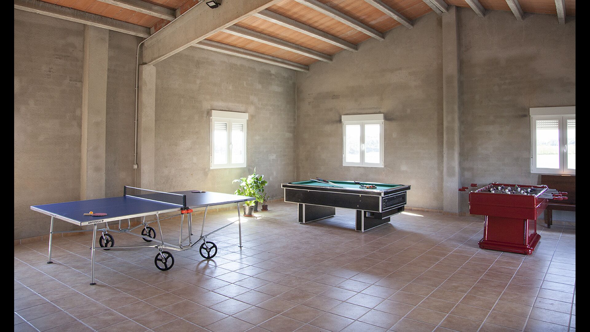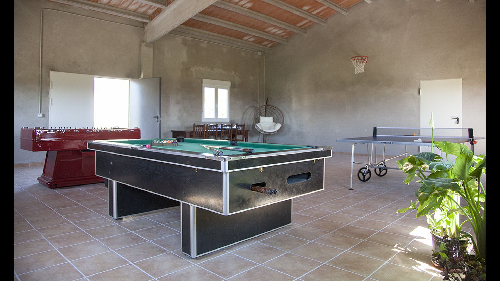 The games hall is a large, very spacious, former barn that has been converted into a huge games hall with table tennis, a pool table, table football as well as a basketball net. A lot of fun is to be had here, and with a 400 m2 garden, a great swimming pool and a games hall, if you have any children in the group, they are bound to have an amazing time.