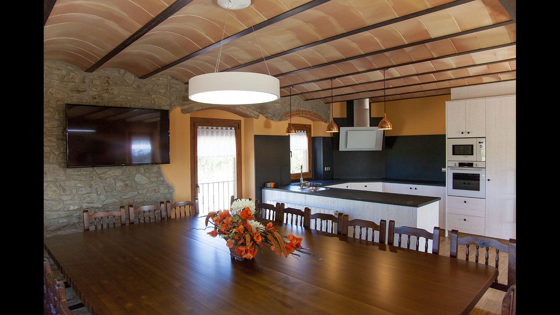 The 3 buildings of Masia la Forqua are the main building (with all the bedrooms), the games hall & lastly the dining hall.