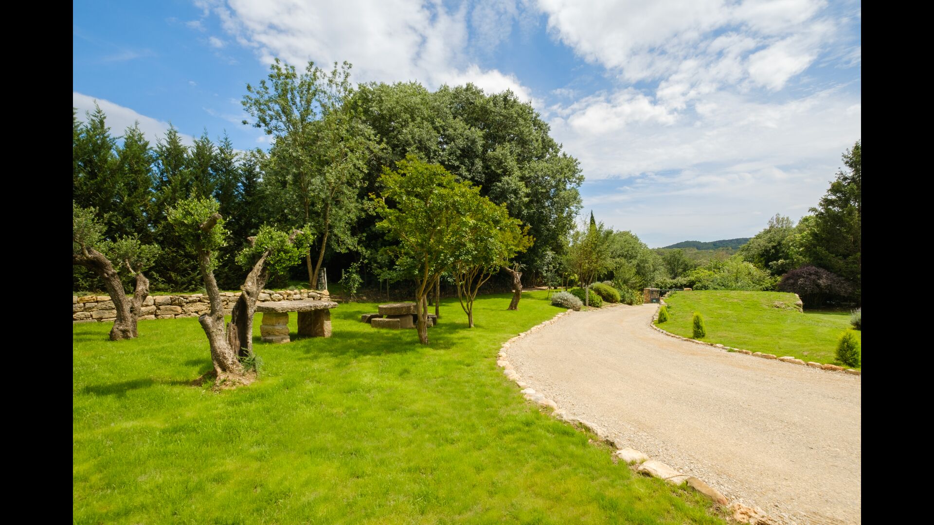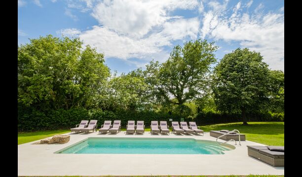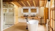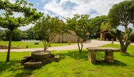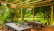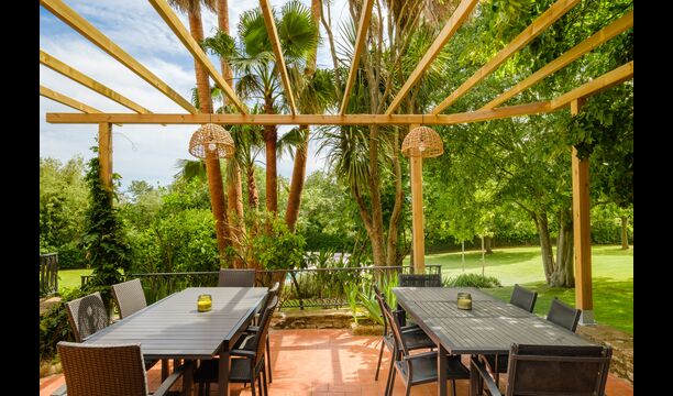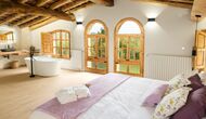 The rustic and charming house is advantageously placed on a small rise in the property’s garden. It has 8 rooms; 5 of which are double bedrooms, and 3 of them being quadruple bedrooms (each of the 3 having a 150cm sofa bed). 6 of the 8 rooms have ensuite bathrooms and the remaining 2 rooms share a bathroom.
