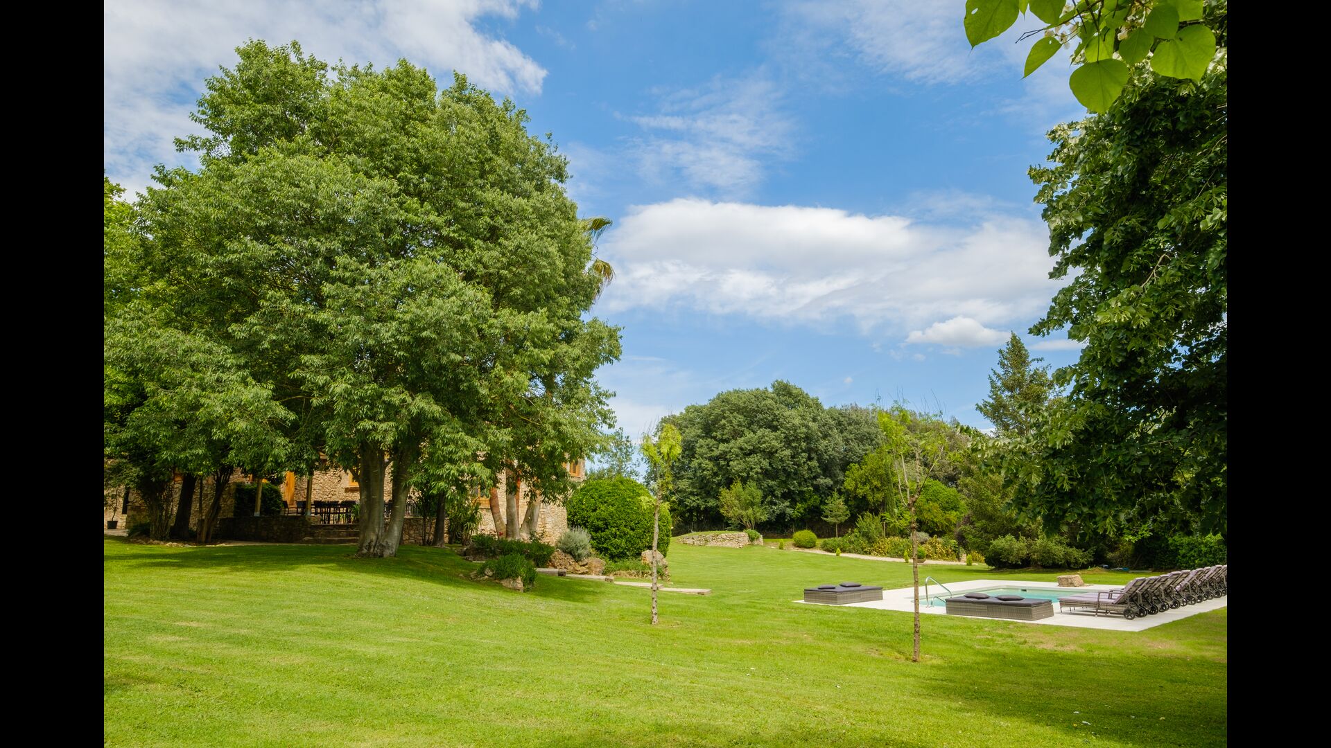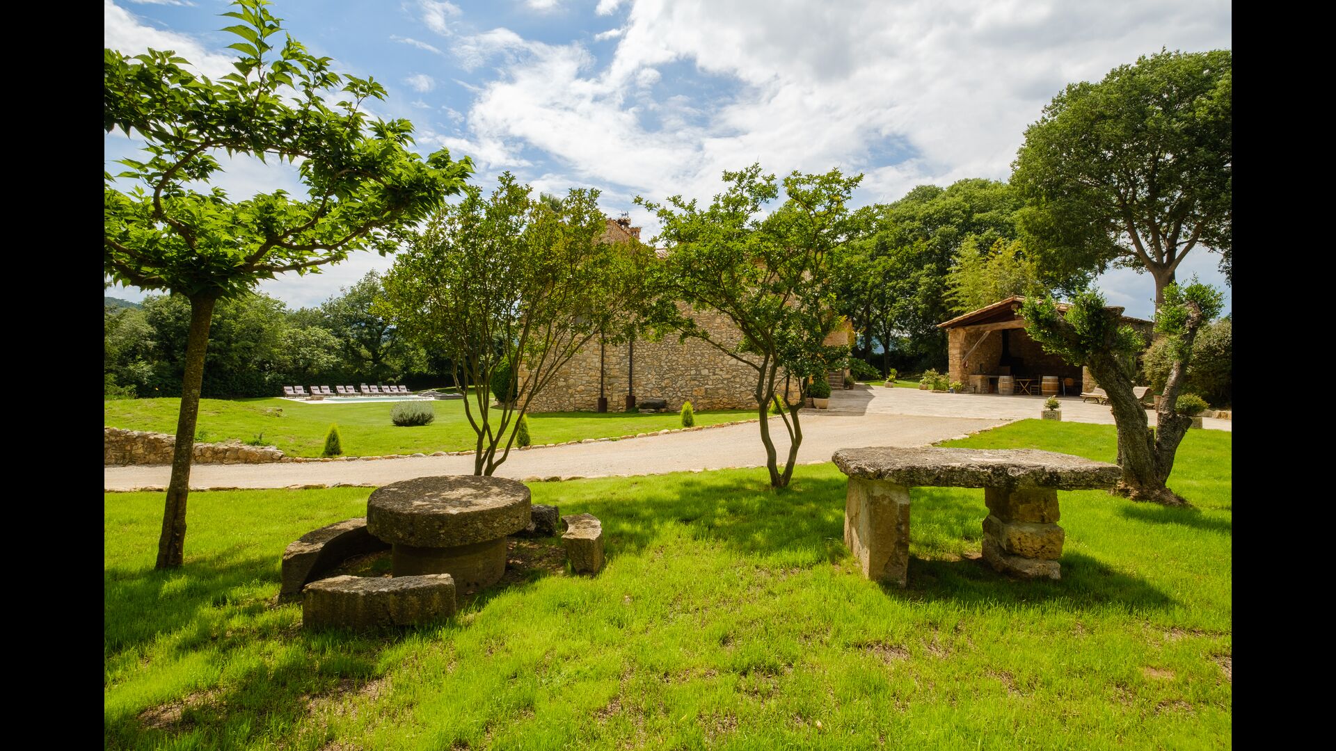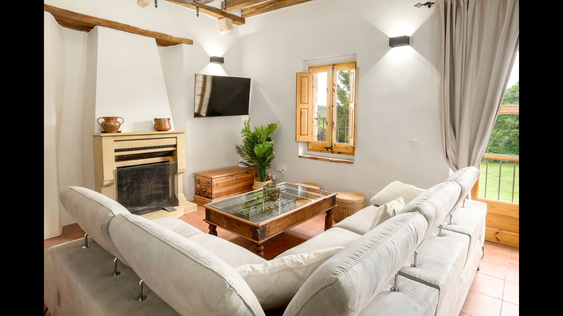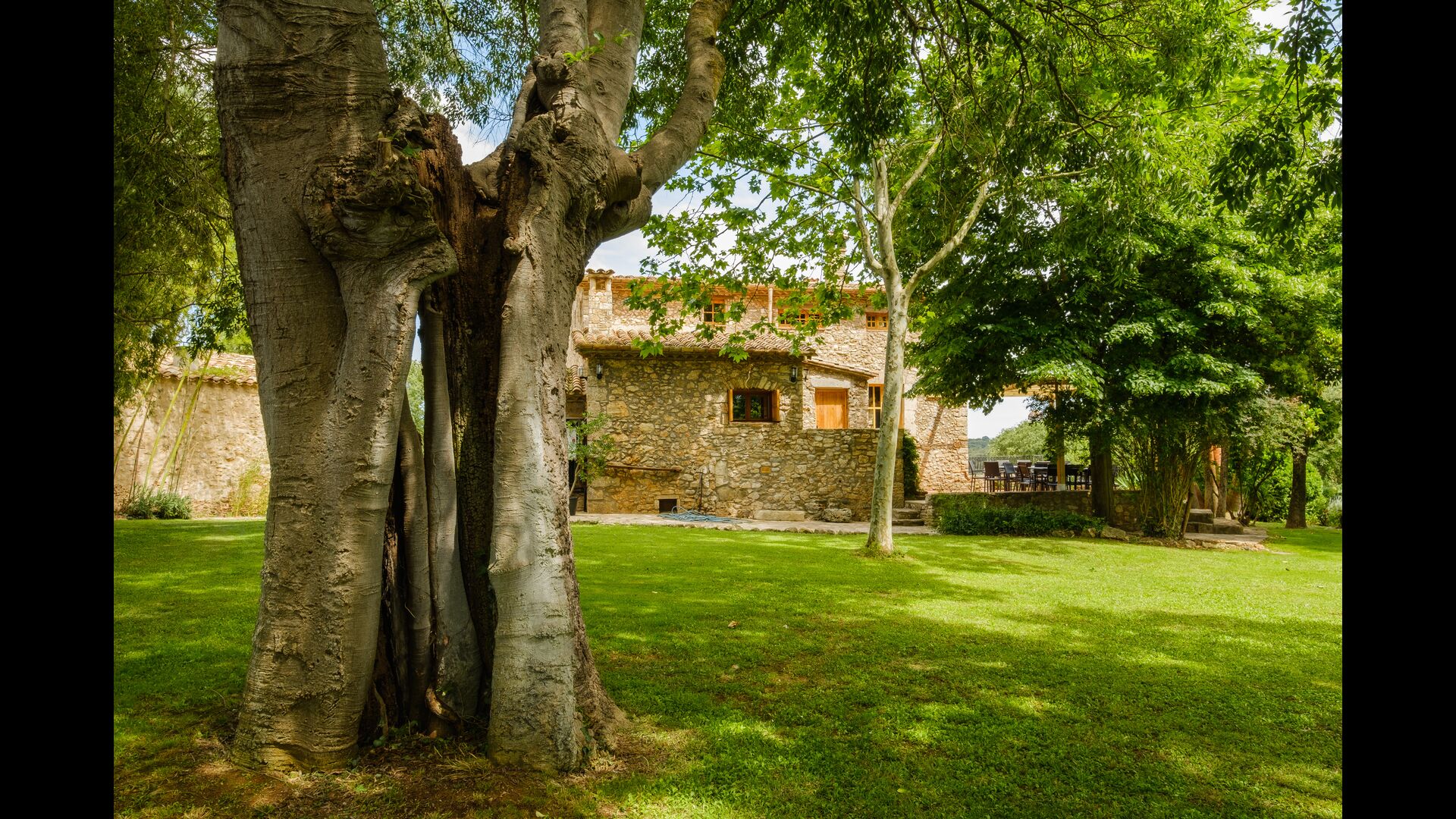 Cal Cubis has a wonderful, 10.000m2 garden – filled with greenery of all kinds, and with plenty of space to various activities! Play tag or hide and seek with the kids in the vast green space – or relax by the wonderful pool, coming with loungers and surrounded by exotic flowers and palm trees! The garden has dedicated outdoor dining areas (covered terraces with tables and chairs), a fireplace, and great views from the terraces! Enjoy outdoor meals and relaxation alone or with friends and family – few things compare to laying in the loungers after a dip in the pool as the sun sets, warming your body with the last rays of the sun and drinking an exquisite Catalan wine.