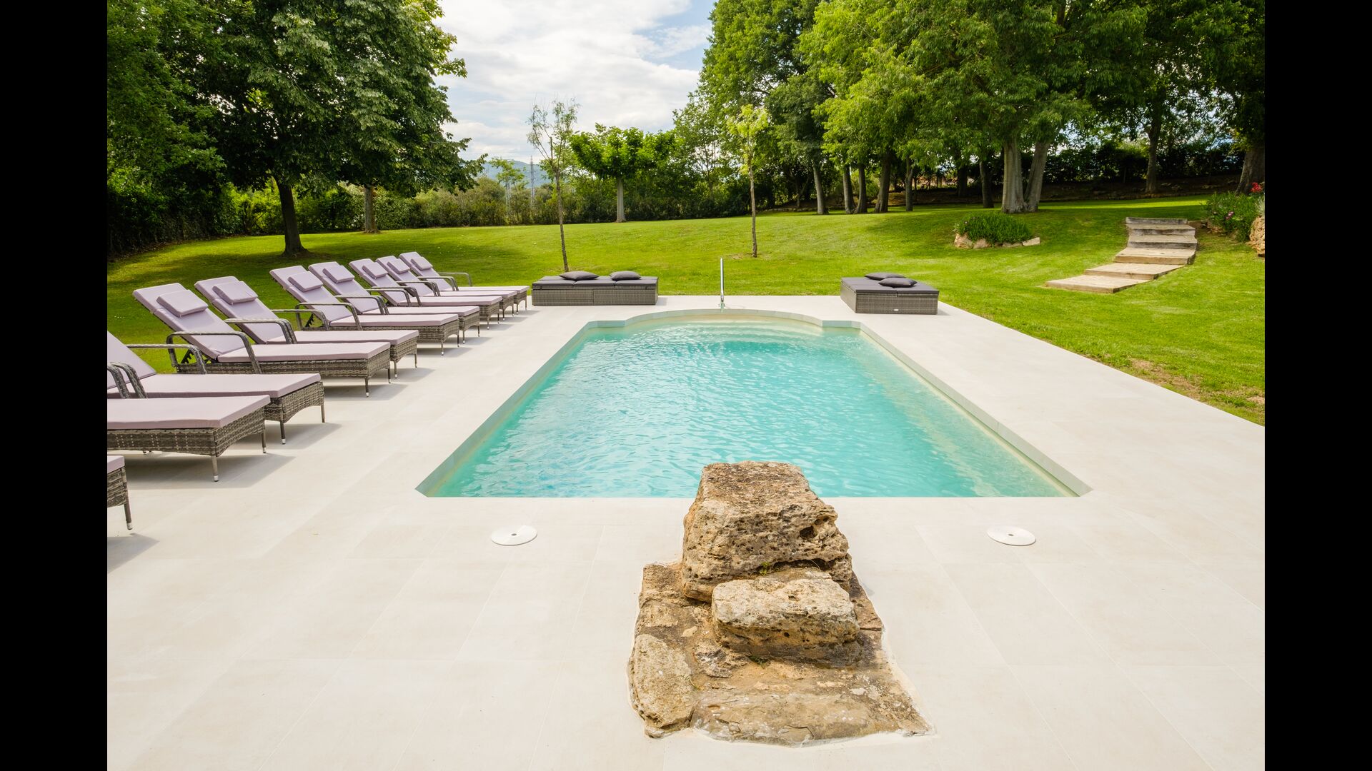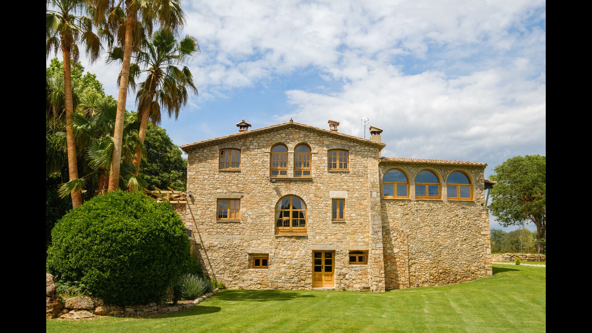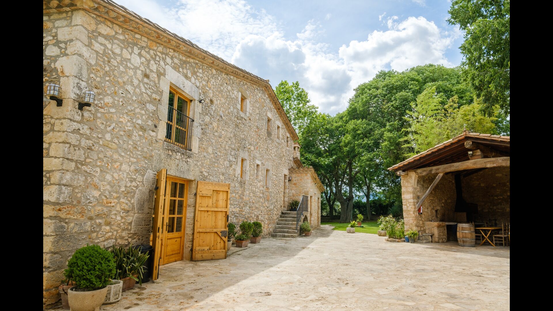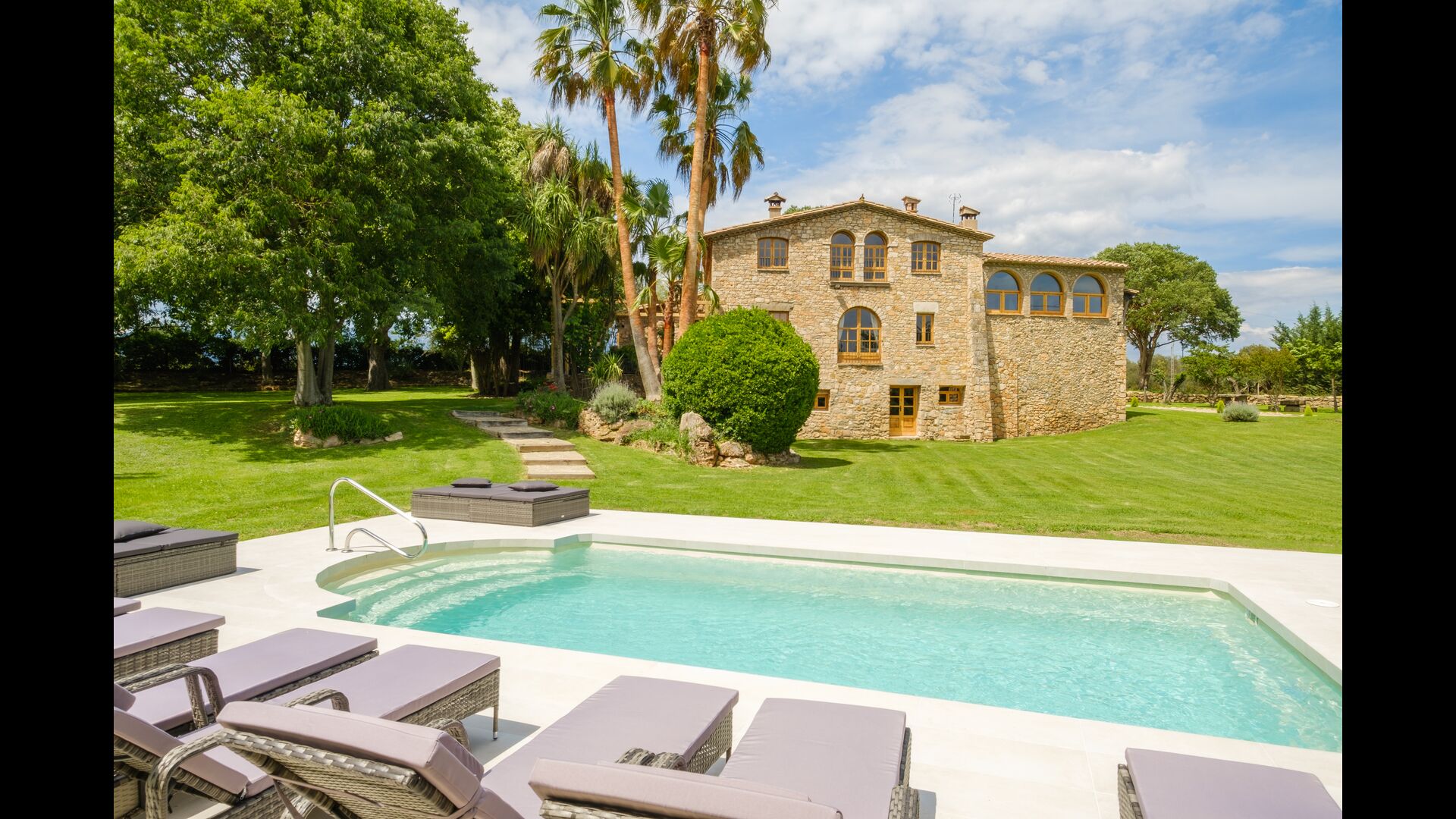 Cal Cubis has a wonderful, 10.000m2 garden – filled with greenery of all kinds, and with plenty of space to various activities! Play tag or hide and seek with the kids in the vast green space – or relax by the wonderful pool, coming with loungers and surrounded by exotic flowers and palm trees! The garden has dedicated outdoor dining areas (covered terraces with tables and chairs), a fireplace, and great views from the terraces! Enjoy outdoor meals and relaxation alone or with friends and family – few things compare to laying in the loungers after a dip in the pool as the sun sets, warming your body with the last rays of the sun and drinking an exquisite Catalan wine.