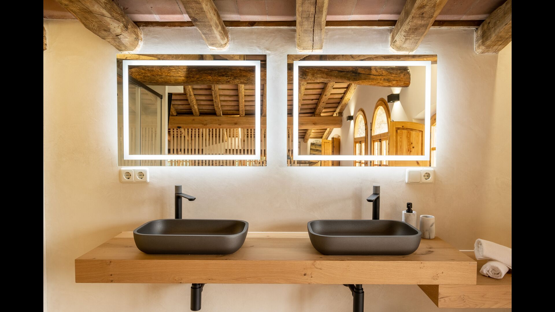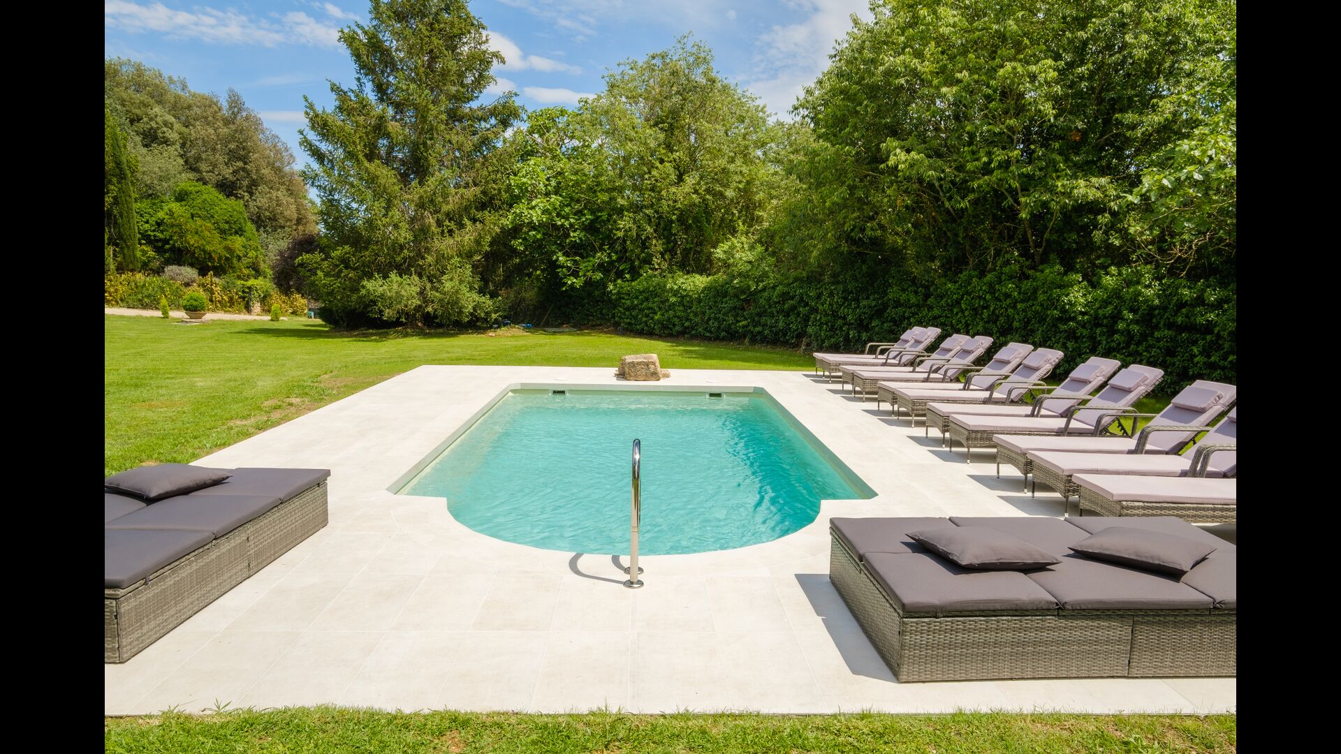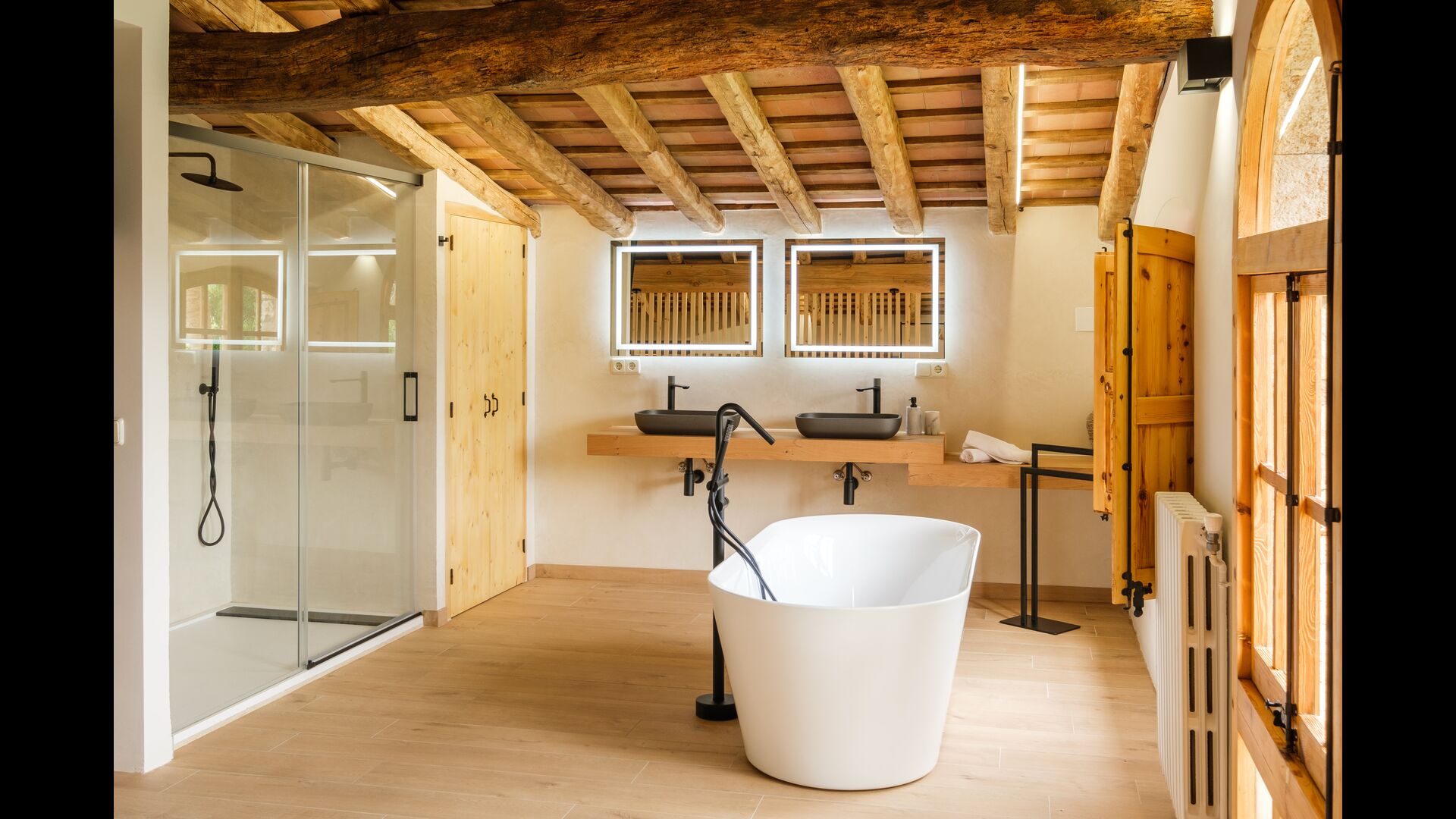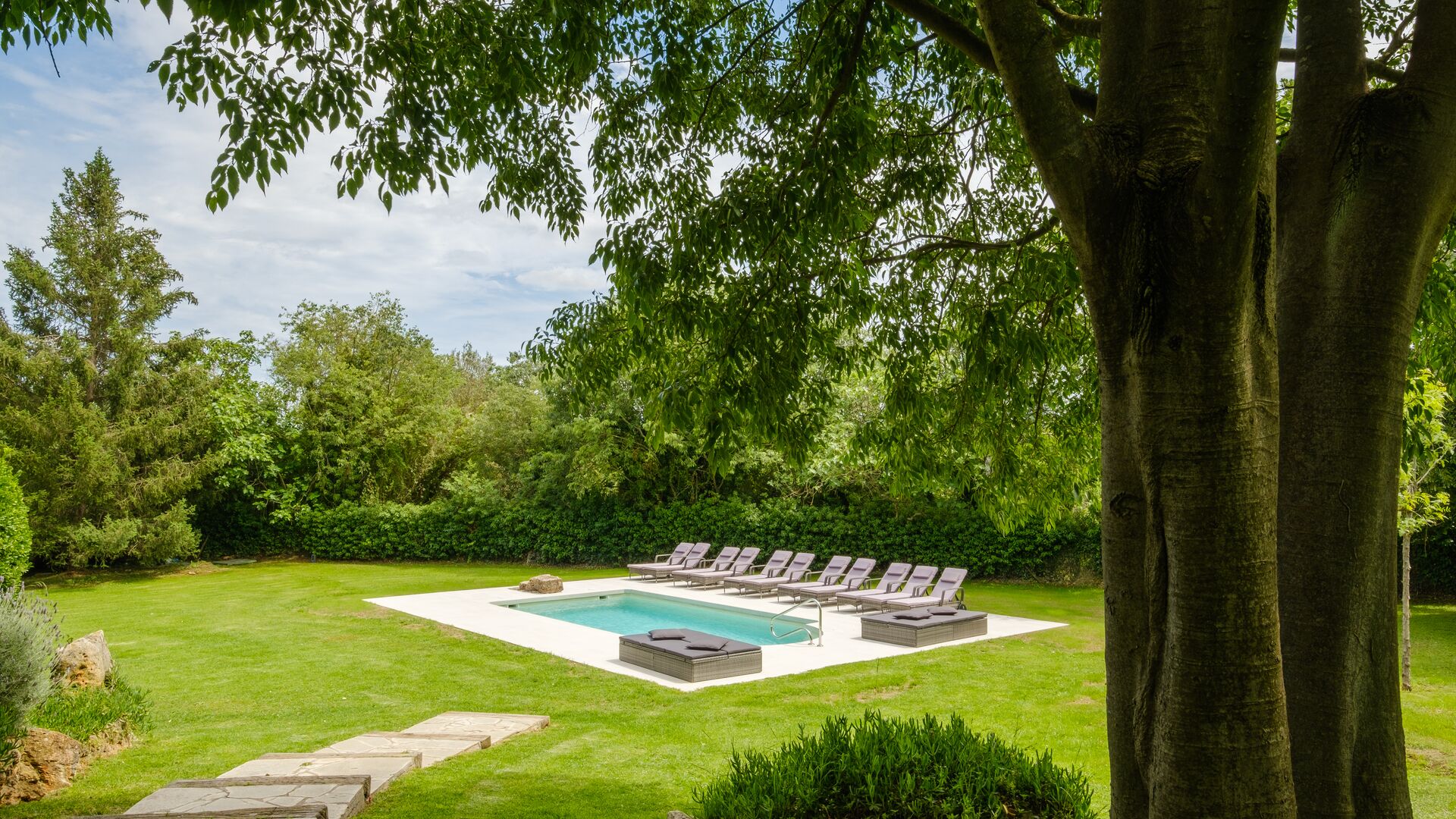 Cal Cubis has a wonderful, 10.000m2 garden – filled with greenery of all kinds, and with plenty of space to various activities! Play tag or hide and seek with the kids in the vast green space – or relax by the wonderful pool, coming with loungers and surrounded by exotic flowers and palm trees! The garden has dedicated outdoor dining areas (covered terraces with tables and chairs), a fireplace, and great views from the terraces! Enjoy outdoor meals and relaxation alone or with friends and family – few things compare to laying in the loungers after a dip in the pool as the sun sets, warming your body with the last rays of the sun and drinking an exquisite Catalan wine.
