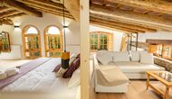 On the second floor, you will find the remaining bedrooms and bathrooms. The rooms are all spacious – with one room having a bathroom directly connected to the bedroom and an open-air bathtub! Behind this room’s bed, there is also a sofa corner to relax and watch TV in!