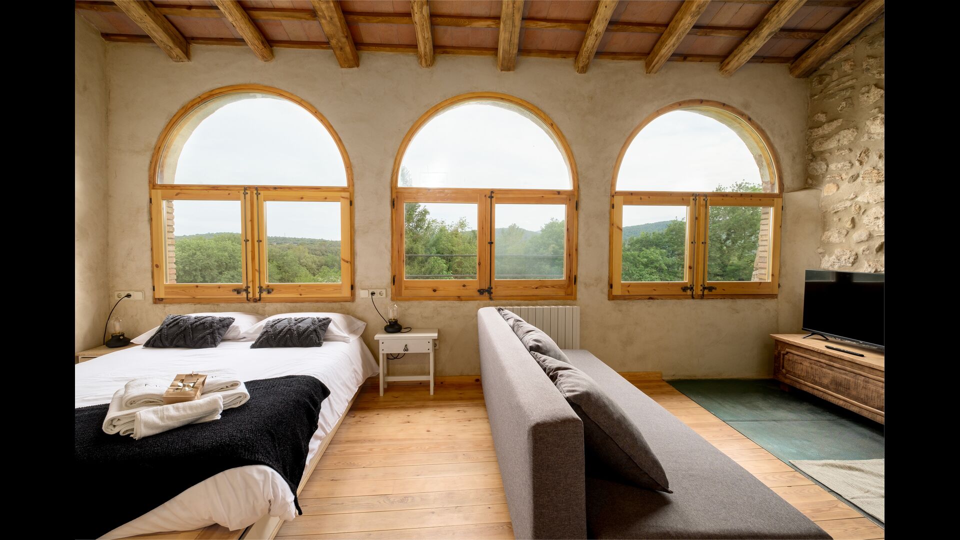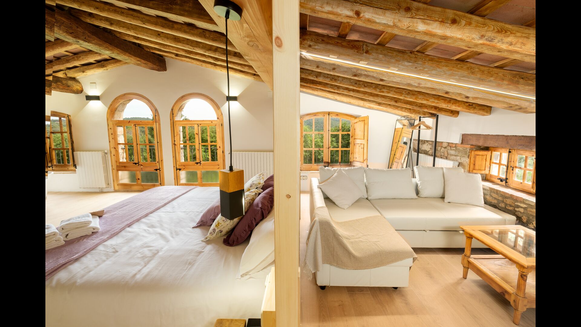 The farmhouse is located in the municipality of Serinyà but far from the urban center. The house is between the sea (35 km) and the mountains (60 km), and very close to Banyoles (5 km) where we recommend visiting "l'Estany", a natural setting of incomparable beauty. 5 minutes away you will also find the beautiful medieval town of Besalú, and 10 minutes away, the well-known town of Castellfollit de la Roca. For nature lovers, you cannot miss a visit to Sadernes (20 minutes away), a natural space where you can take routes among crystal clear water gorges. In order to enjoy a wide gastronomic, cultural and historical offer and a rich social life, it is essential to visit the medieval city of Girona (25 minutes away). It is surrounded by nature and trails for walking or hiking, such as the Vía Verde del Fluvià.
