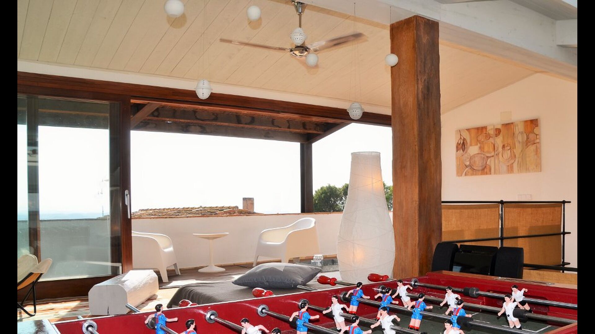 The third floor does nothing but add to the streak of excellent quality. The open area is lit up by the sunlight through the open-and-closable panorama-windows. Facilities, such as table football, bar, music system, various chairs and of course the large couch, all contributes to creating the perfect chill-out environment. Not to mention the spectacular view from the largeterrace in connection with the room. Grab a glass, fill it with whatever you like, lie down on the couch and enjoy the Catalan sun setting behind the mountains in the distance. This room is no different from the others in terms of decoration; it is decorated in a very fashionable and impressive manner. The owner of the house is a professional furnisher, organizing and decorating for recognized brands – this is greatly reflected in the tasteful home.